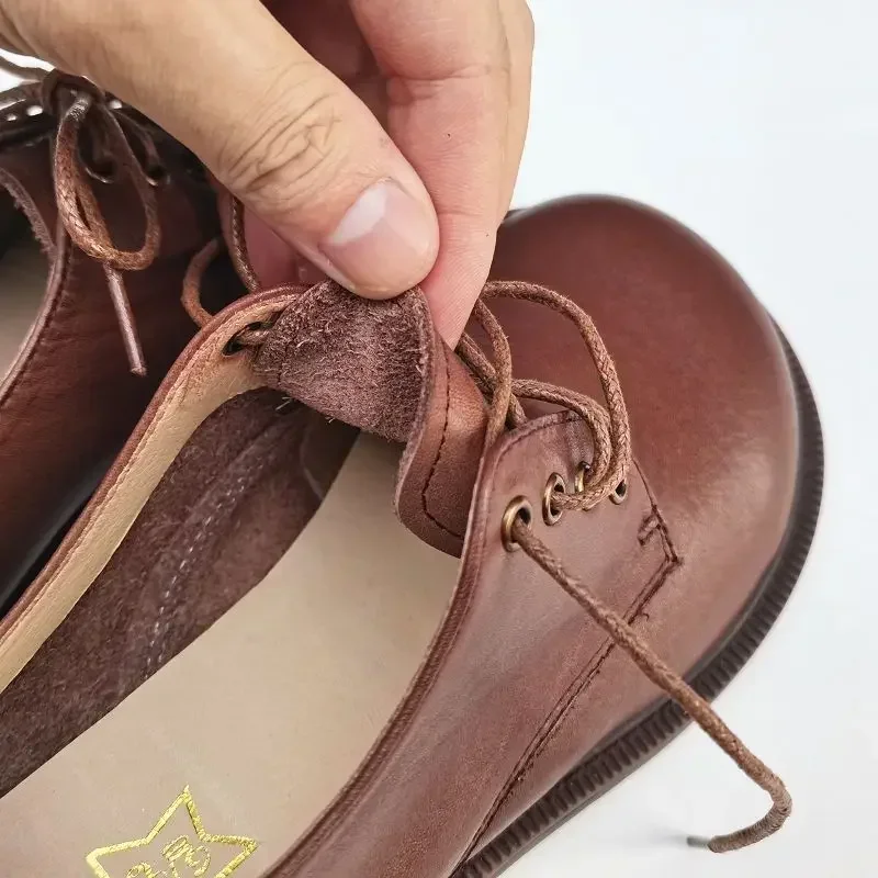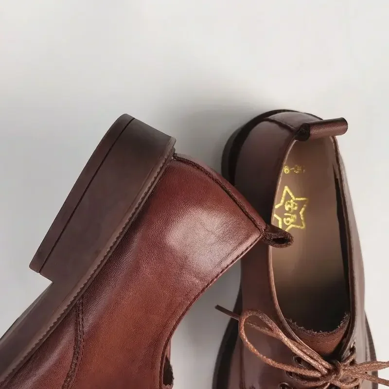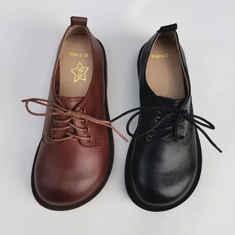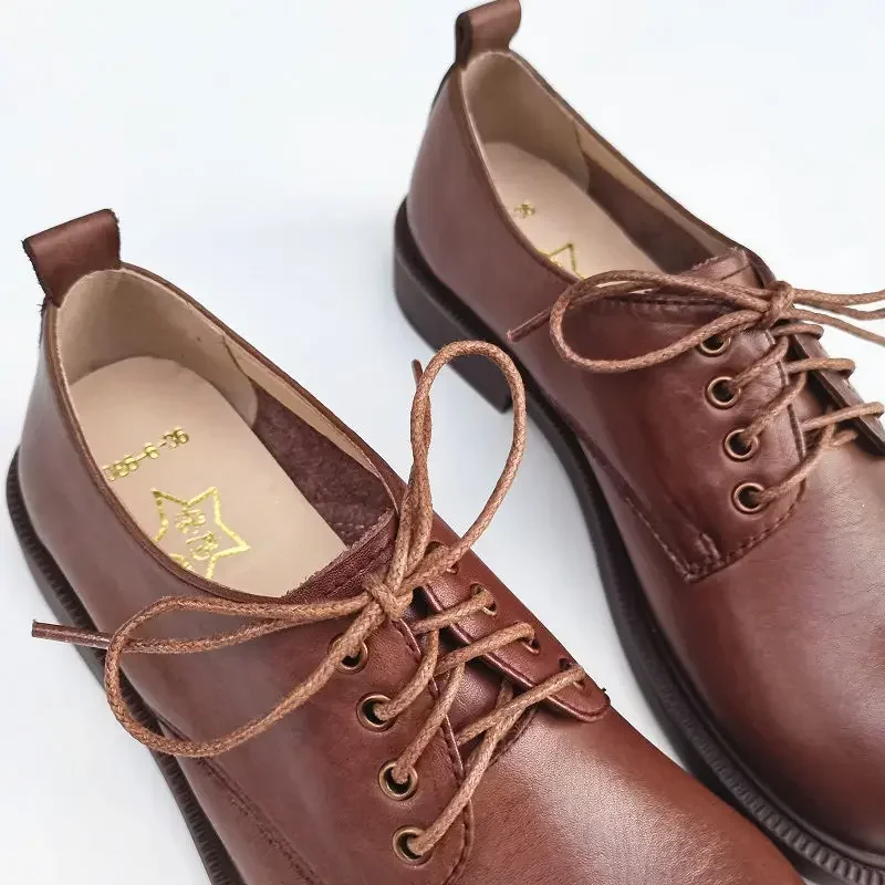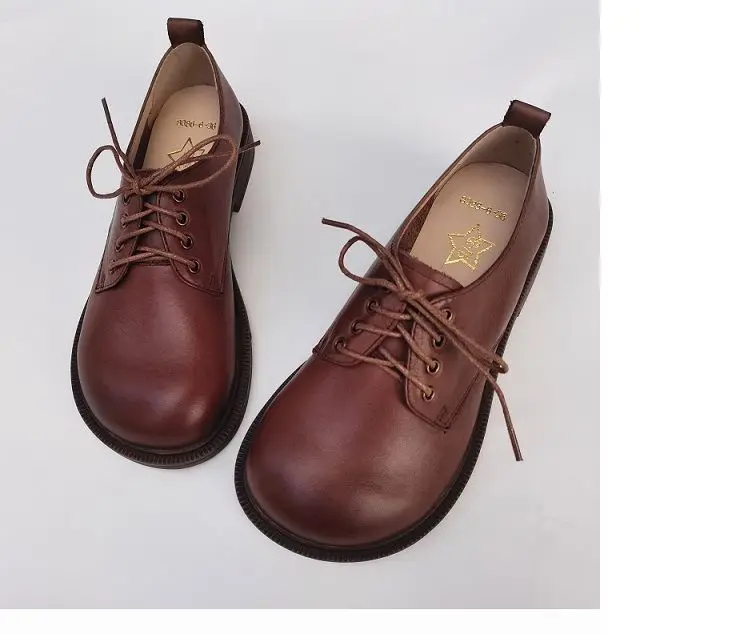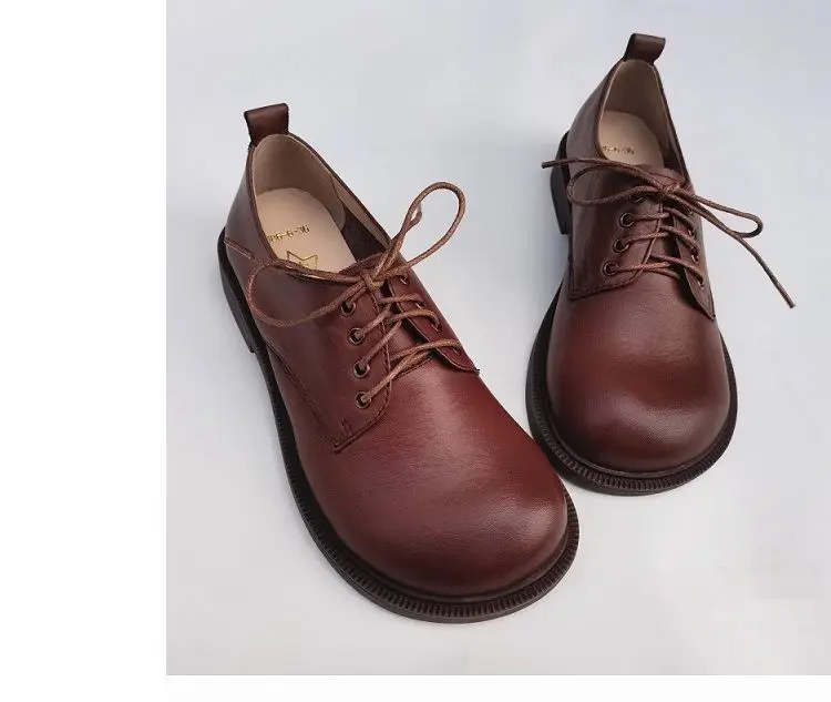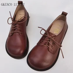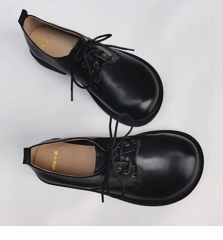 2024 Spring British Style Big Round Head Genuine Leather Lace up Small Leather...