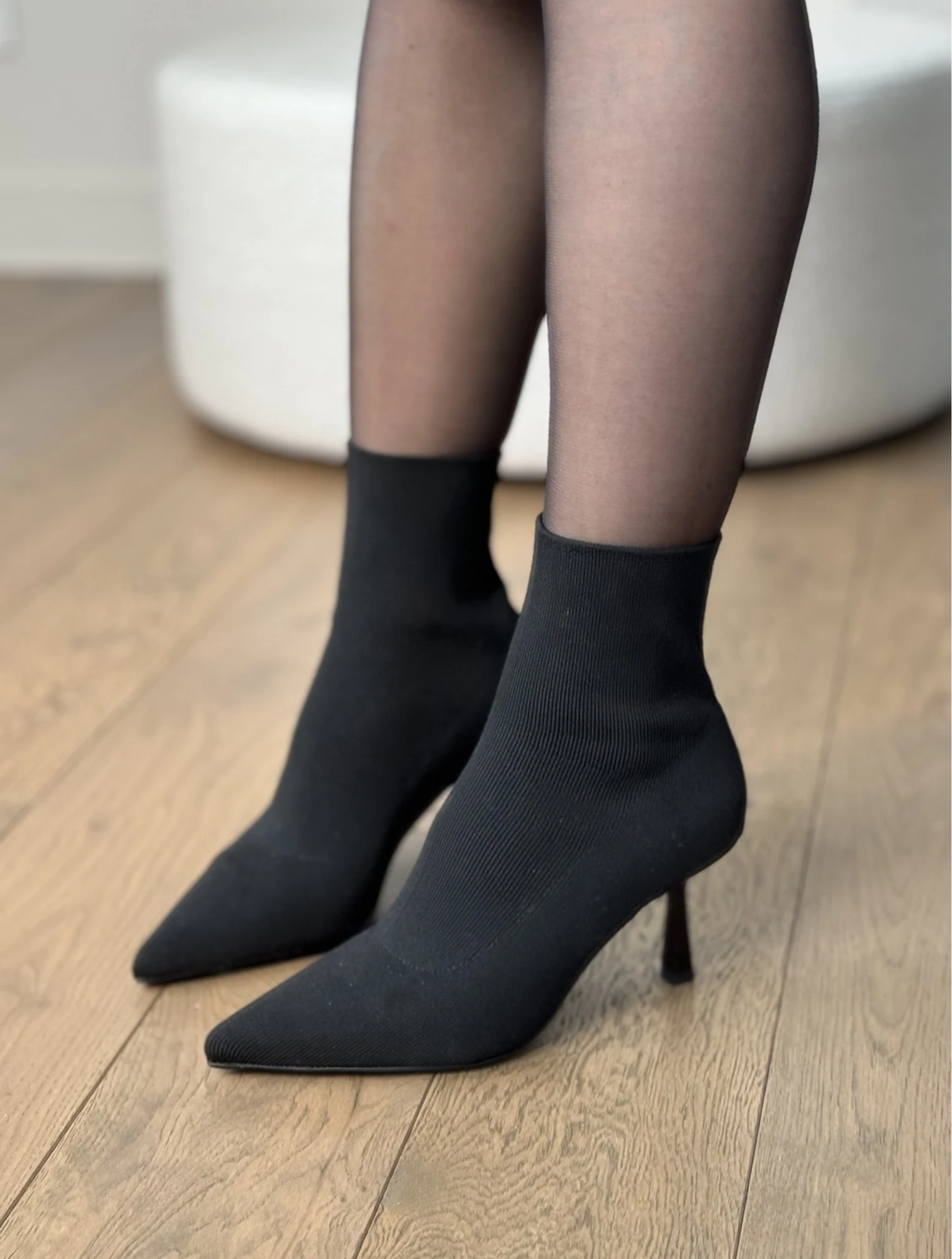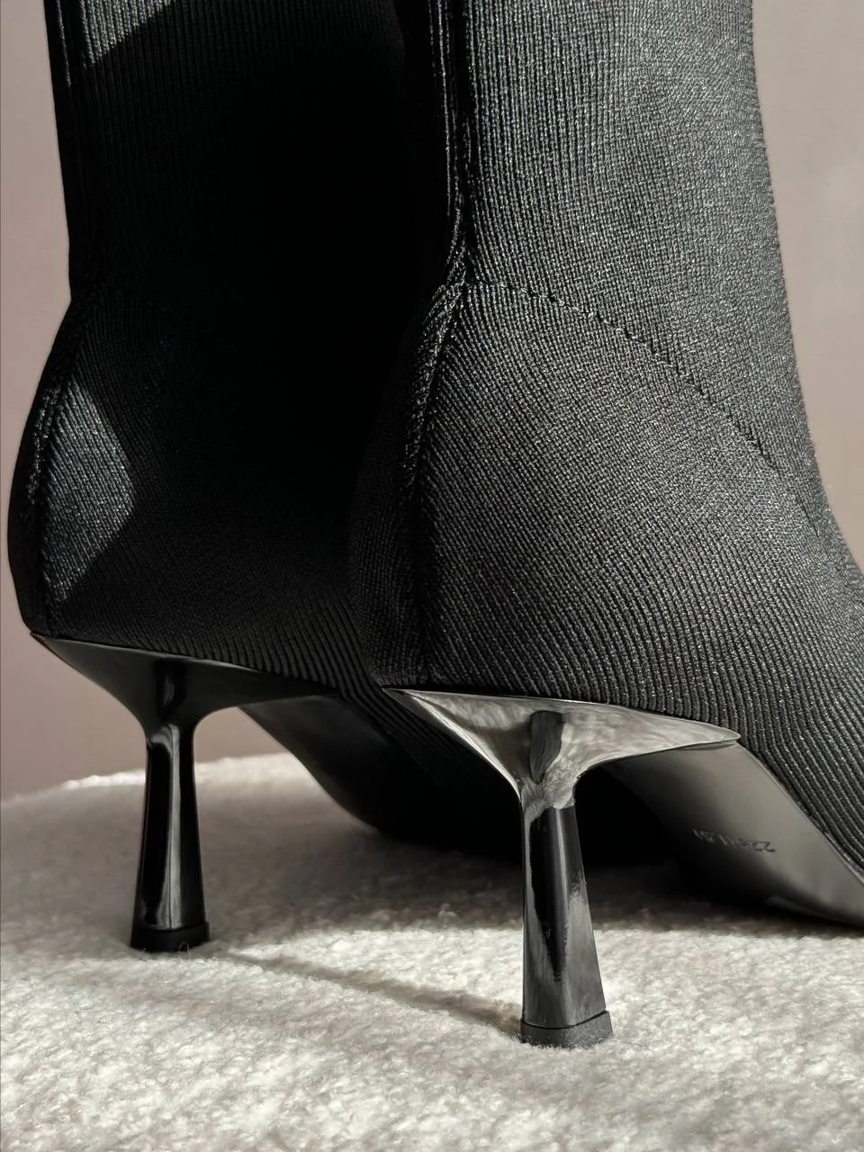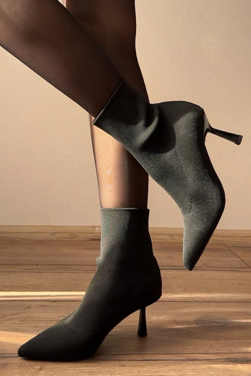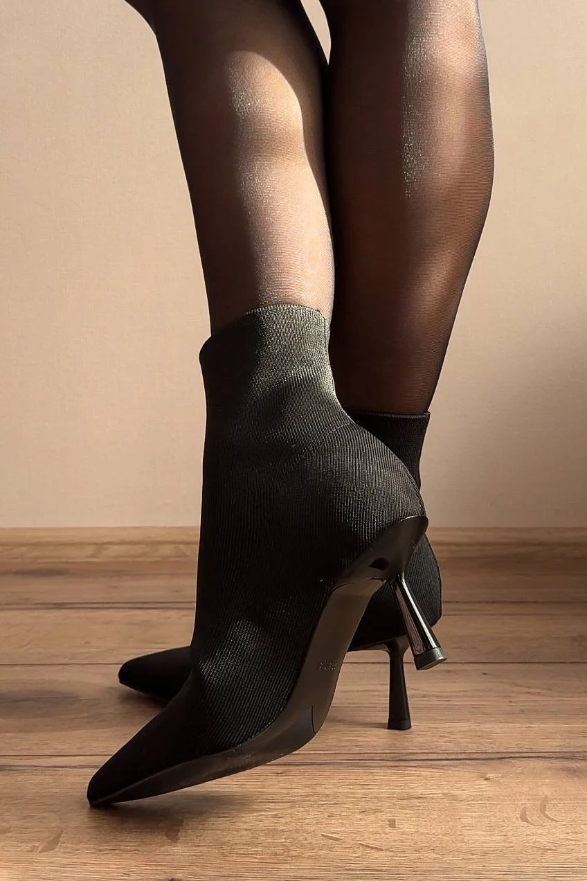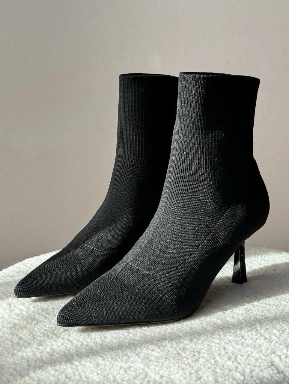 Шикарные ботильоны — чулки! Очень понравились! На стопу 24 см отлично подошли в размере 38. Надеваются и снимаются достаточно легко. Подходят на высокий подъем. Качество безупречное. Пятка и мыс уплотнены. Высота каблука 7 см. В носке оказались очень удобными. Подойдут на сухую погоду. На ножках смотрятся невероятно красиво и элегантно!