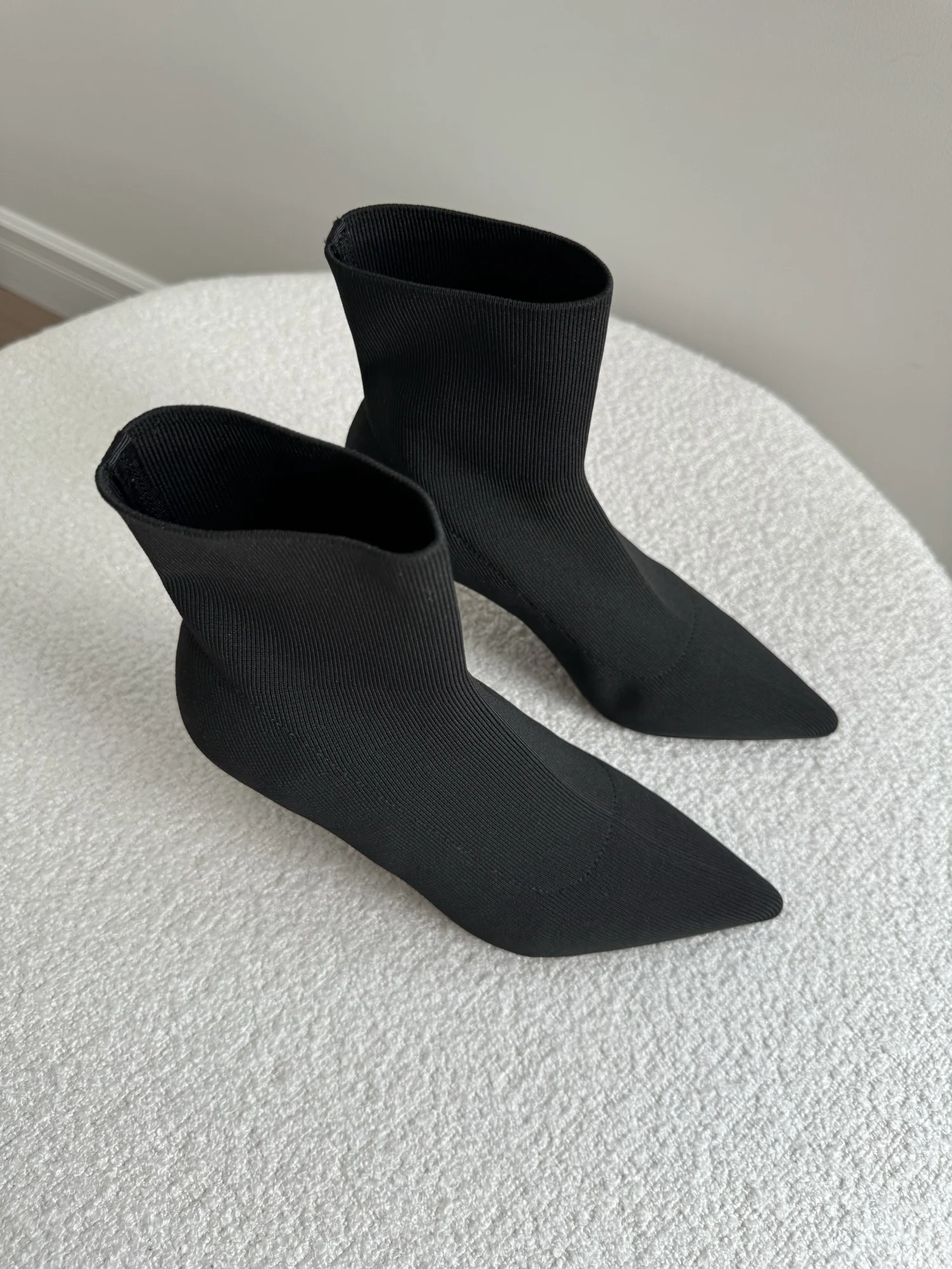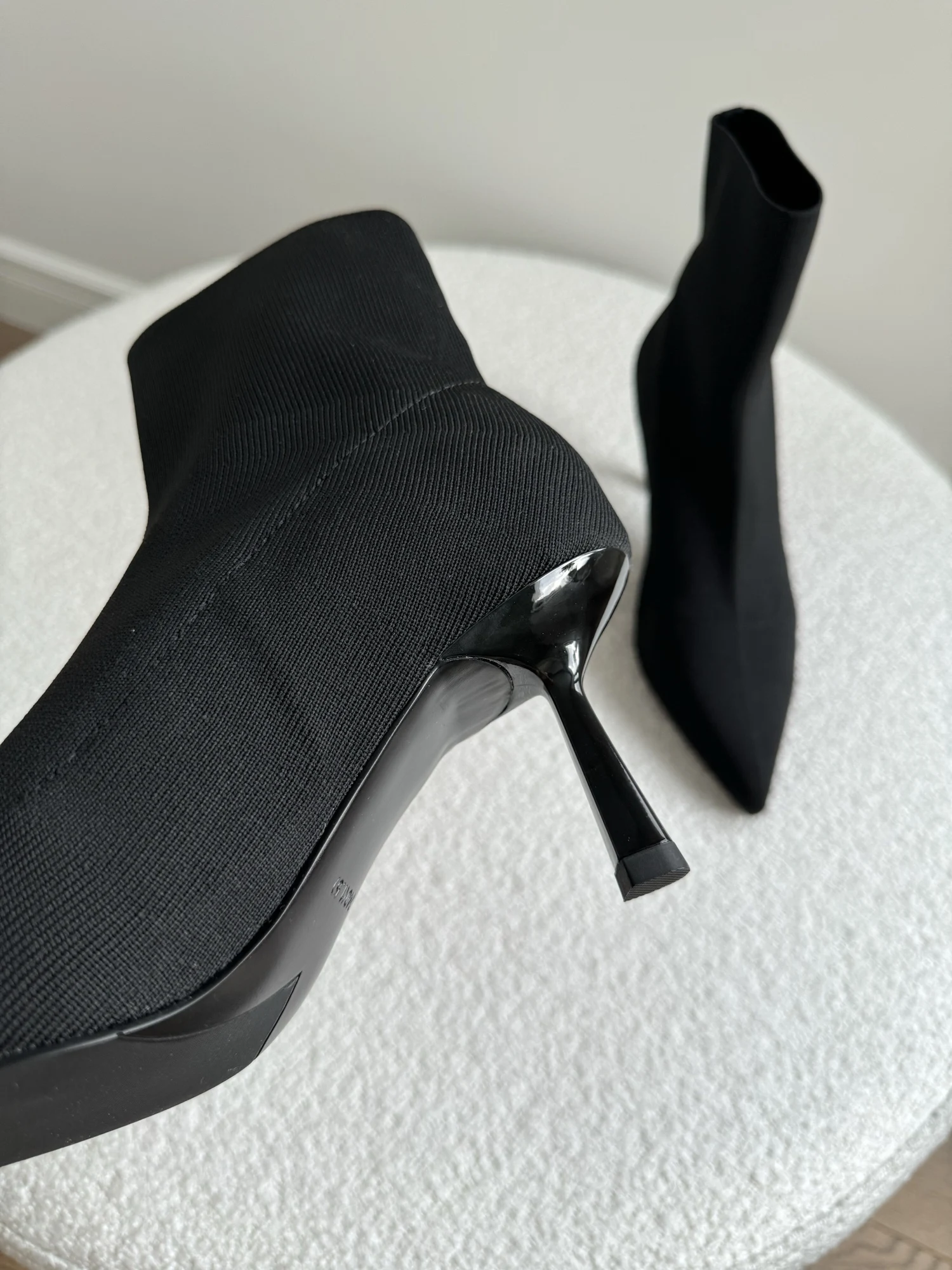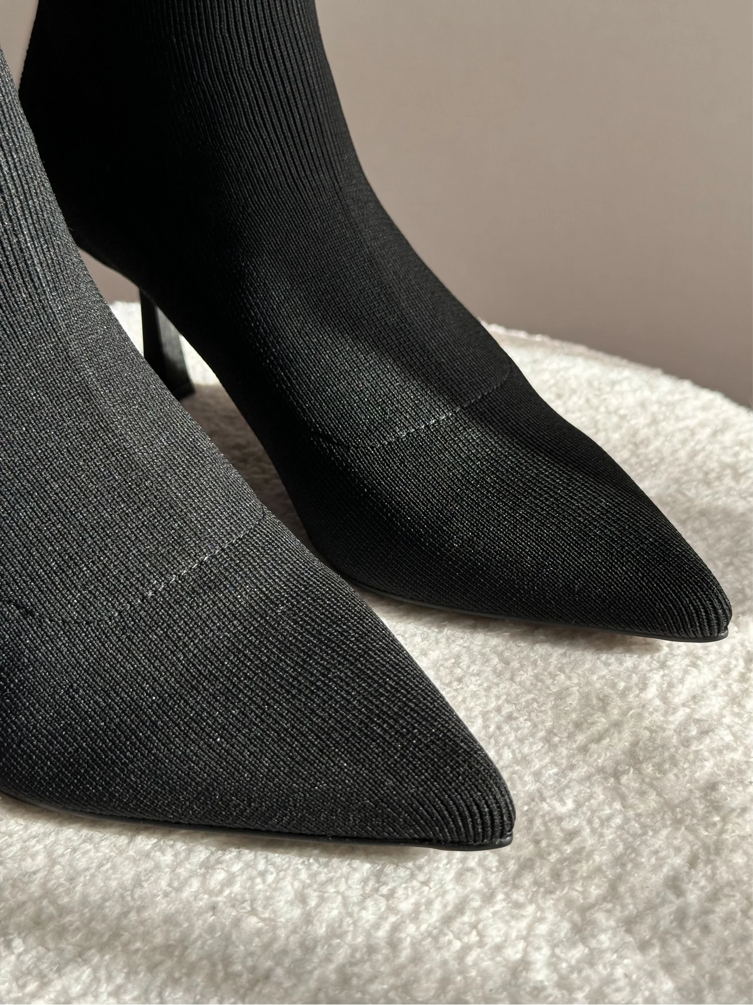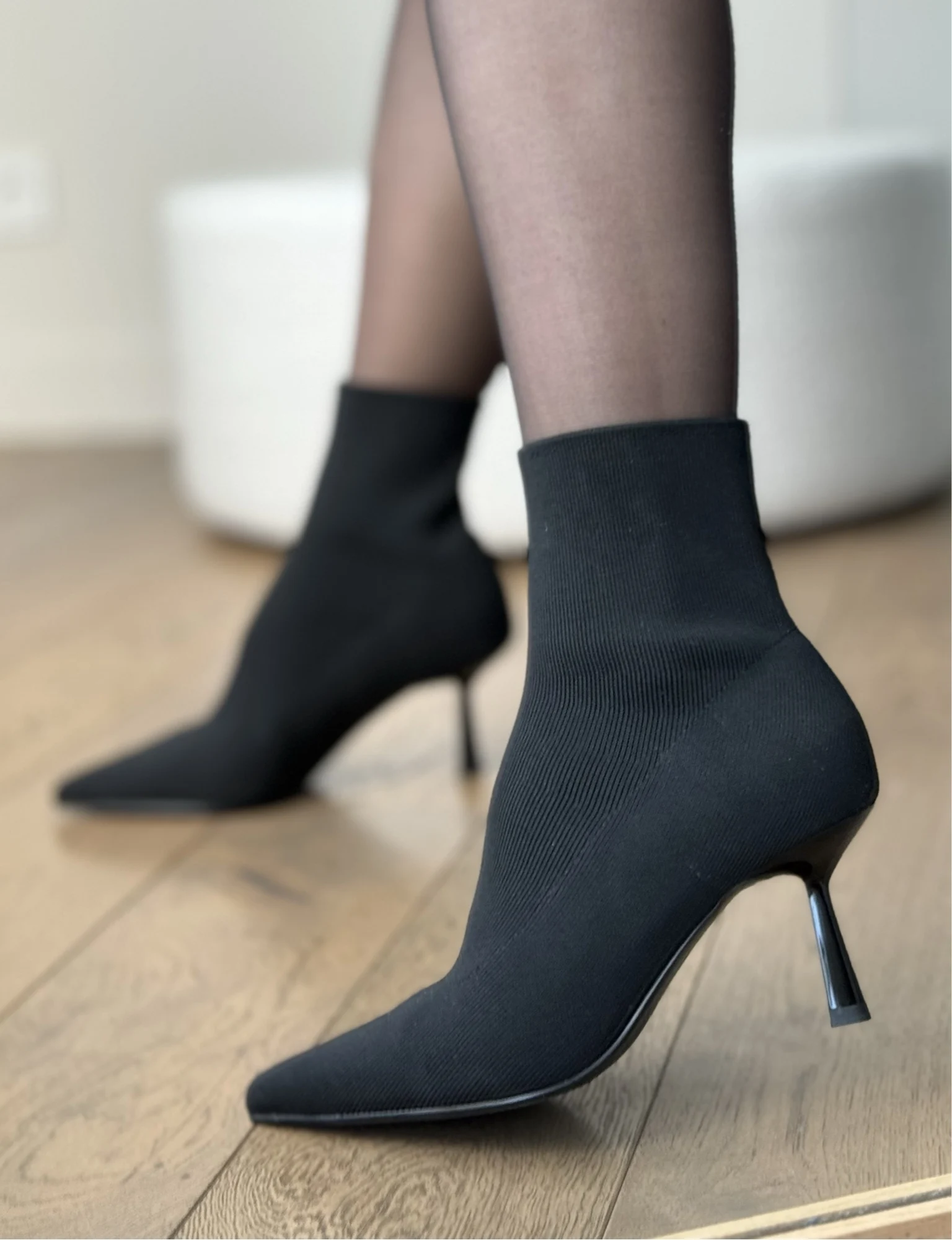 Шикарные ботильоны — чулки! Очень понравились! На стопу 24 см отлично подошли в размере 38. Надеваются и снимаются достаточно легко. Подходят на высокий подъем. Качество безупречное. Пятка и мыс уплотнены. Высота каблука 7 см. В носке оказались очень удобными. Подойдут на сухую погоду. На ножках смотрятся невероятно красиво и элегантно!