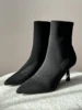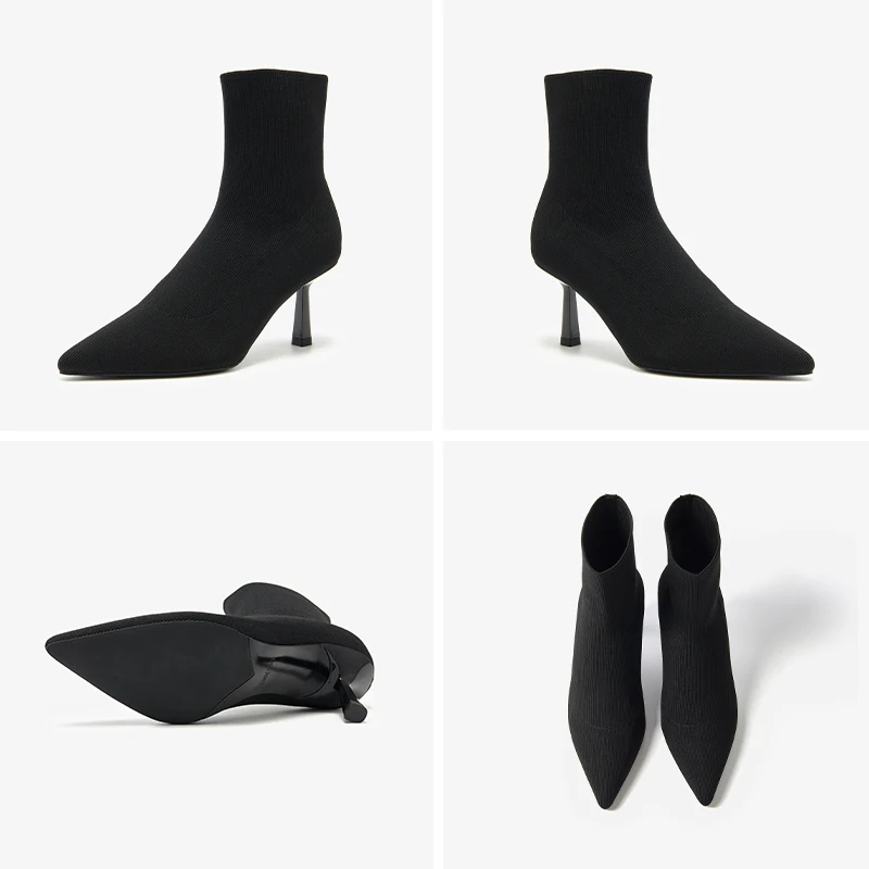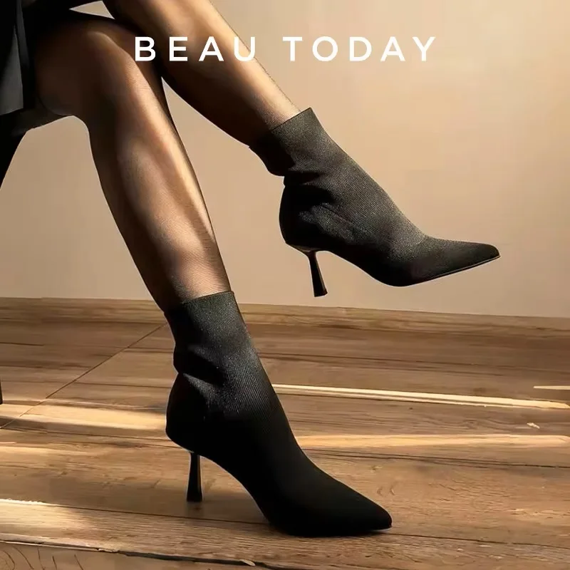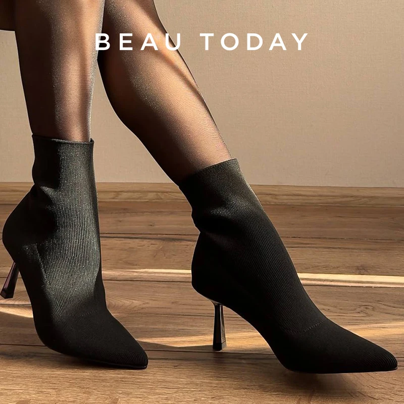 BEAUTODAY High Heel Modern Boots Women Fabric Pointed Toe Black Color 2023...