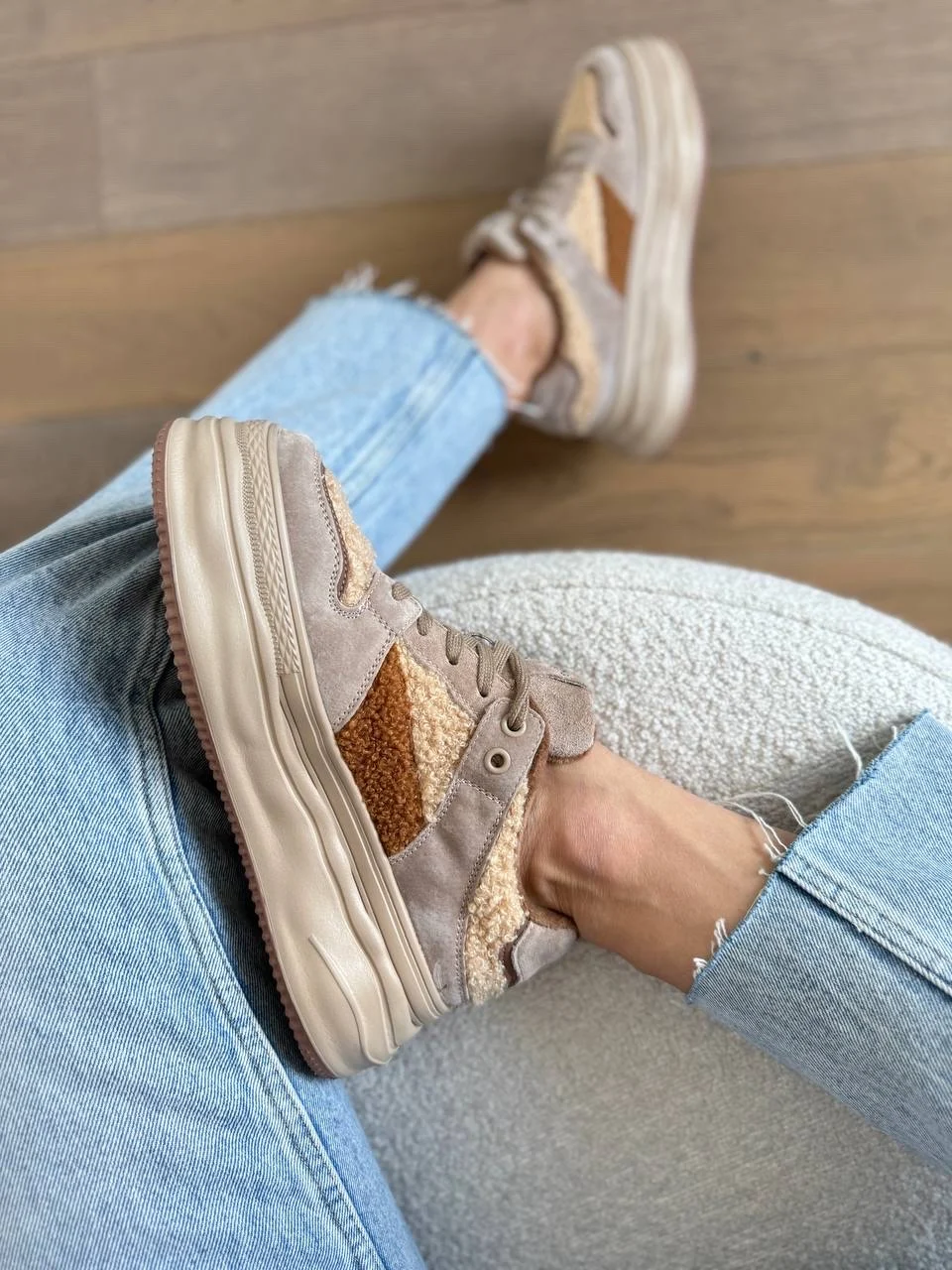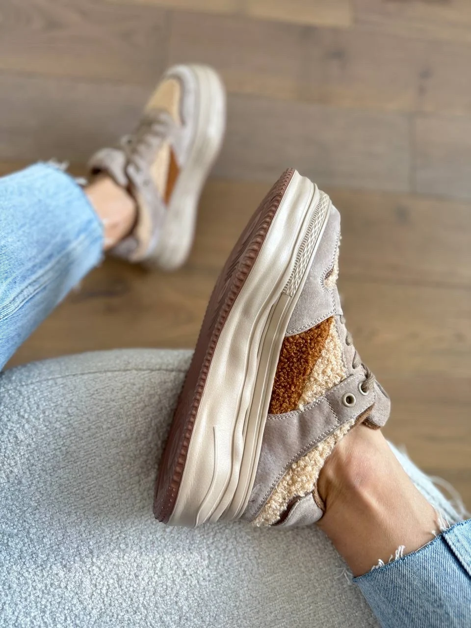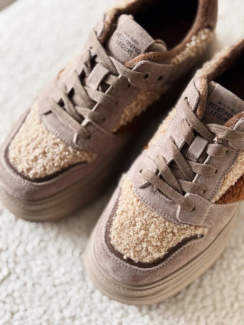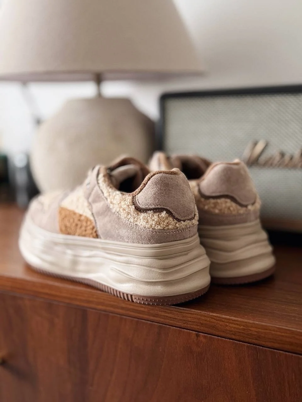 Чудеснве плюшевые кроссовки. Подойдут на холодную осень/теплую зиму. Размер 38 подошел на стопу 24 см, но без запаса. Если хотите носить с теплым носочком, то лучше брать на 0,5 см побольше. Качество прекрасное. Пришли в фирменной коробке и пыльниках.