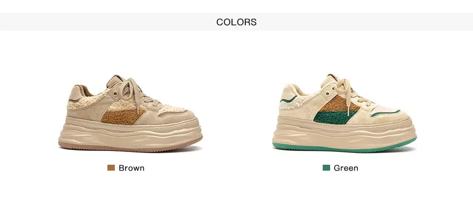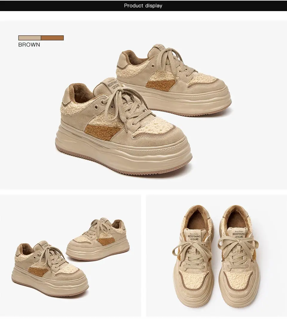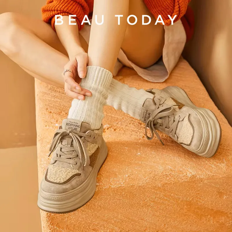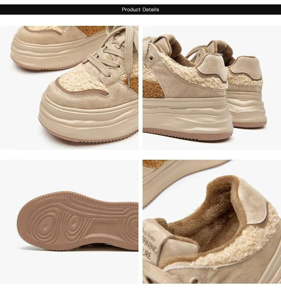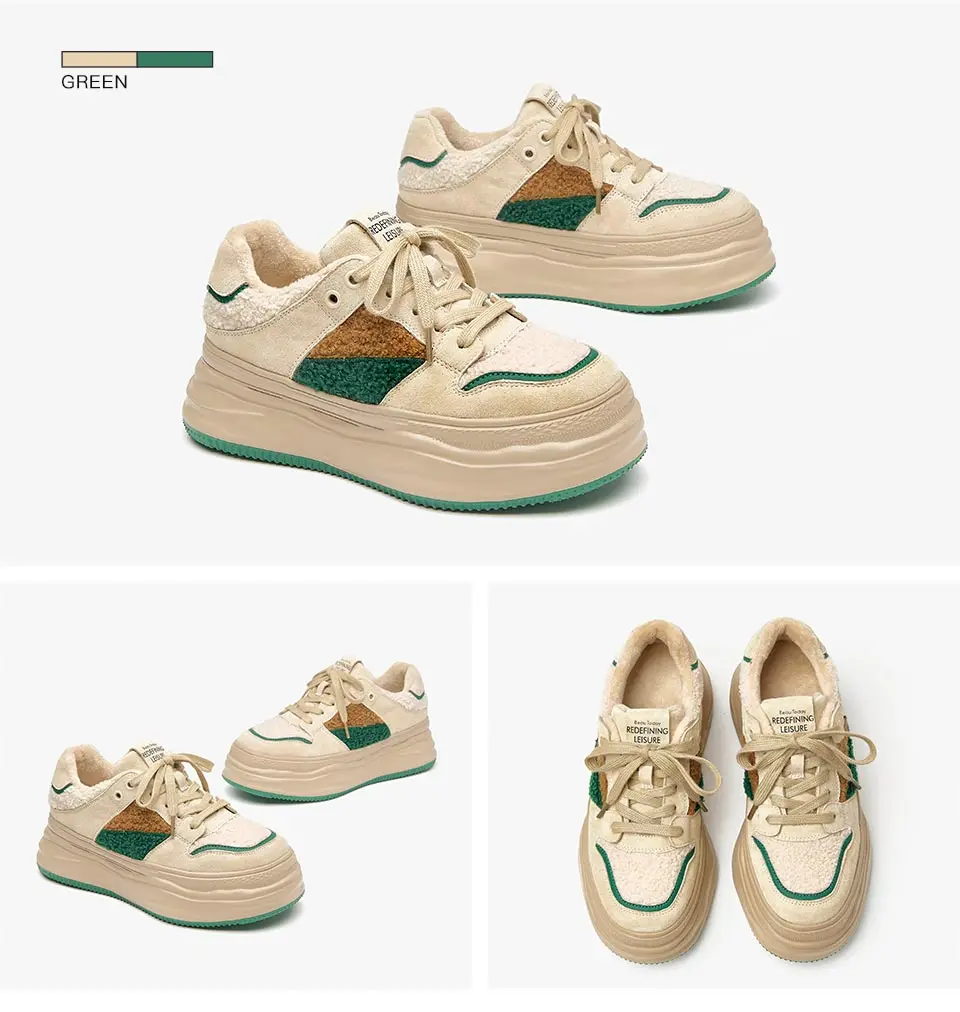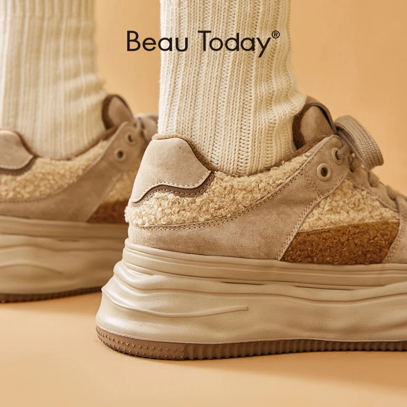 BeauToday Warm Platform Sneakers Pigsuede Patchwork Round Toe Cross Tied...