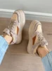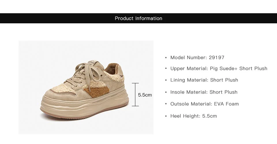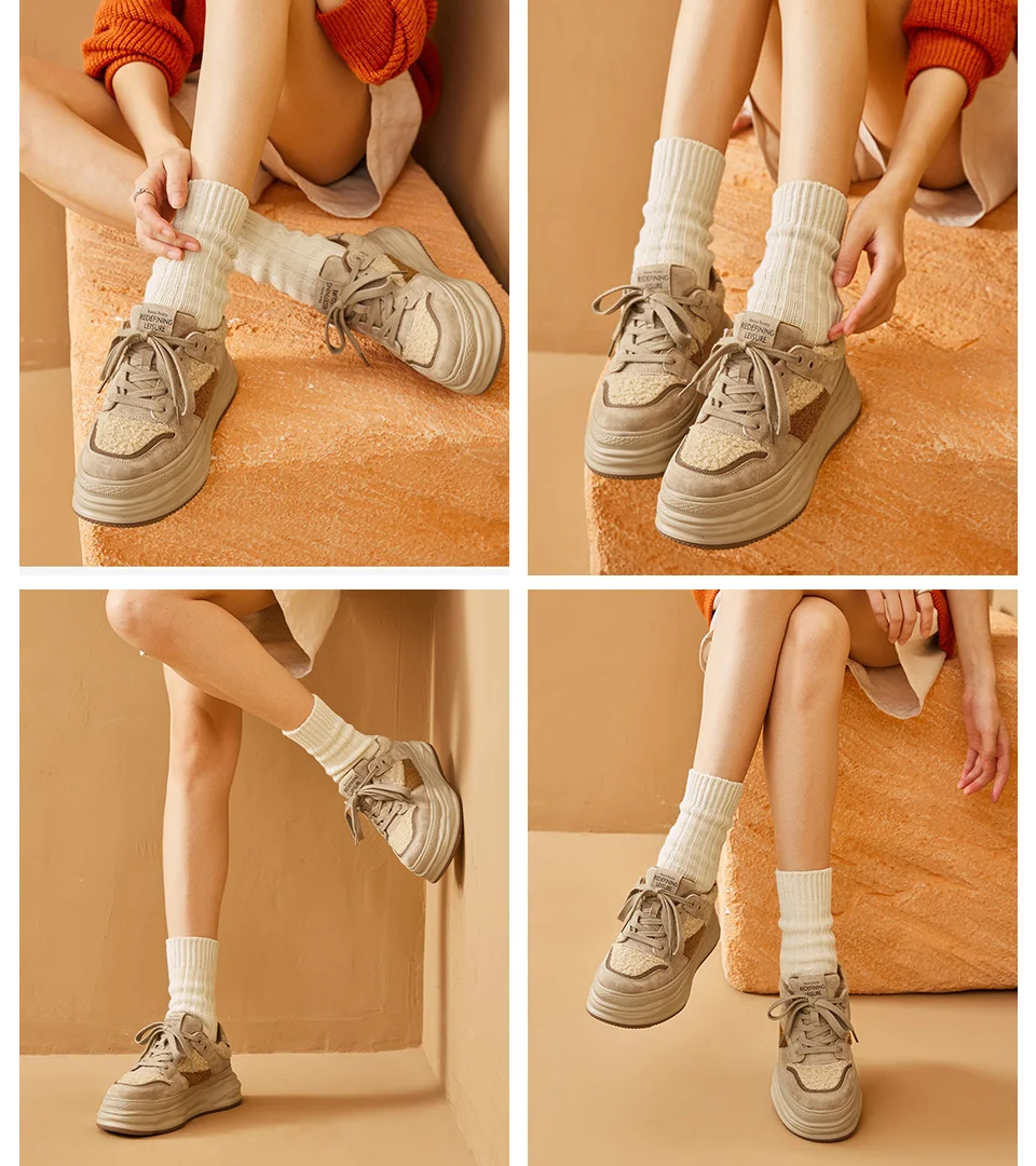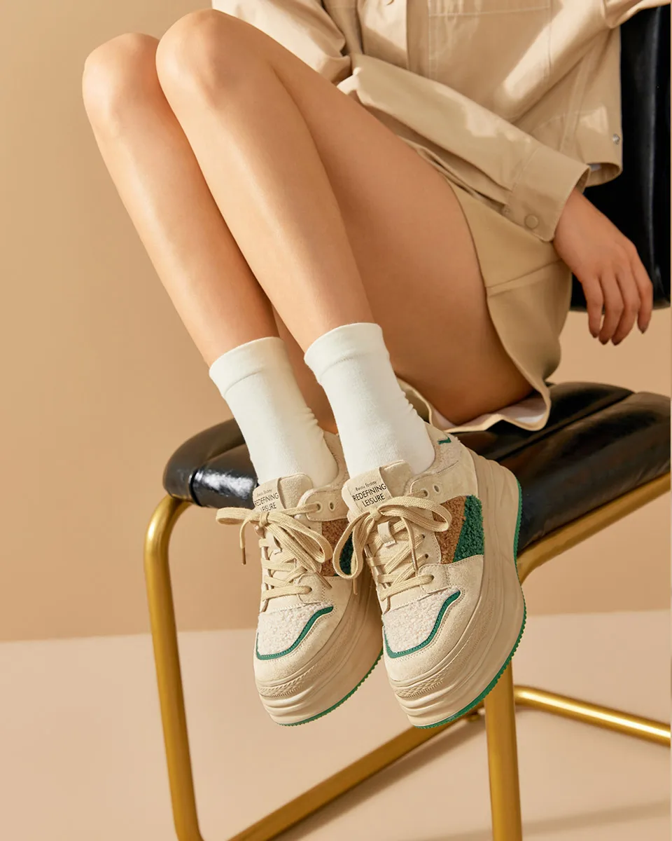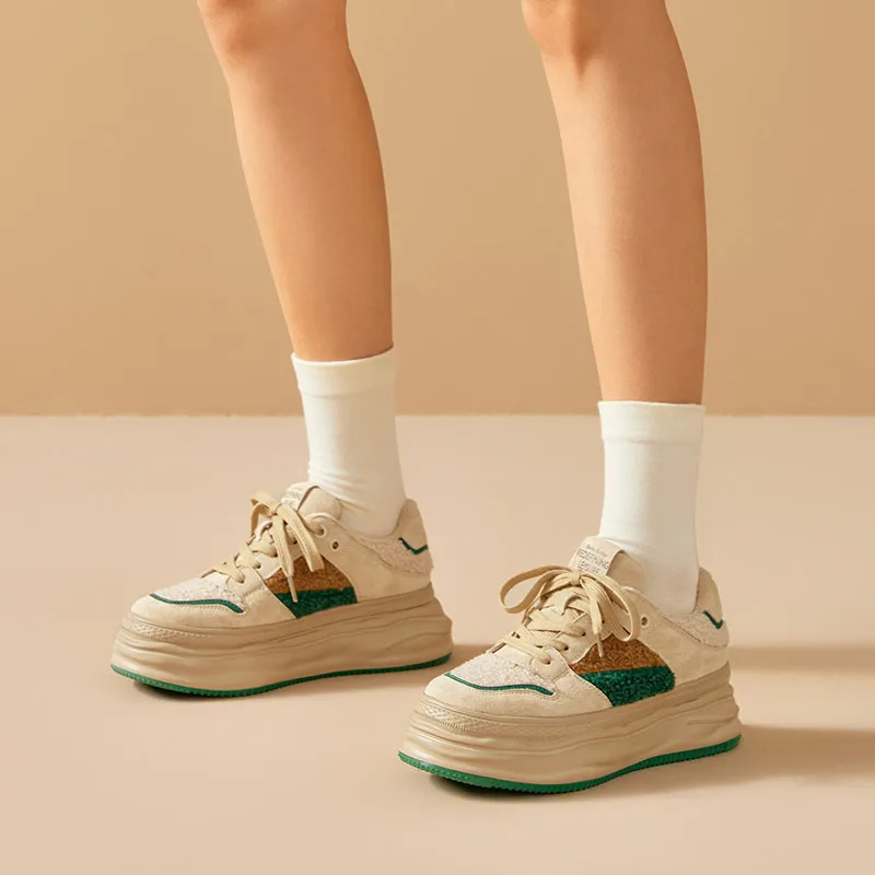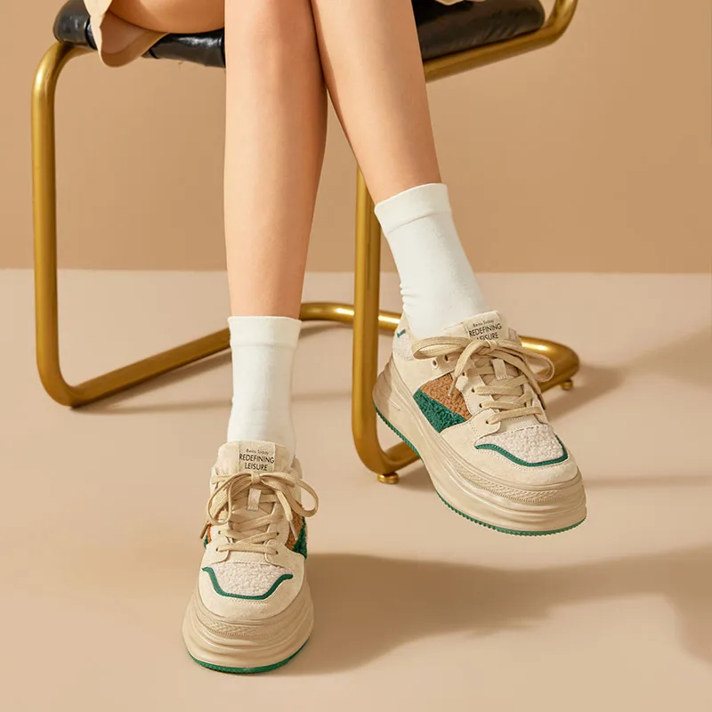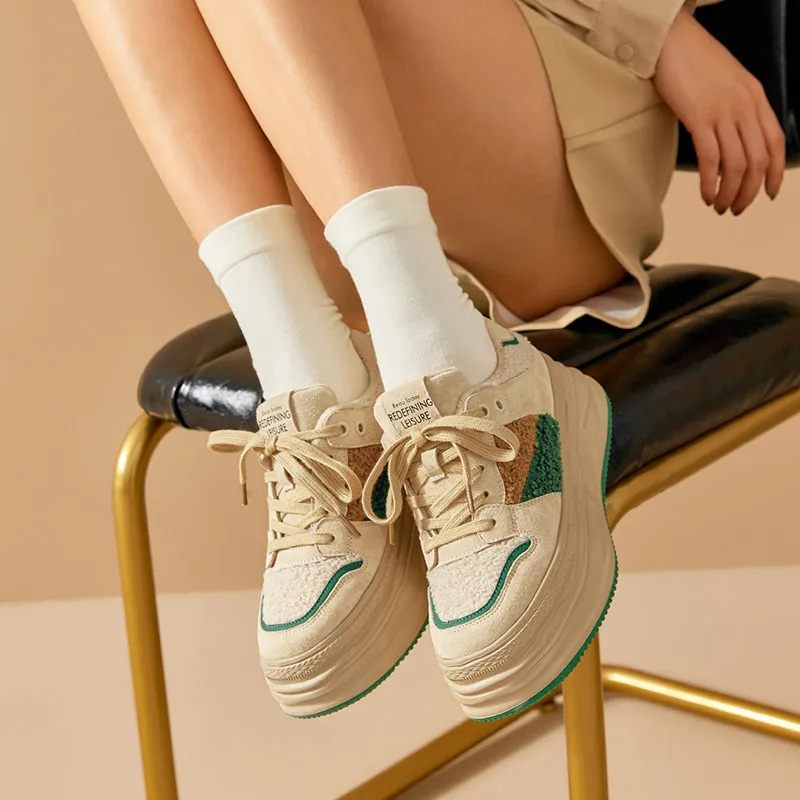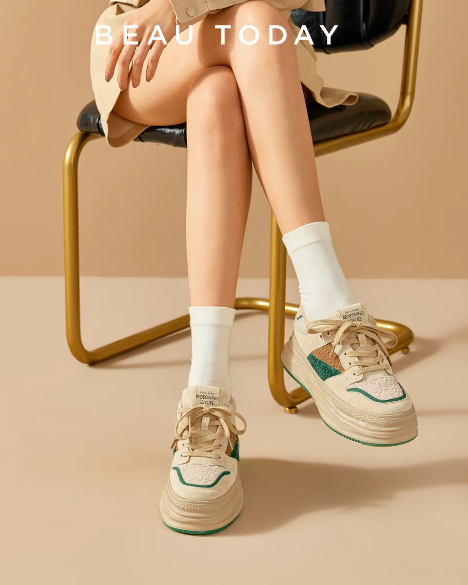 BeauToday Warm Platform Sneakers Pigsuede Patchwork Round Toe Cross Tied...
