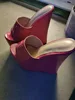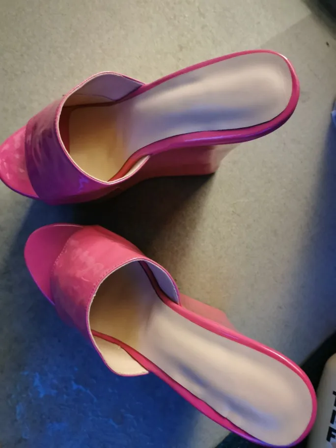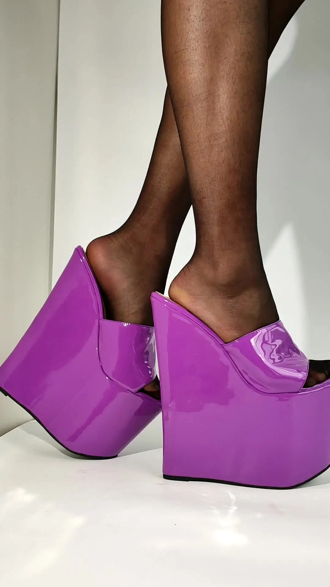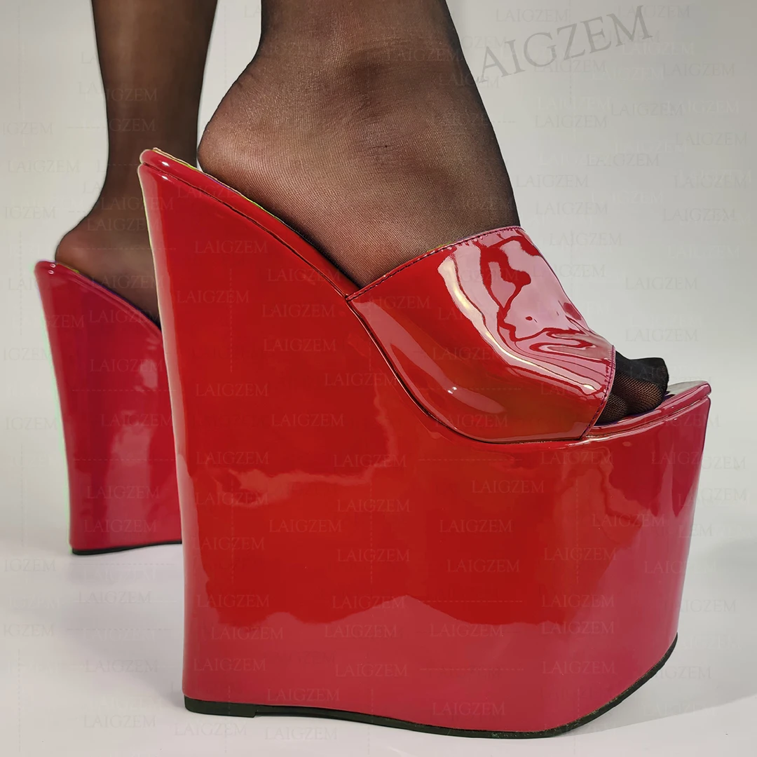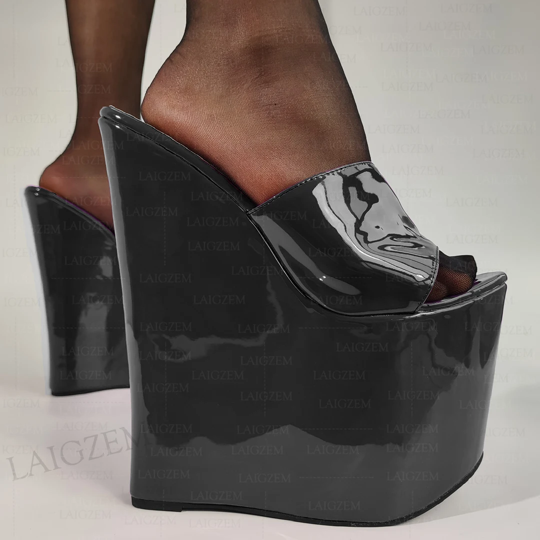 LAIGZEM Women Pumps Wedges Slip on Open Toe Shiny 22CM High Heels Mules Party...
