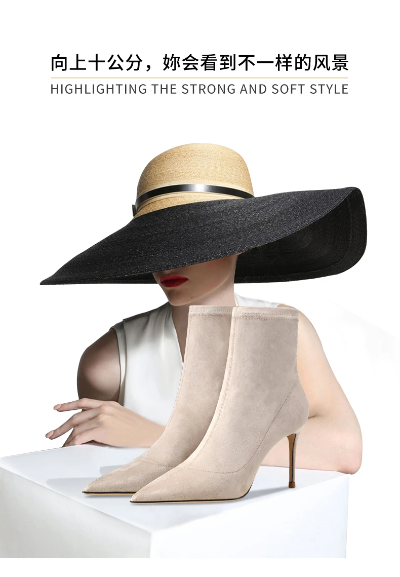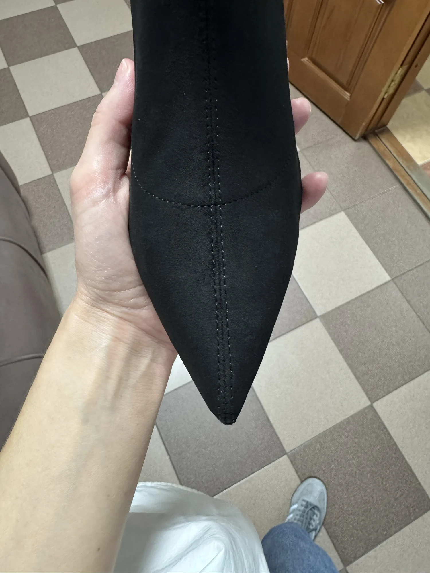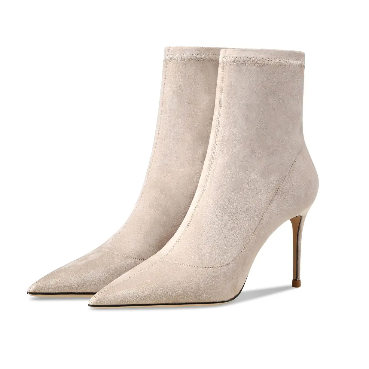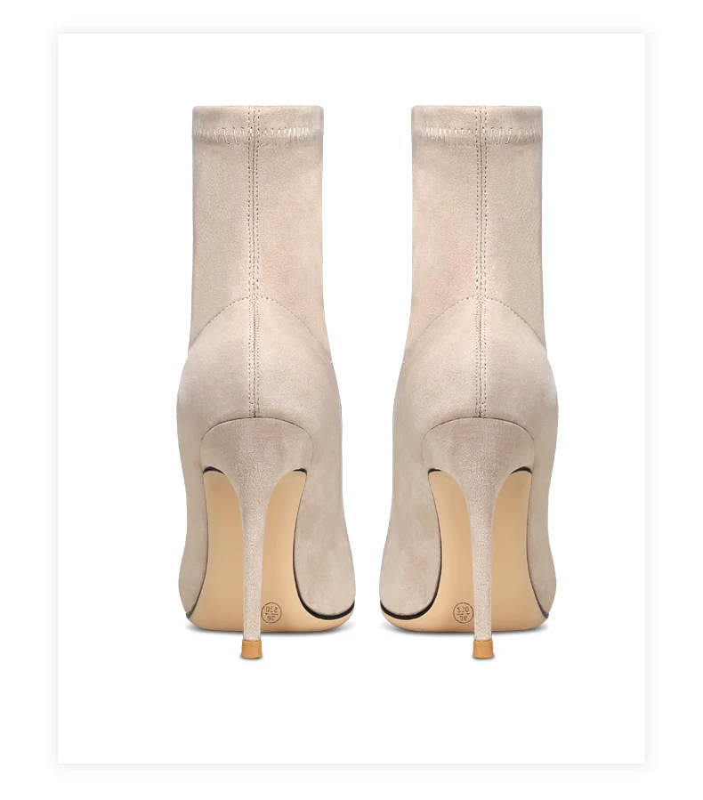Женские высокие сапоги 2025 Новые осенние теплые эластичные ботинки-носки с острым носком на каблуке Черные замшевые зимние ботильоны на шпильке Сексуальные ботинки