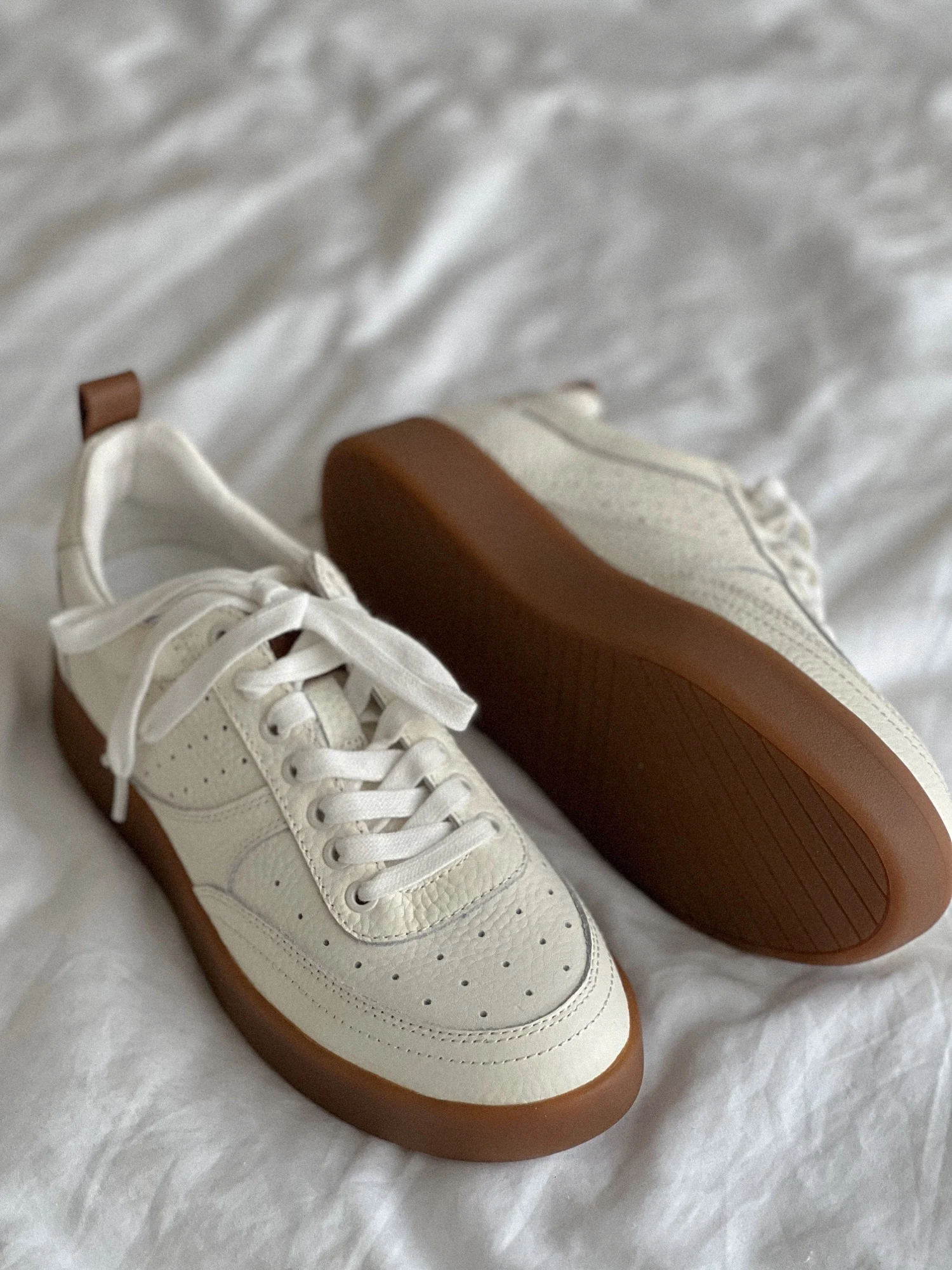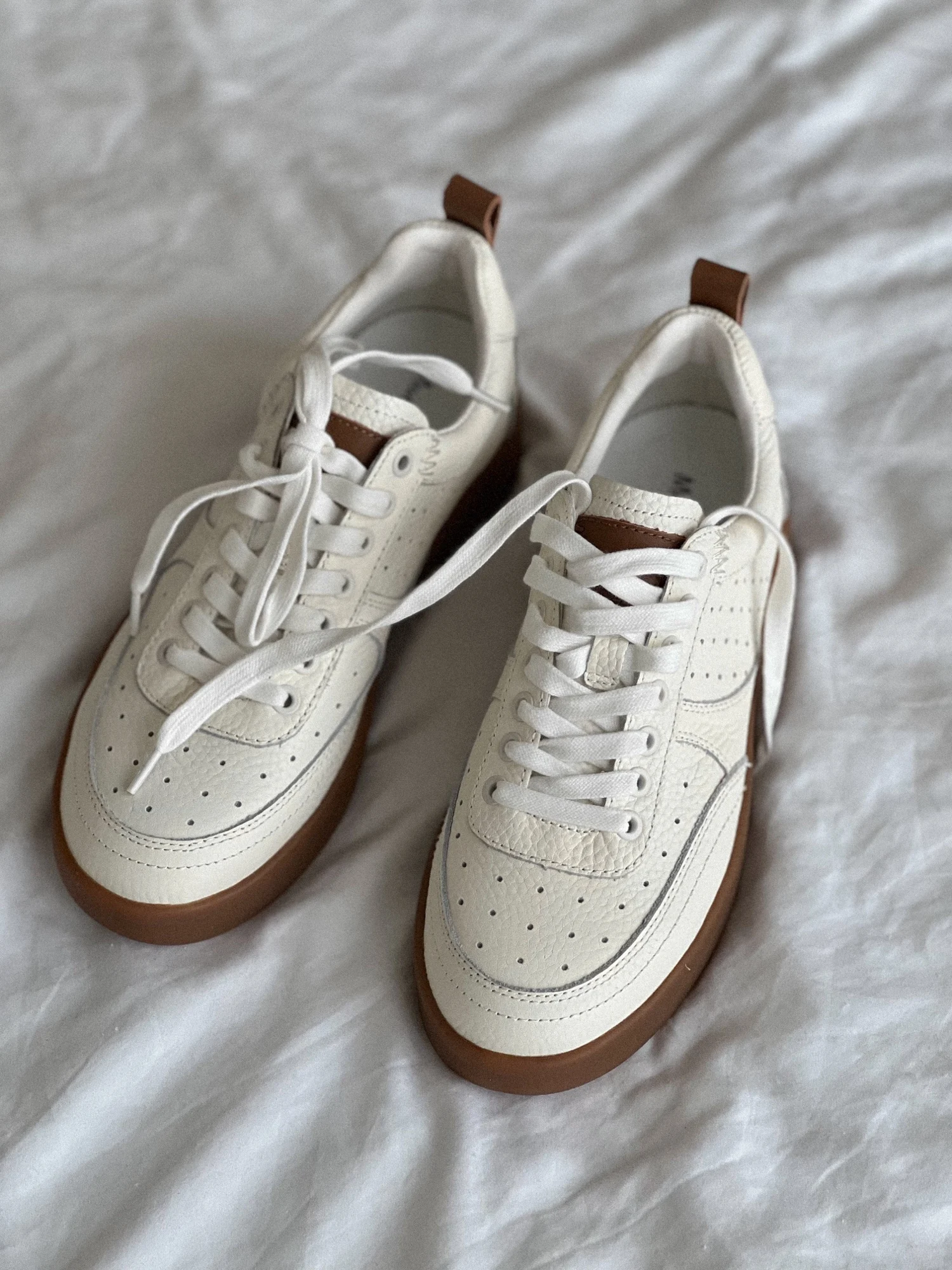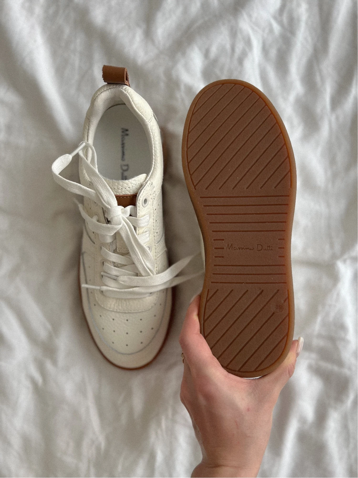 Кеды в стиле MD на свой 36 взяла 36 размер, отлично подошел. Приятный молочный цвет в сочетании с коричневой подошвой, качество прекрасное, из коровьей кожи.