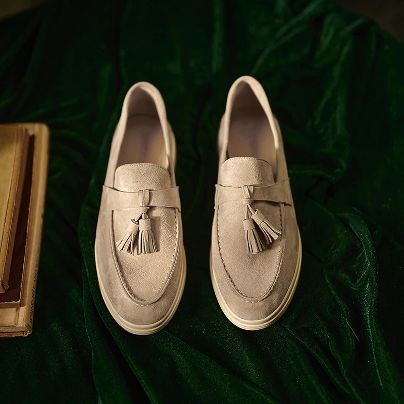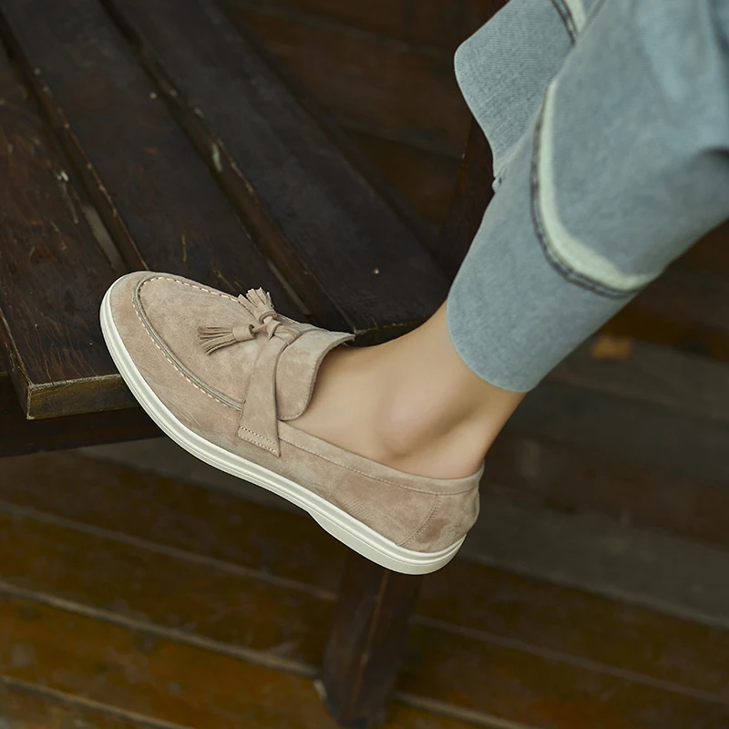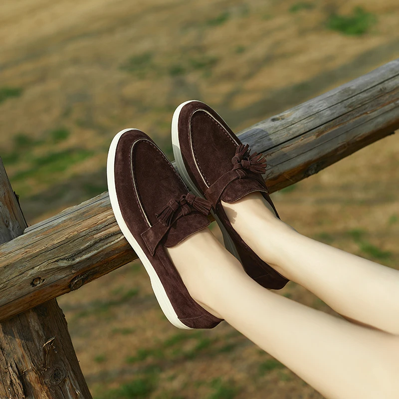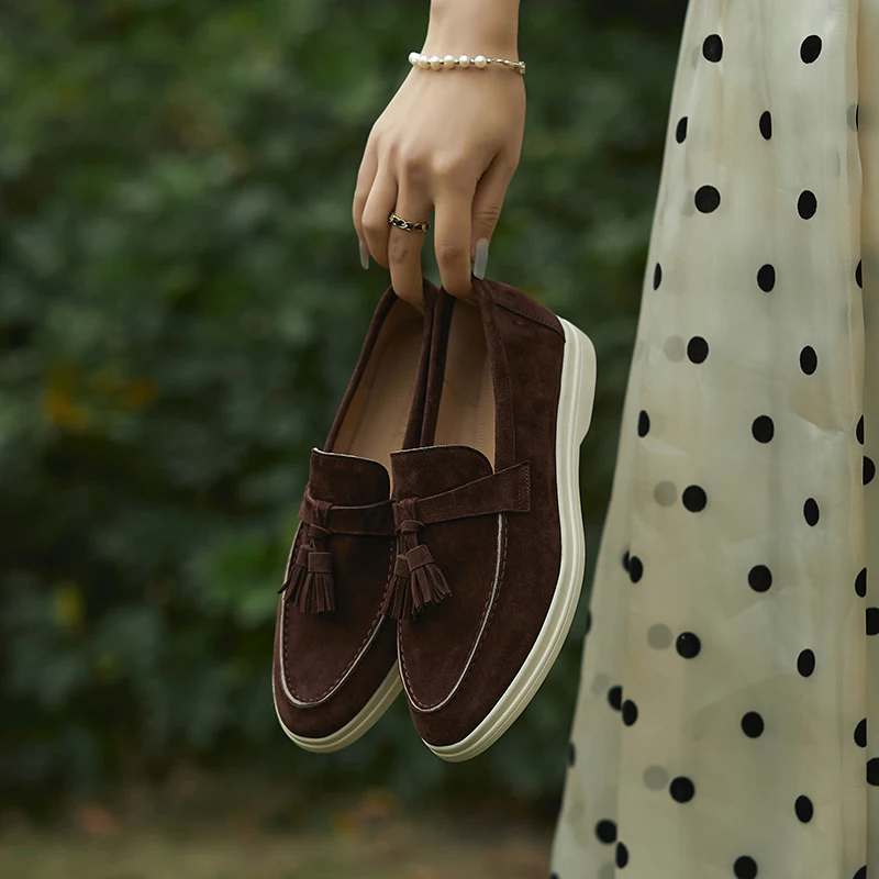 Однотонные повседневные топсайдеры ручной работы с кисточками, Zapatos Para Mujeres, повседневные офисные женские лаконичные замшевые женские туфли на плоской подошве