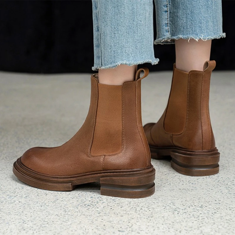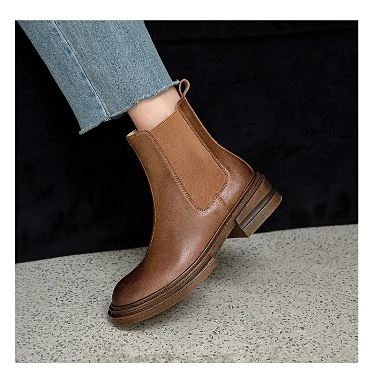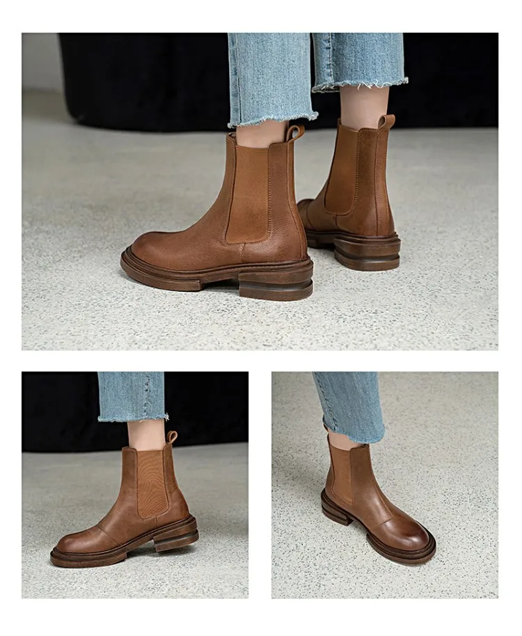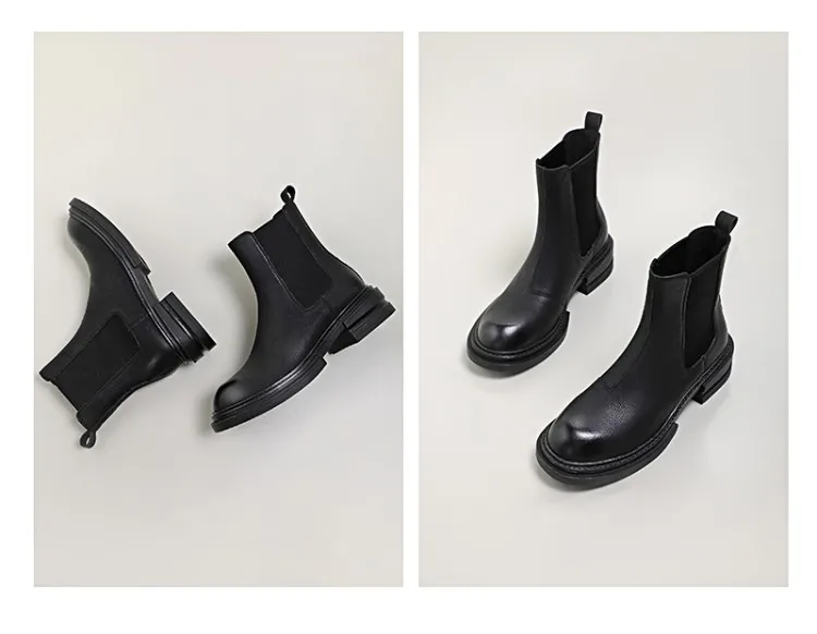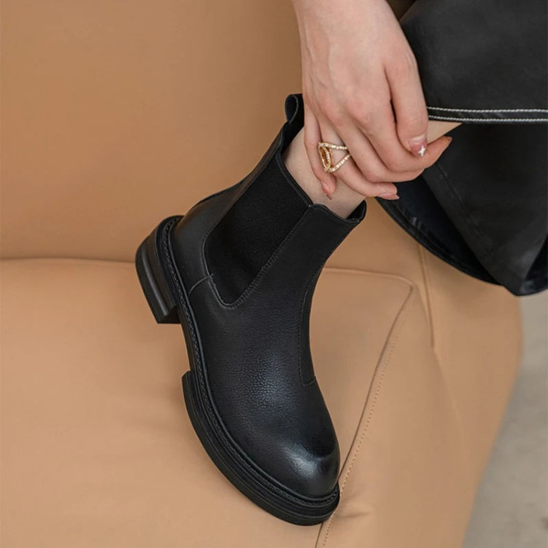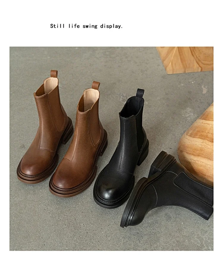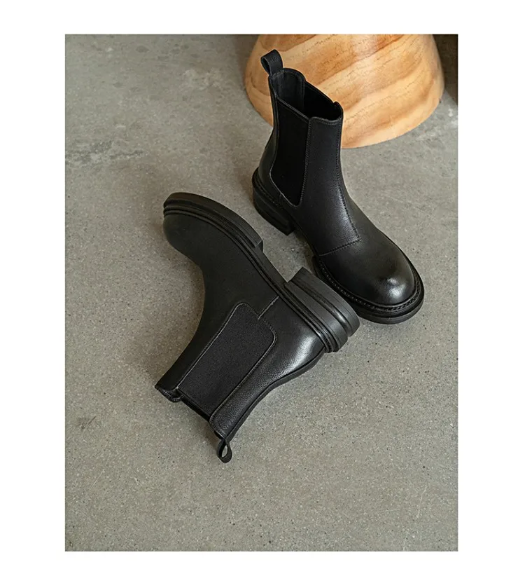 2021 Winter Boots Women Split Leather Boots Round Toe Thick Heel Shoes Women Plaform Boots Fall Shoes Casual Black Ankle Boots