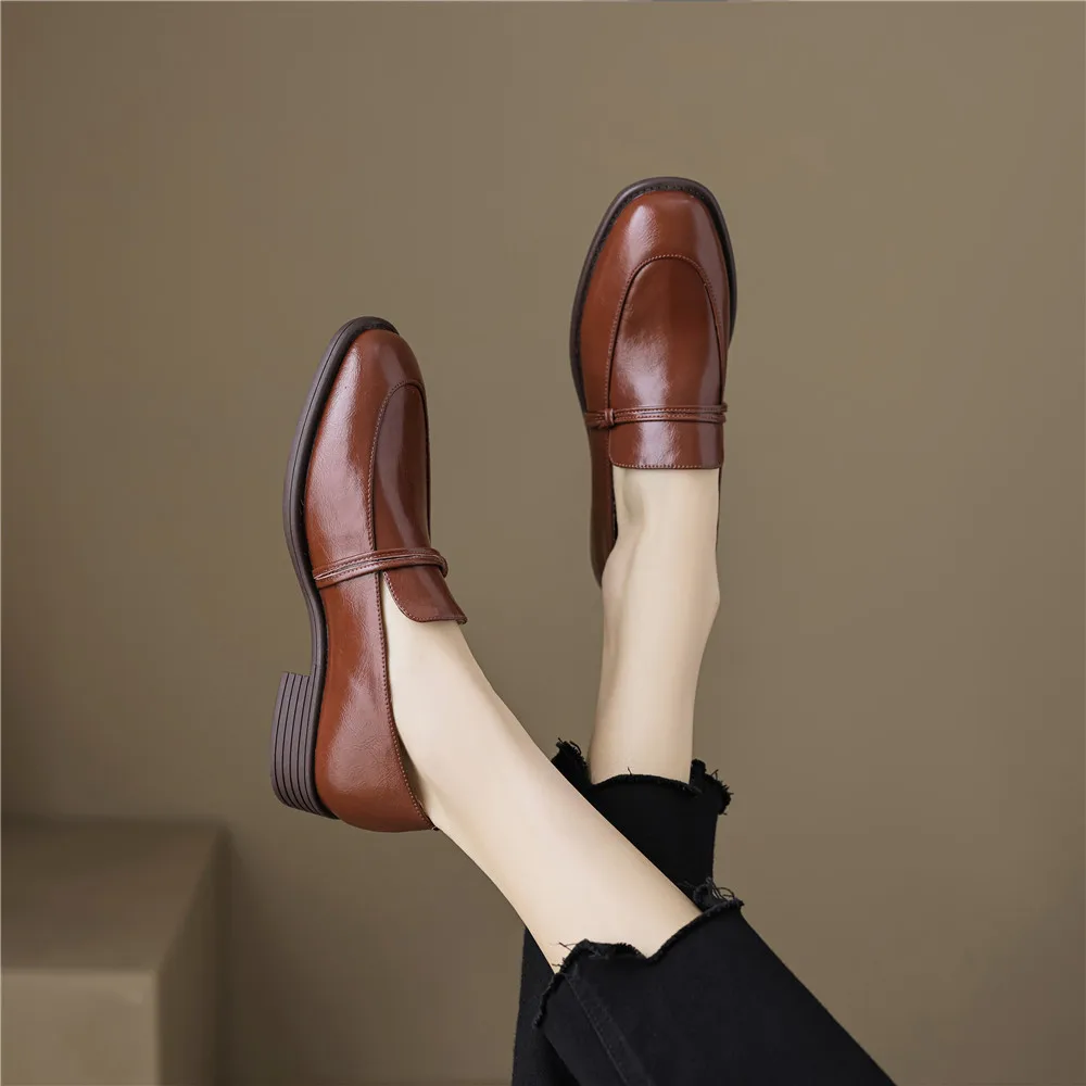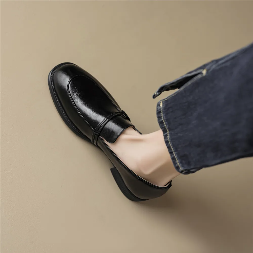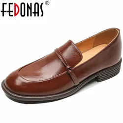 FEDONAS Basic Women Pumps Low Heels Round Toe Genuine Leather Spring Autumn...