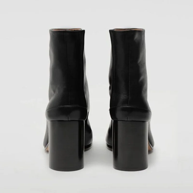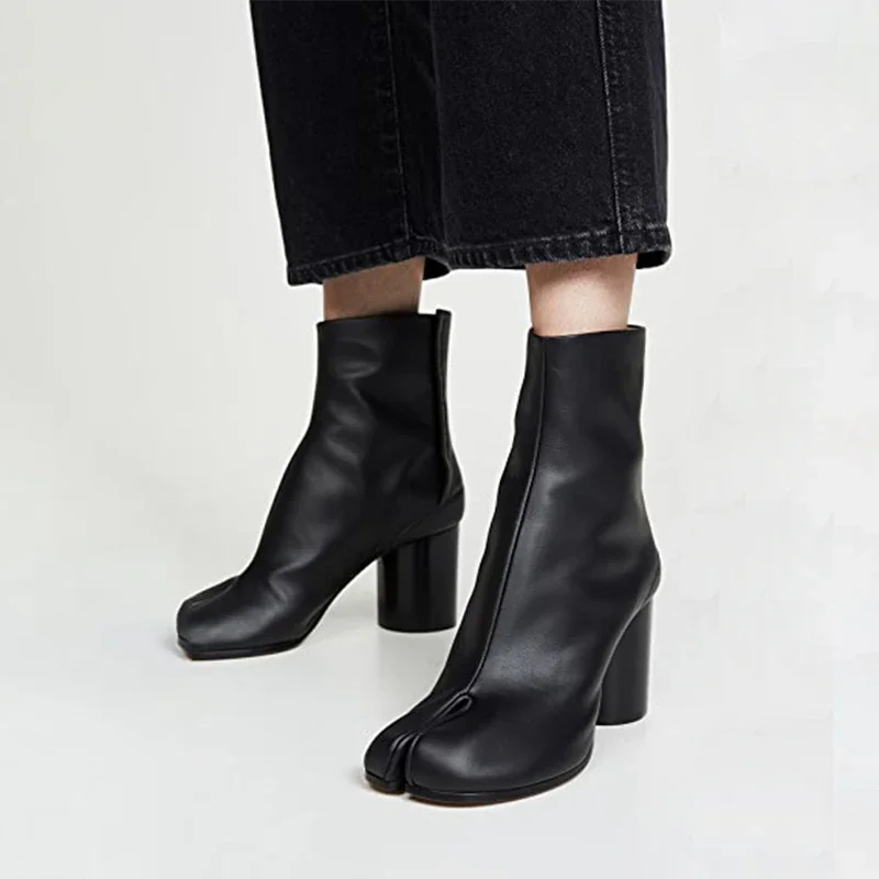 2024, брендовые дизайнерские кожаные ботинки таби, модные женские ботильоны на круглом массивном высоком каблуке, осенне-зимняя обувь с разделенным носком