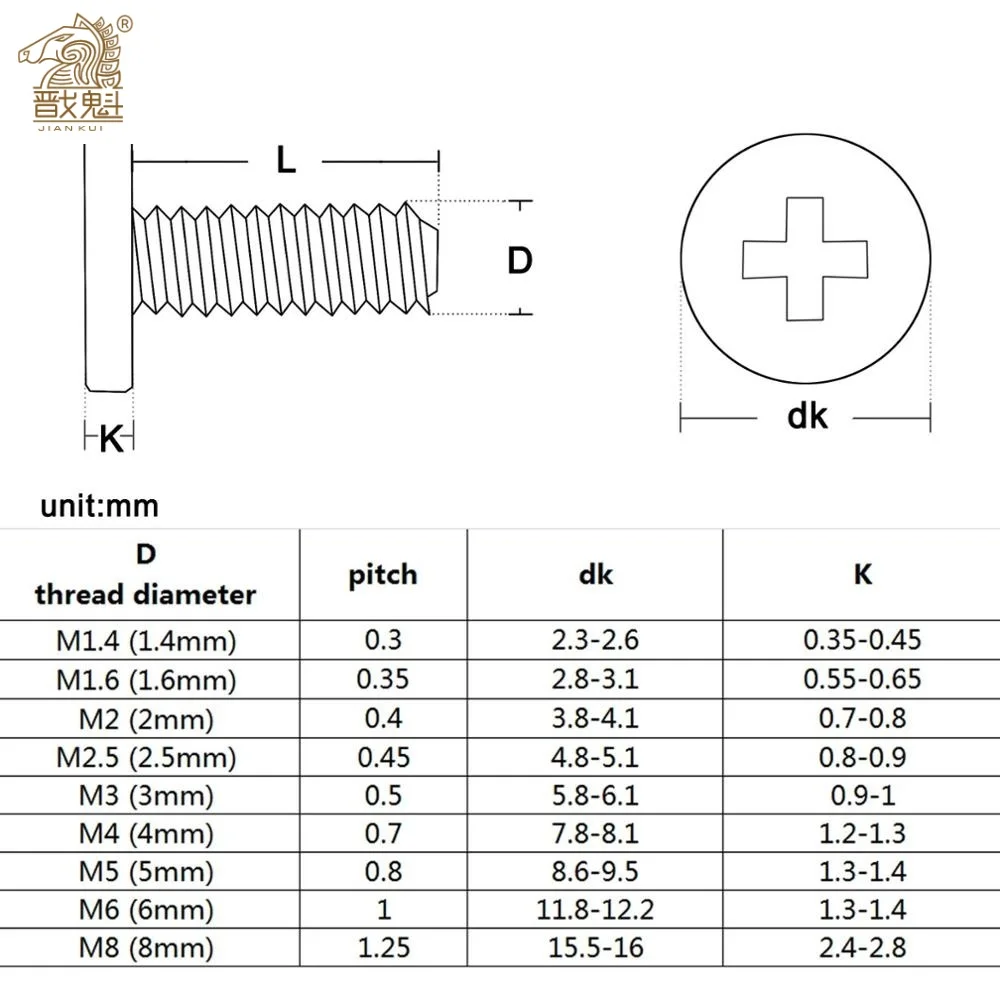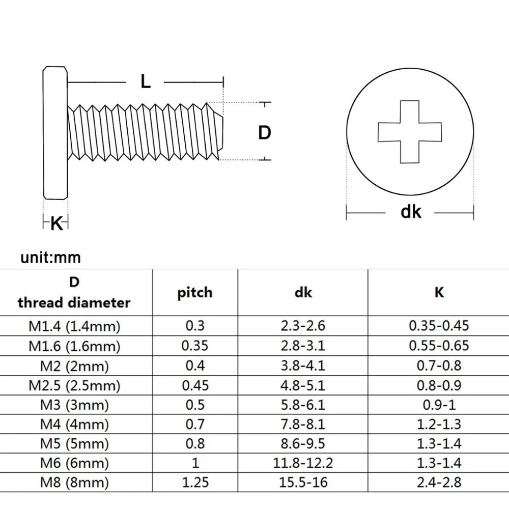 Stainless steel cross recessed screw 100304/50/20 pieces, m1.4, m1.6, M2, M2.5,...