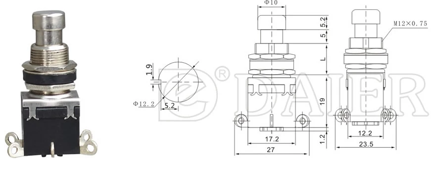 - Тип переключения:Кнопочный выключатель