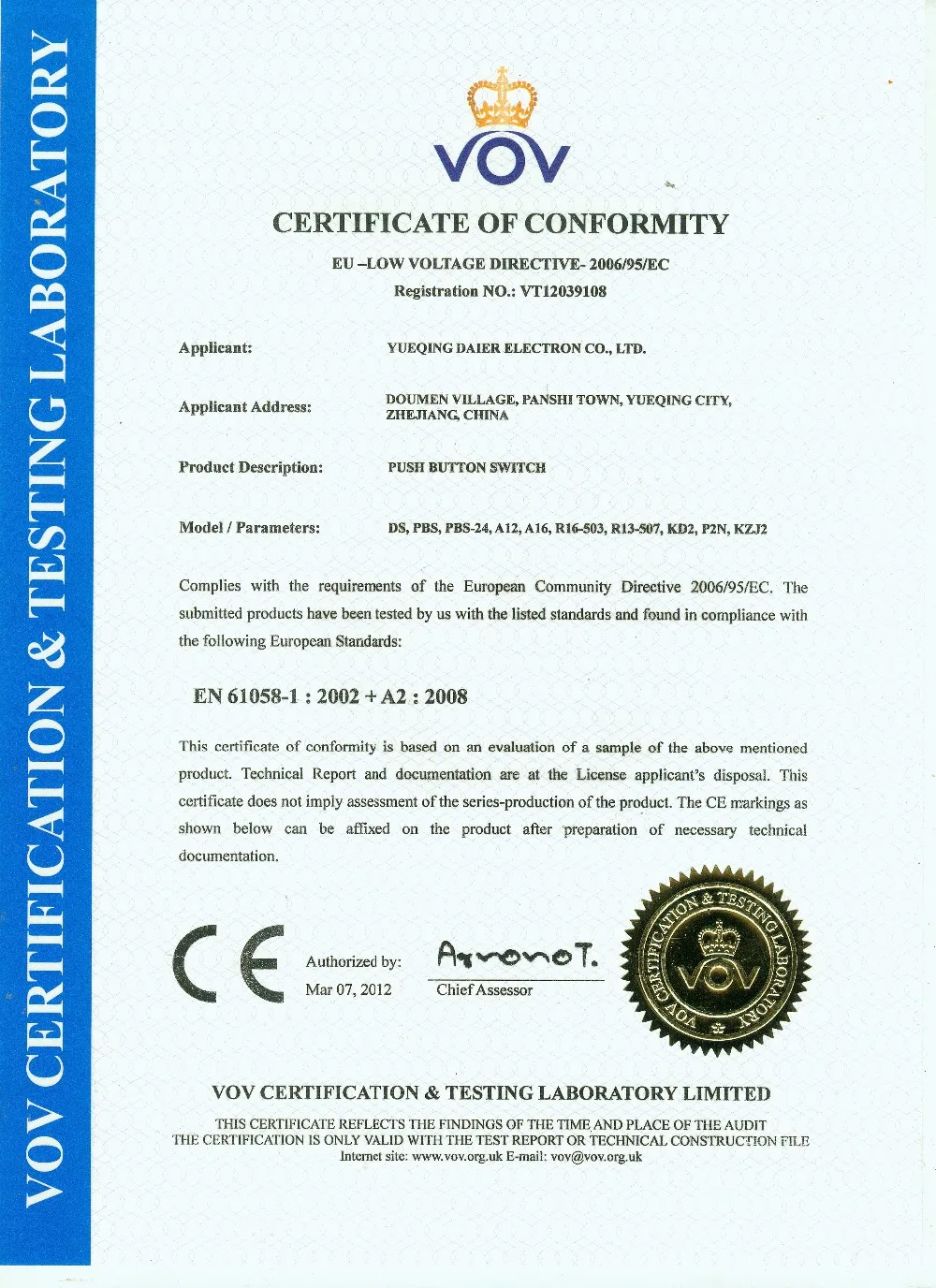 - Сертификация:Европейский сертификат соответствия