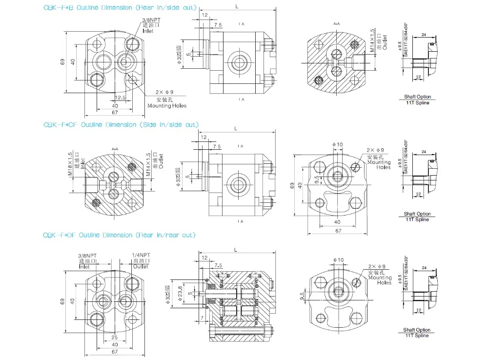 CBT, Гидравлический масляный насос, соответствует стандартам фотографий CBT-F202.1C CBT-F203.2C CBT-F204.2C CBT-F205.8C CBT-F206.8C, редукторный насос 8C с длинным валом и вращением по часовой стрелке