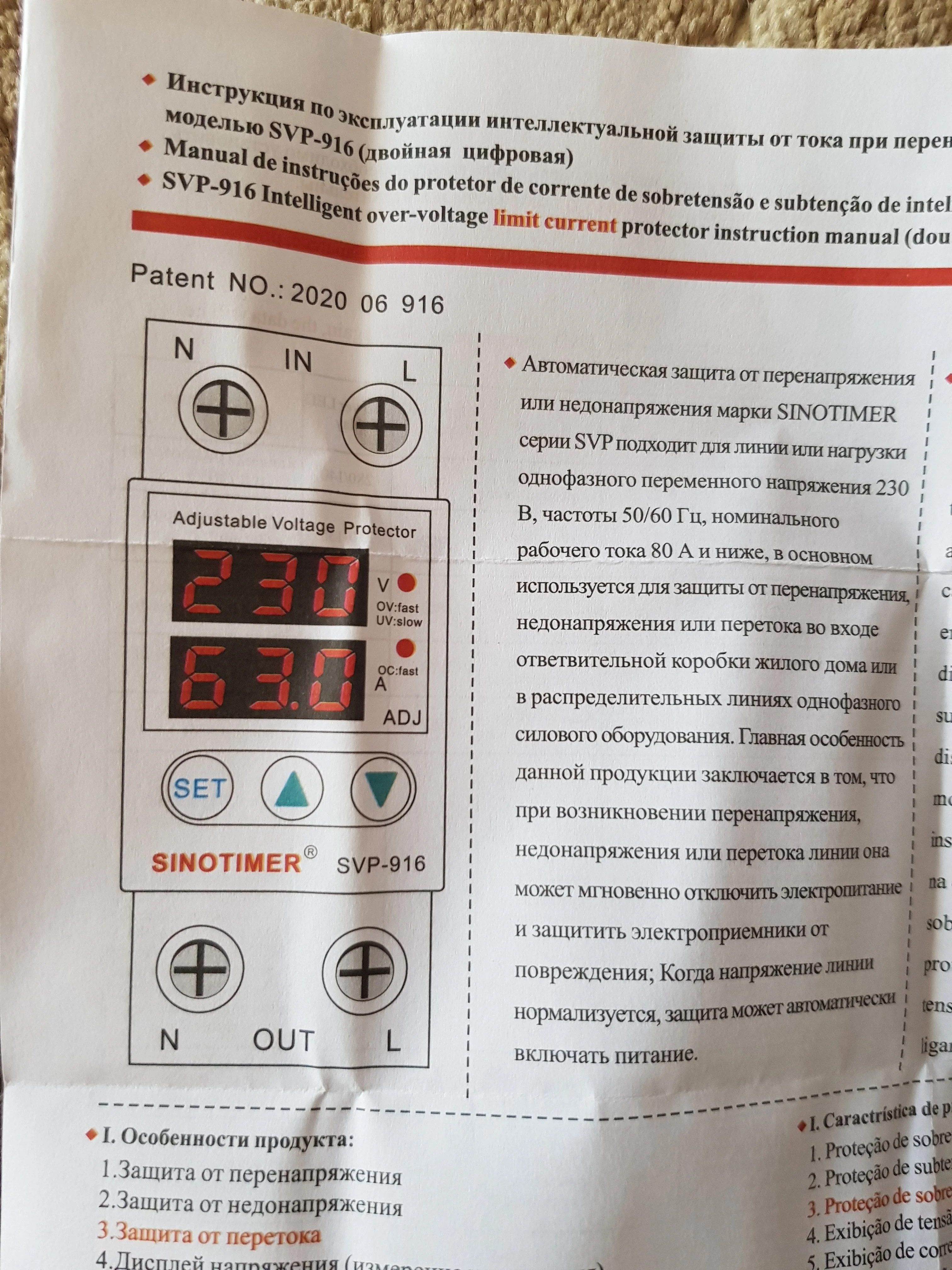 Автоматическая защита от перенапряжения и пониженного напряжения серии SVP SINOTIMER подходит для однофазного переменного тока 230 В или 120 В, 50 Гц, номинального рабочего тока 40 А, 63 А или 80 А или меньше нагрузок.Он в основном используется для входа в бытовую коробку для жилых помещений или защиты от перенапряжения, пониженного напряжения или перегрузки по току распределительных линий для однофазного электрооборудования.Его основная особенность заключается в том, что когда цепь имеет проблемы с перенапряжением или пониженным напряжением, перегрузкой по току, продукт может мгновенно отключить источник питания, чтобы защитить электрооборудование от повреждения, кроме того, протектор может автоматически включать питание. источник питания, когда напряжение цепи возвращается в нормальное состояние.