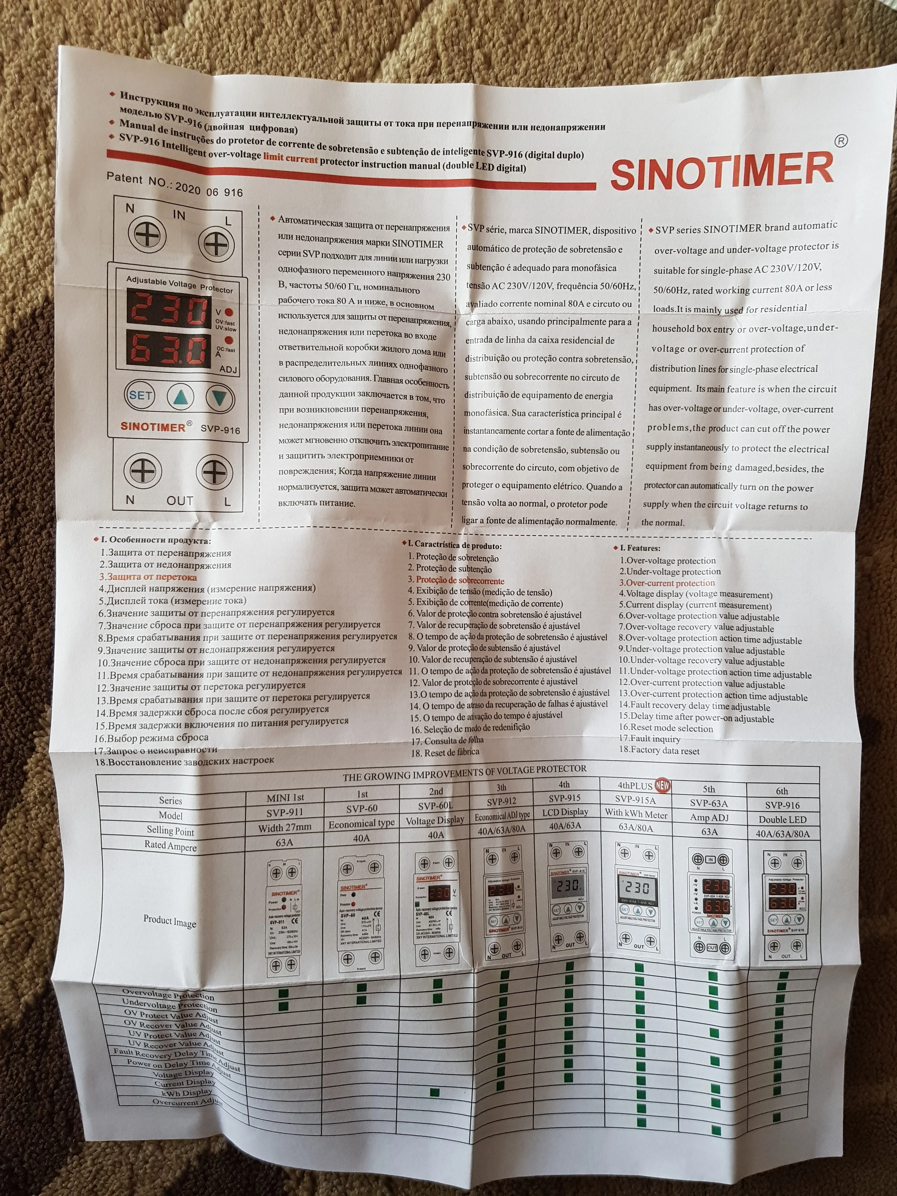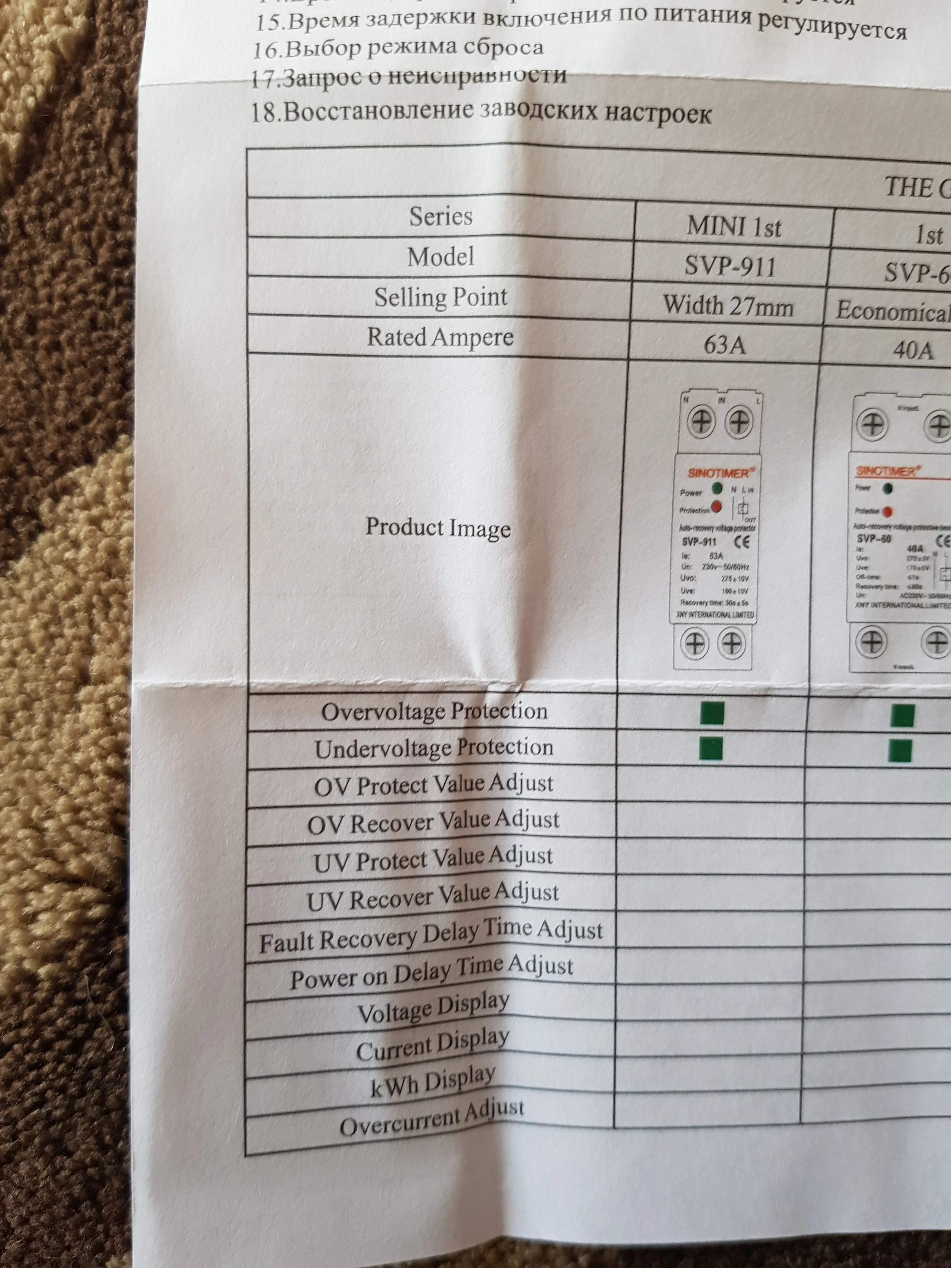 1. Номер модели: SVP-916 40A или 63A или 80A.