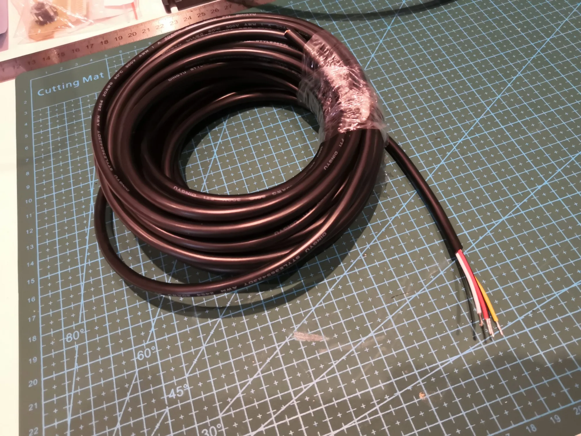 Нормальный кабель, ожидал чуть большего сечения и большей гибкости, так как из таблицы нифига не понятно. По факту сечение 0.75-0.8 где-то (20AWGx4 10м). Приехал быстро.
