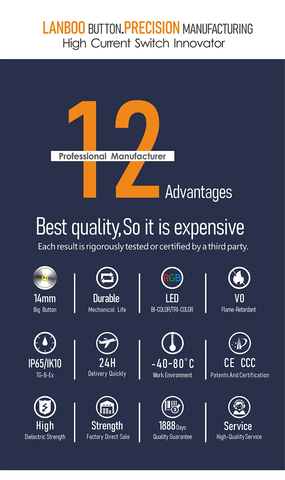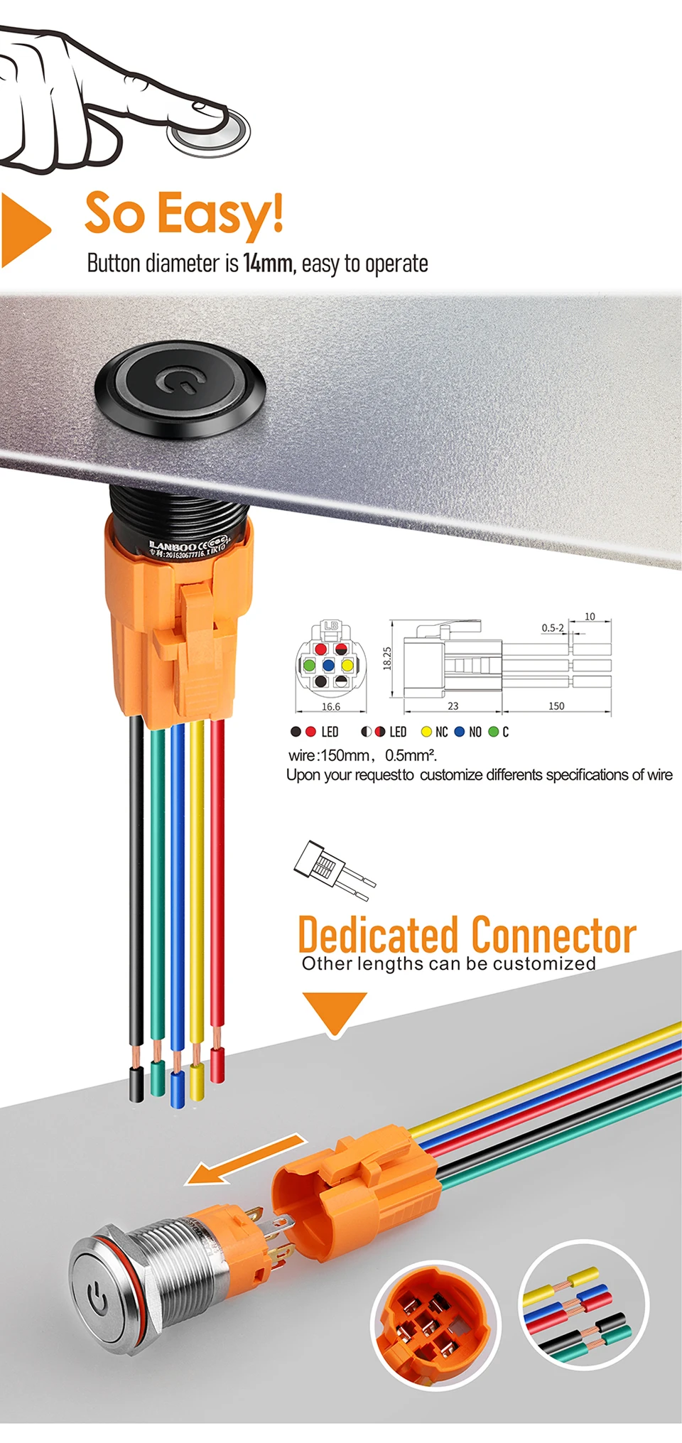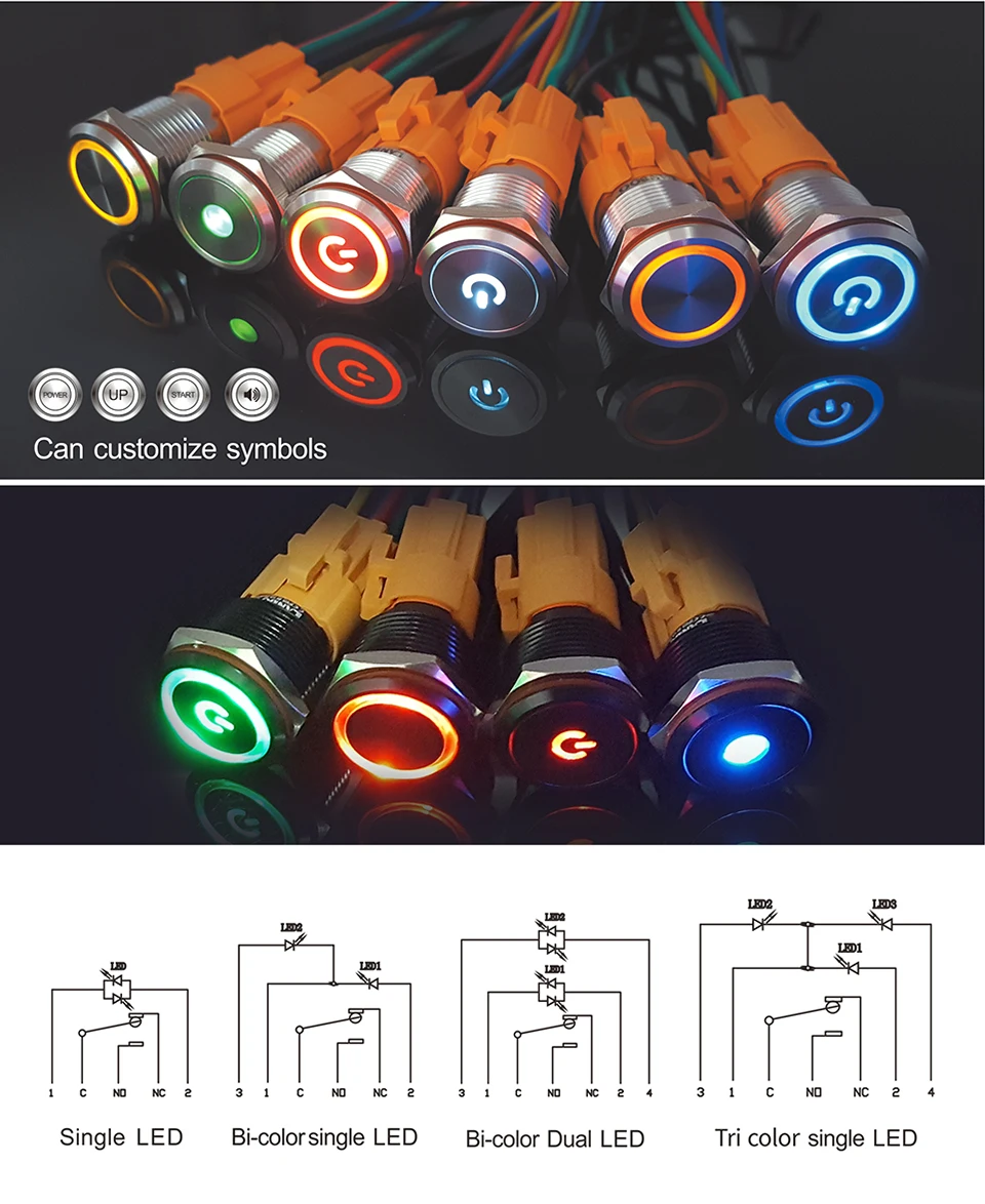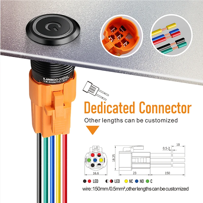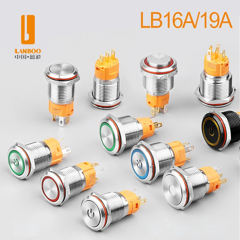 LANBOO 16mm metal push button switch can be customized IP67 9-24v and 220V...