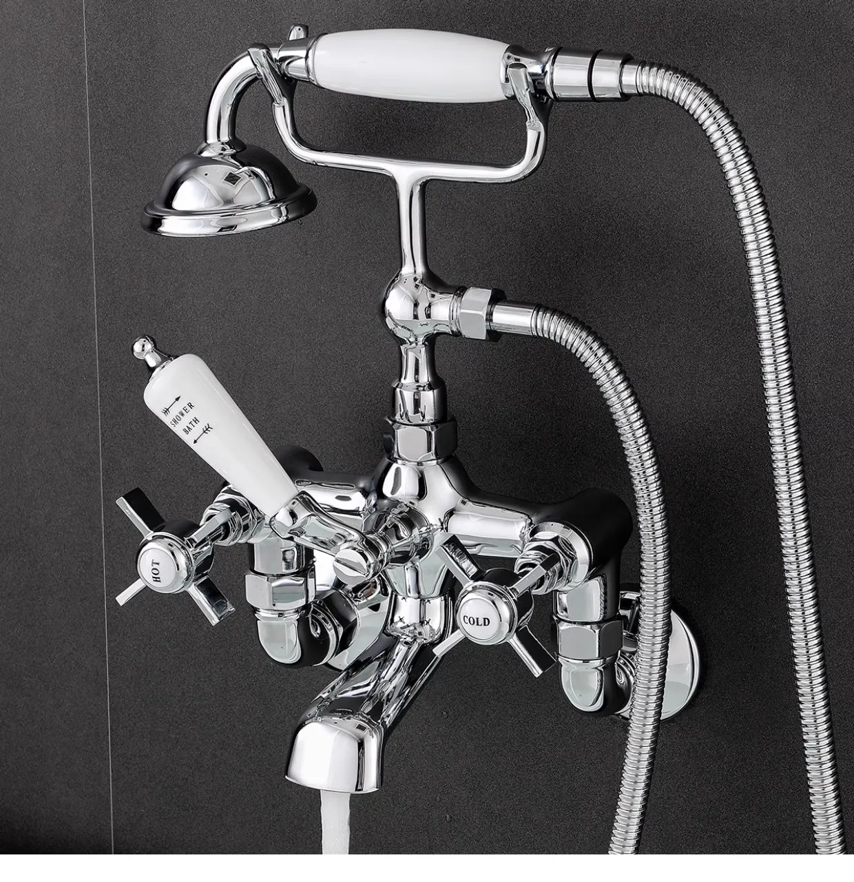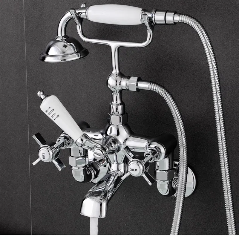 Bathroom Bathtub Faucet Set Brass Wall Mounted American Style Classical Cross...