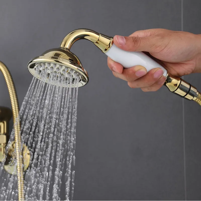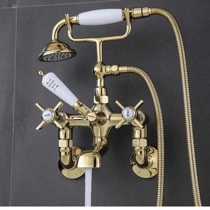 Набор смесителей для ванной комнаты, латунный настенный крестообразный настенный кран с золотой хромированной отделкой