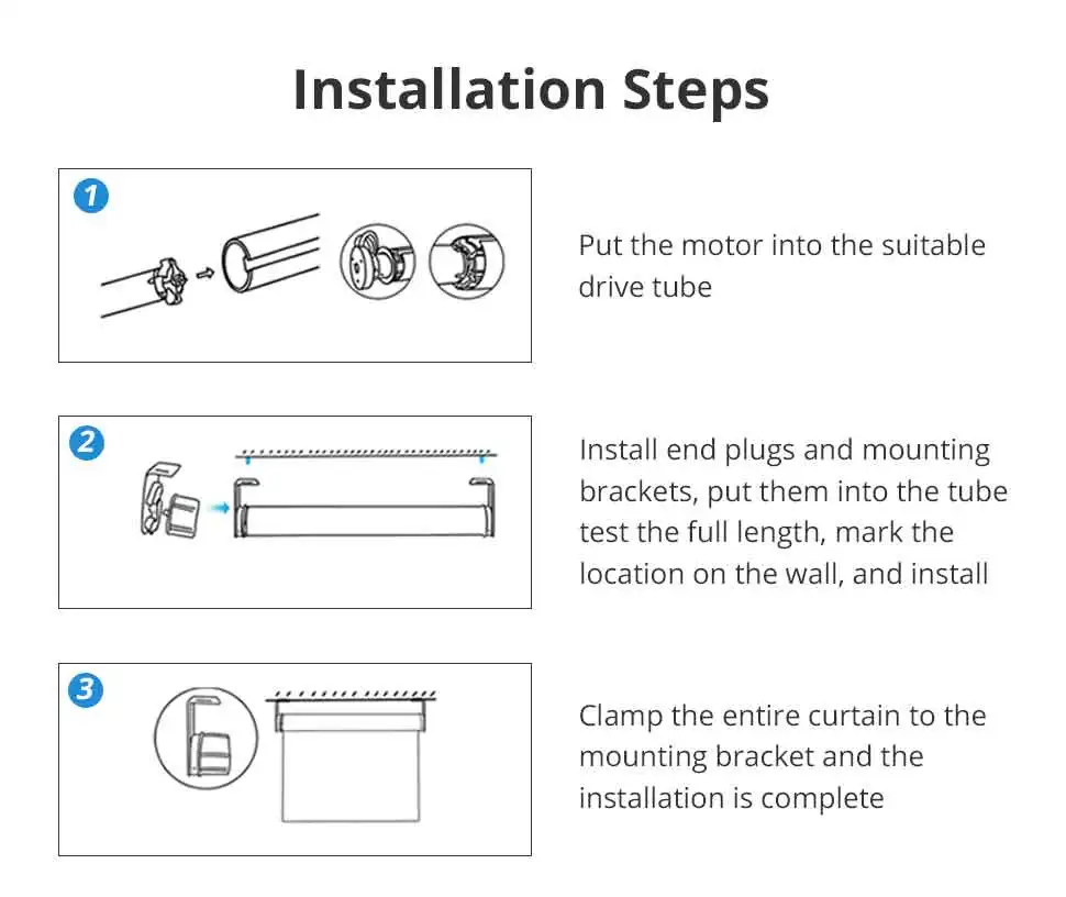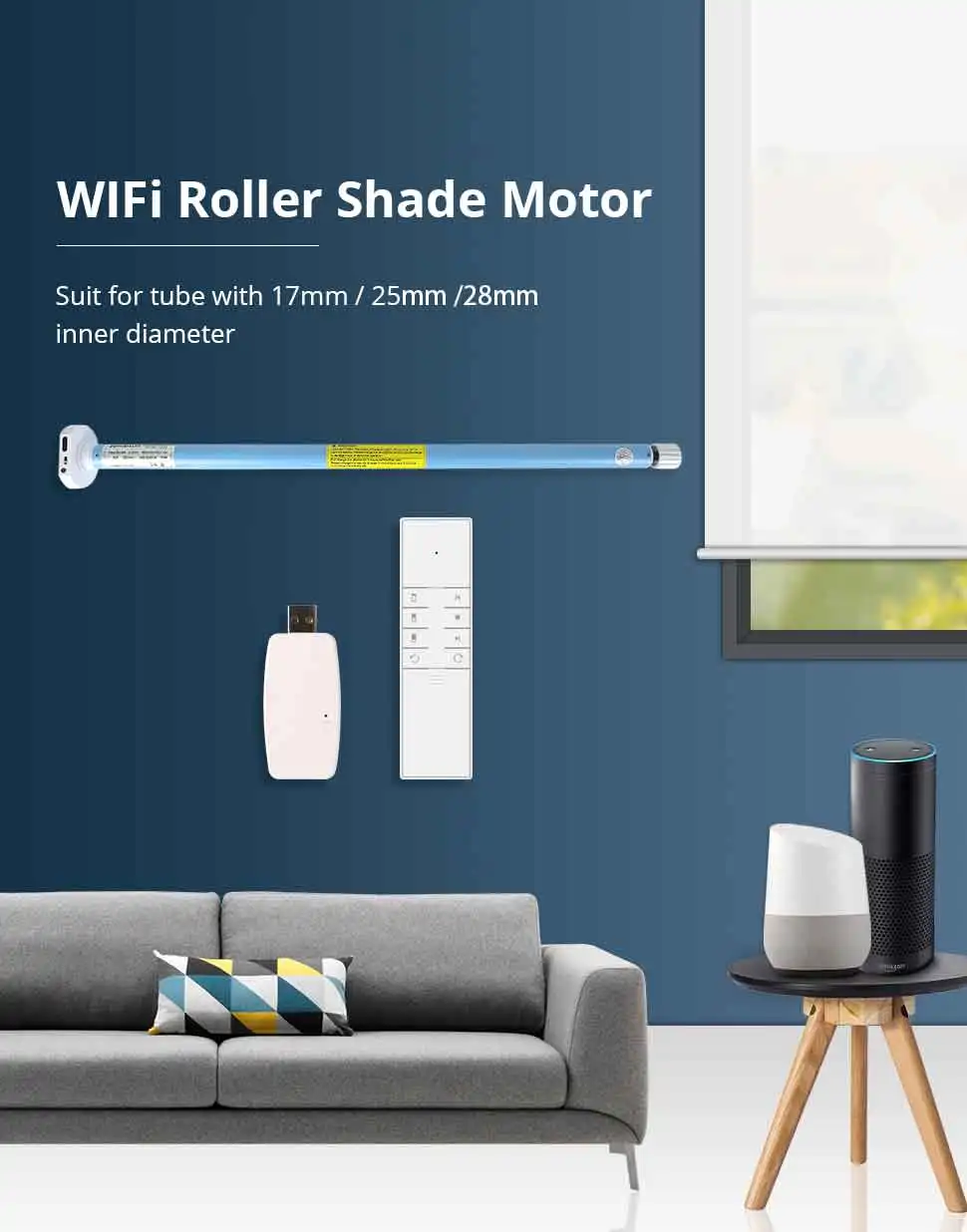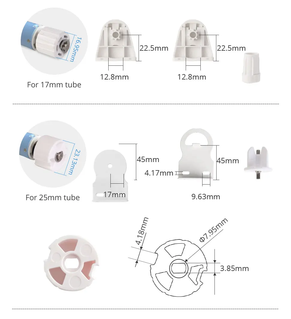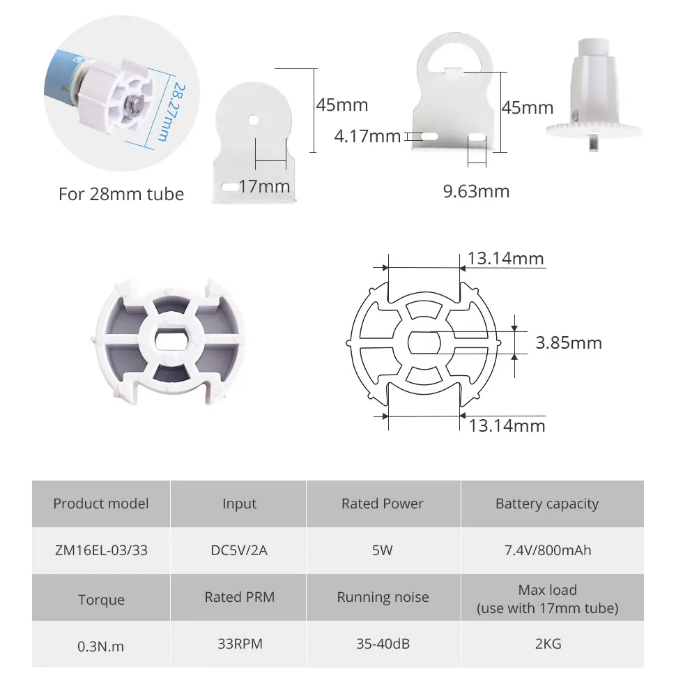 - Tubular motor for 17/25/28mm tube, carry up to 2kg / 2m roller shade.
