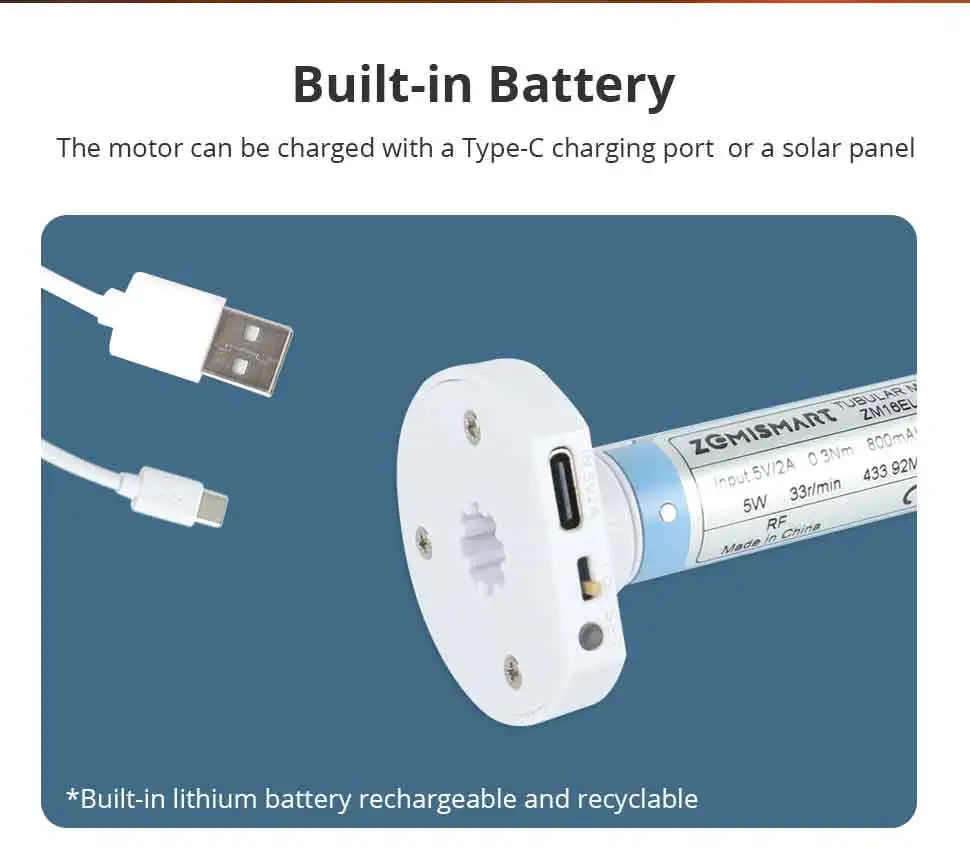 - This electric roller shade motor with low power (built-in battery ).