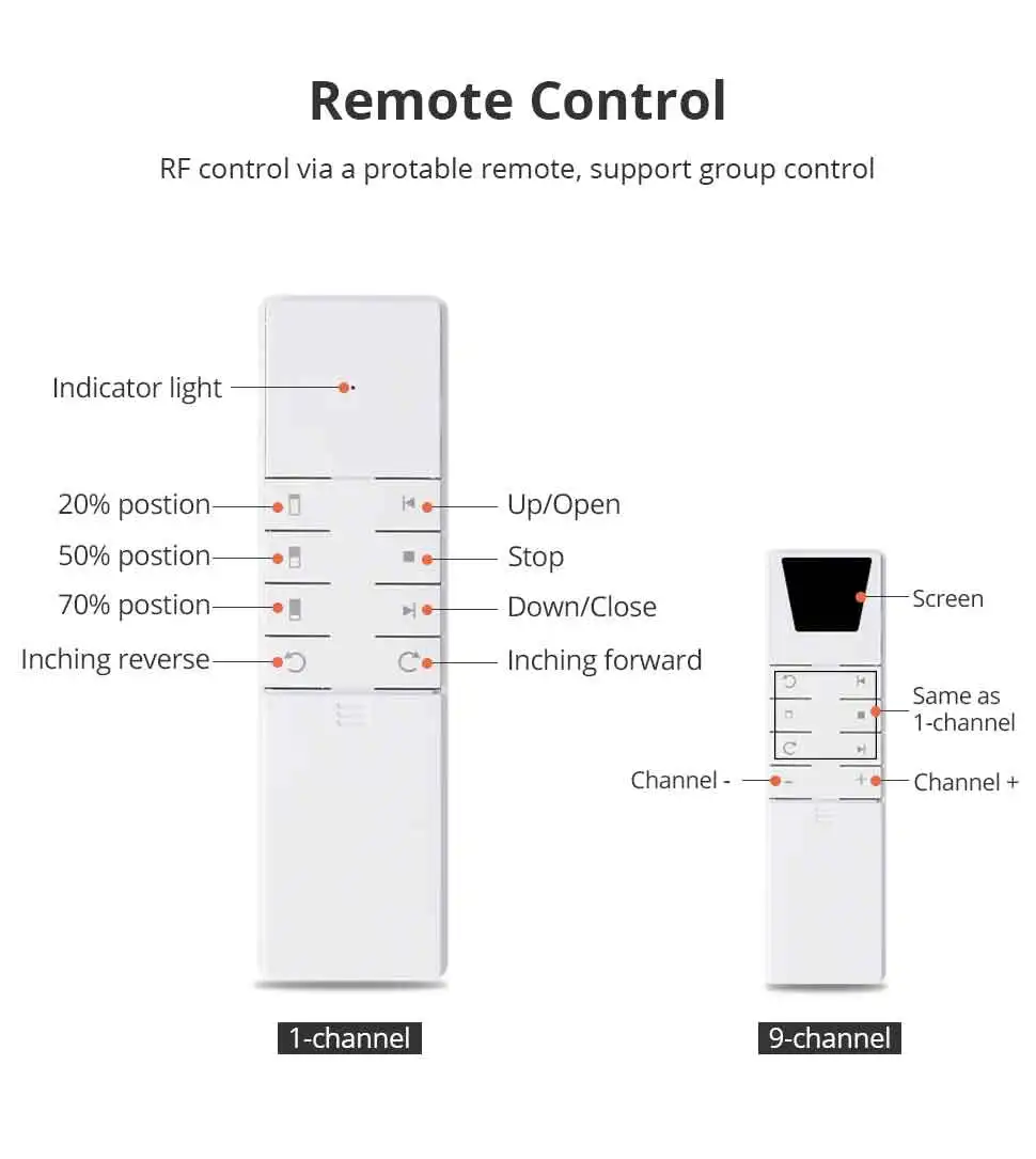 - RF Motor only can be controller by remote, doesn't support Tuya Smart APP.