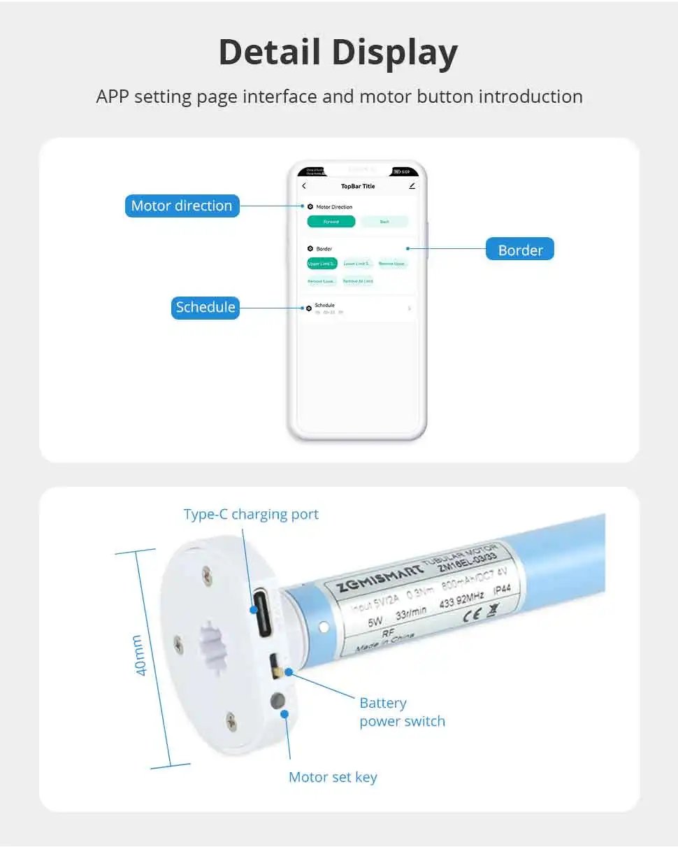 - Built-in RF remote control, easy to install and set up, reduce workload. widely used in indoor hollow blinds, indoor small aluminum, wooden blinds, etc., with electronic limits.