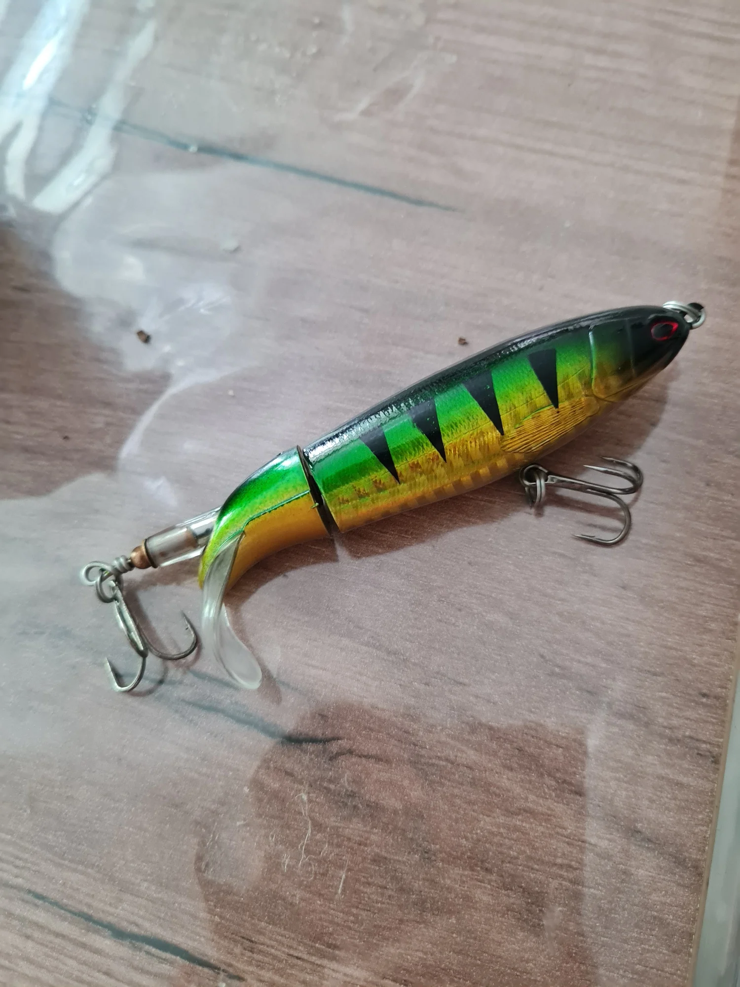Сделан хорошо.Я бы поменял тройники на более крупные(хотя бы централтный),т.к.тело булькопопа шире.Шумовая лопатка вроде из поликарбонат,но крупная щука сможет вероятно его разрушить