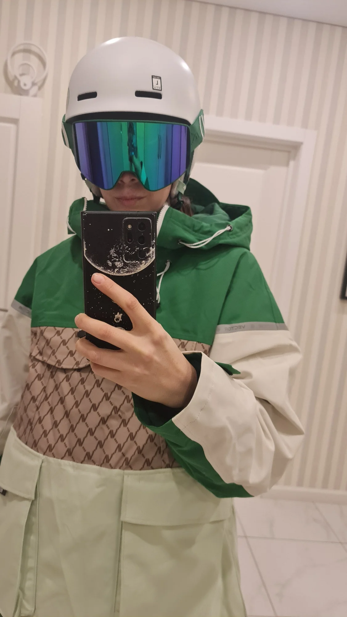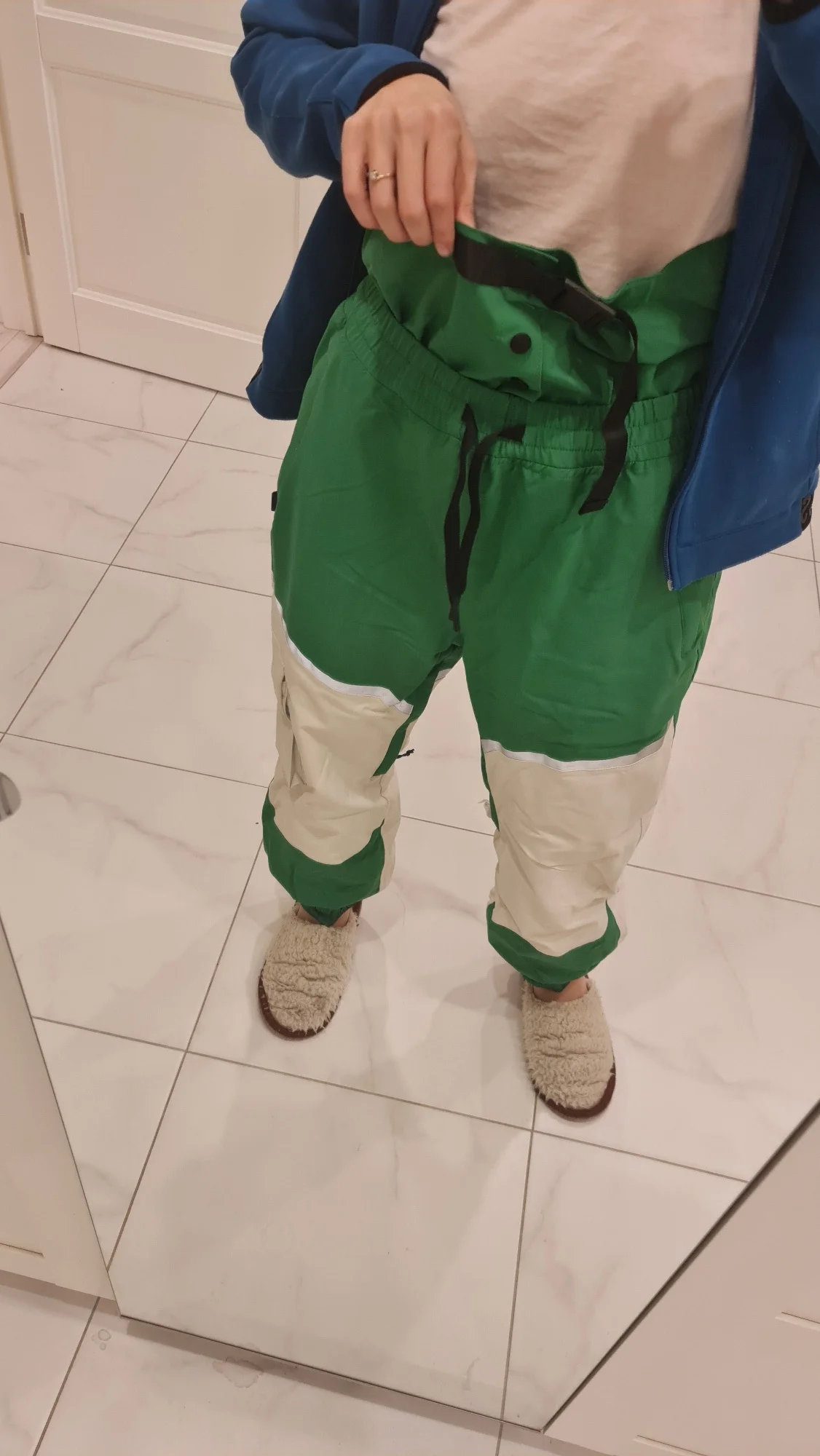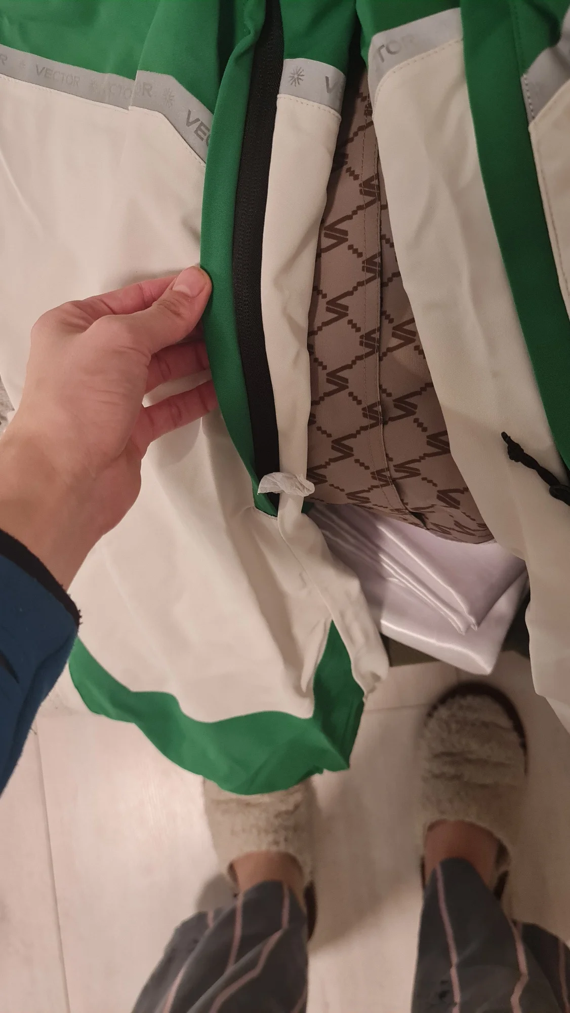 костюм шикарный! Всё детали продуманны. Заказывала специально оверсайз, но кажется переборщила 😅 Куртка удобная, внутри на спине сеточка, снизу резинка с заклёпками чтобы плотнее сидело. Спереди два накладных кармана на липучке и большой карман на груди на молнии. На рукавах липучки, внутри вшивной рукав с дырочкой под большой палец. Подкладка очень приятная на ощупь. Штаны на резинке, без молнии в причинном месте (важно доя мужчин 😳). Есть дополнительный слой защиты от попадания снега на поясницу- на клепках и можно утянуть по себе. так же можно отстегнуть этот слой. снизу на резинке