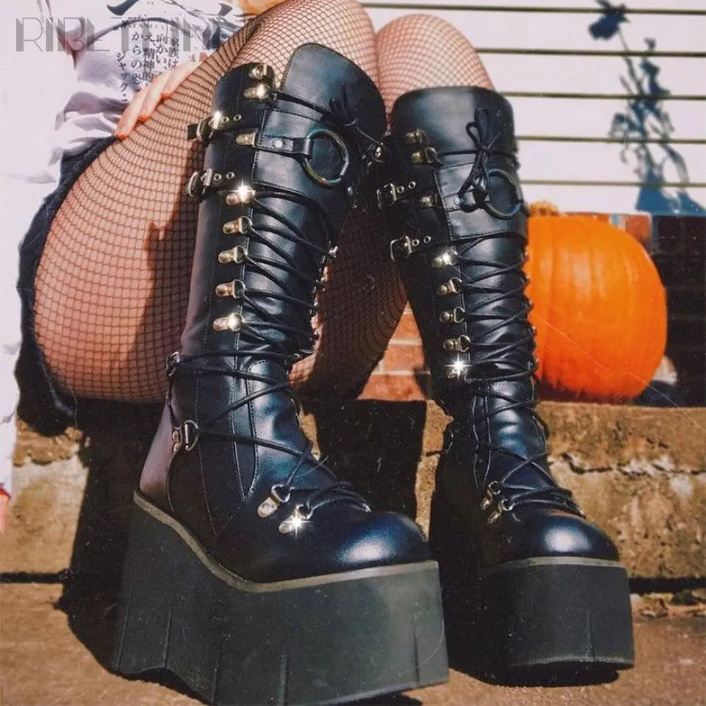 2022, зима INS, новые женские мотоциклетные ботинки до бедра в стиле панк, готи, крутые модные женские мотоциклетные пинетки