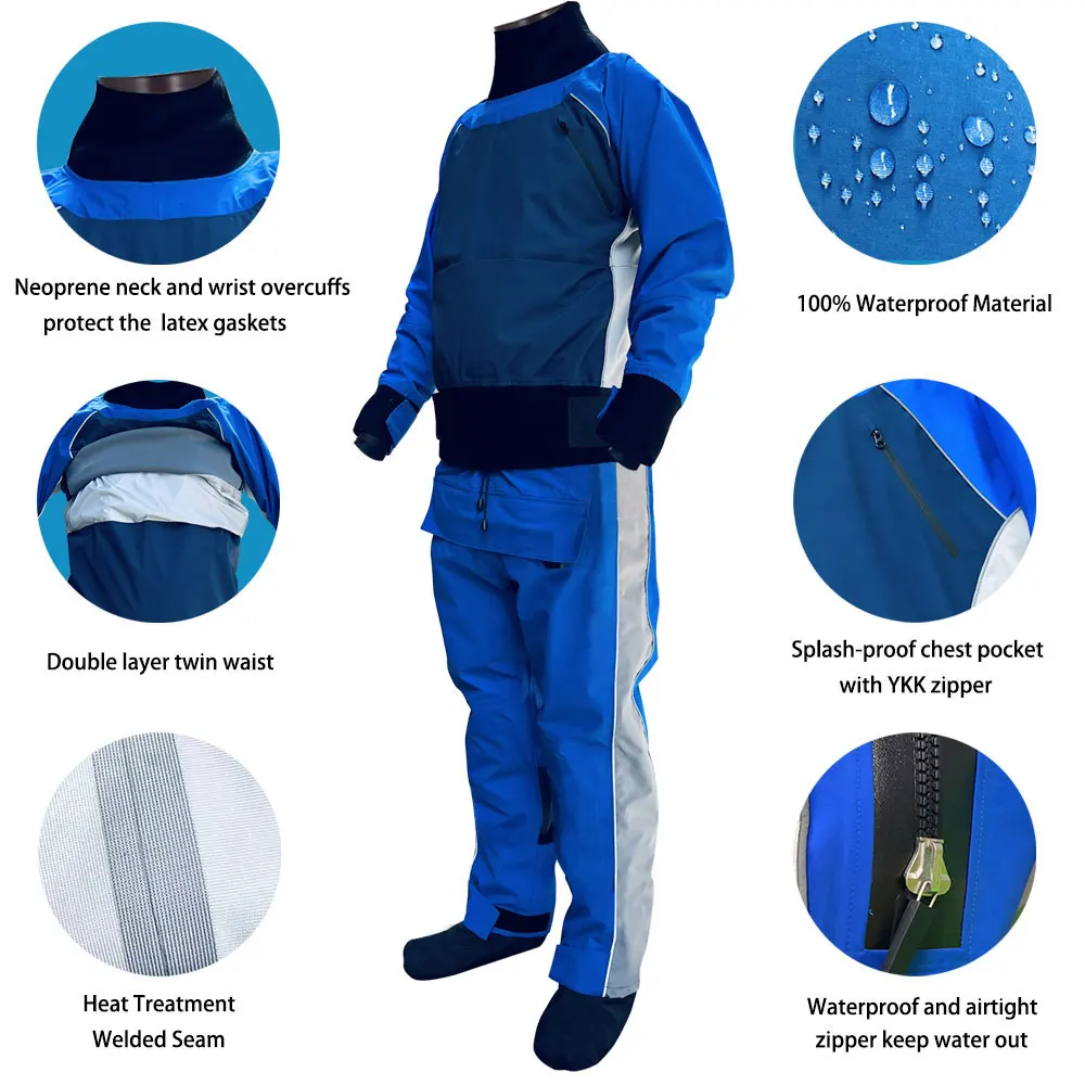 Латекс, набивки на запястье и носки из черной ткани-сухой костюм для гребли на байдарках обеспечивает отличную защиту на больших реках и в бурном море. Эти уплотнения защищены тканевым слоем, что означает, что они служат дольше и действительно помогают вам чувствовать себя лучше защищенными во время каякинга, парусного спорта, катания на лодках, рафтинга и т. Д. брызгозащищенные карманы на молнии на бедрах и рукавах обеспечивают доступность предметов первой необходимости, запястья и лодыжки можно отрегулировать для лучшего прилегания с помощью ремня на липучке.