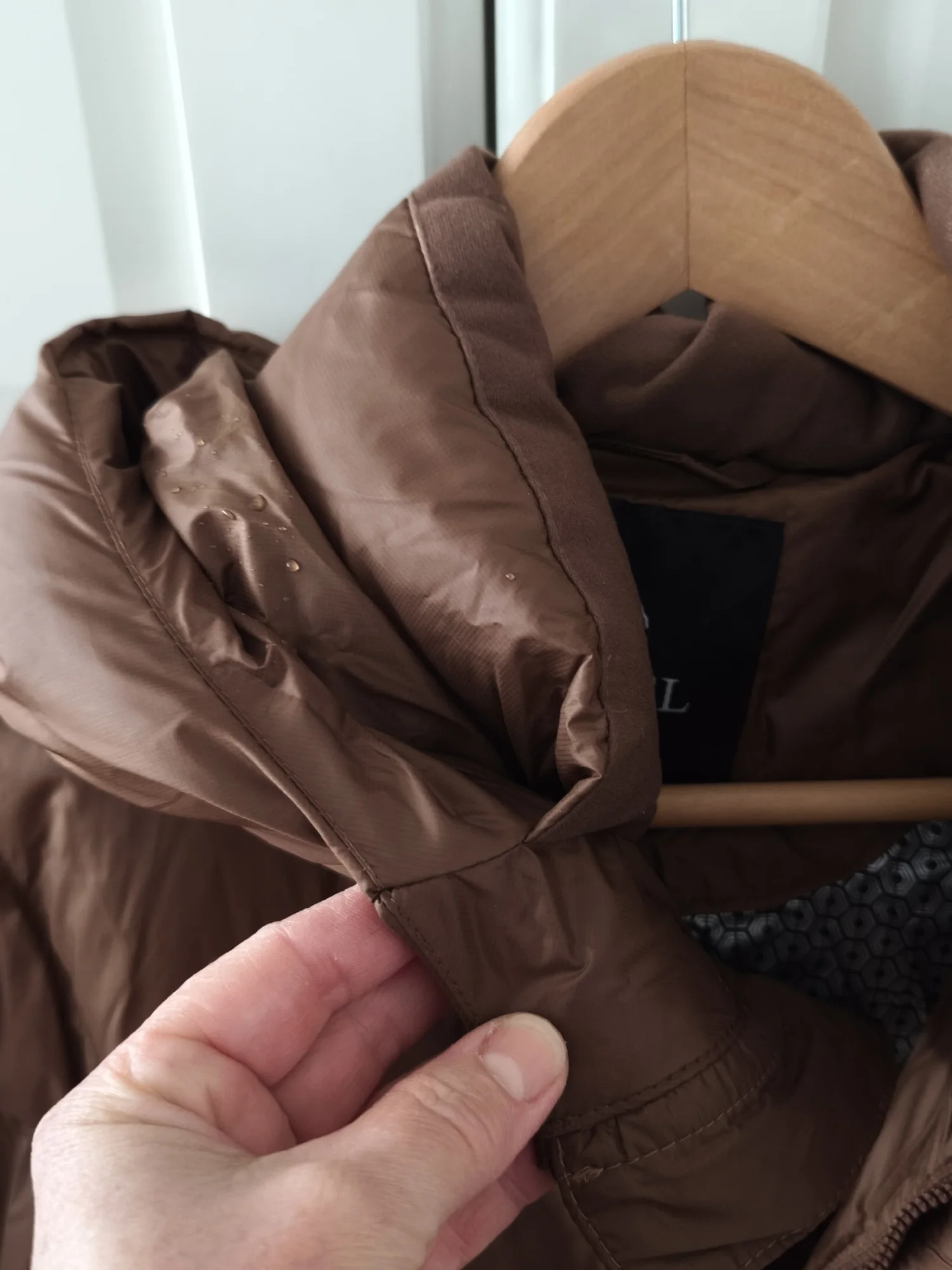 На рост 155, вес 58, бедра 98 рискнула заказать размер S. Таблица продавца примерно верная ( 1-2 см расходятся). Набит средне, карманы только наружние. Молния с двойным замком, клапан со скрытыми кнопками. Под капюшоном воротник . Ткань верхняя тонкая, дешёвая. Подкладка ещё дешёвле, тактильно не приятная. Примерка на футболку. Общее впечатления, что пошили пробную партию из дешёвой ткани...посмотреть как пойдет. В магазине ещё бы 10раз подумала, о такой покупкеksenia c. 27 октября 2025