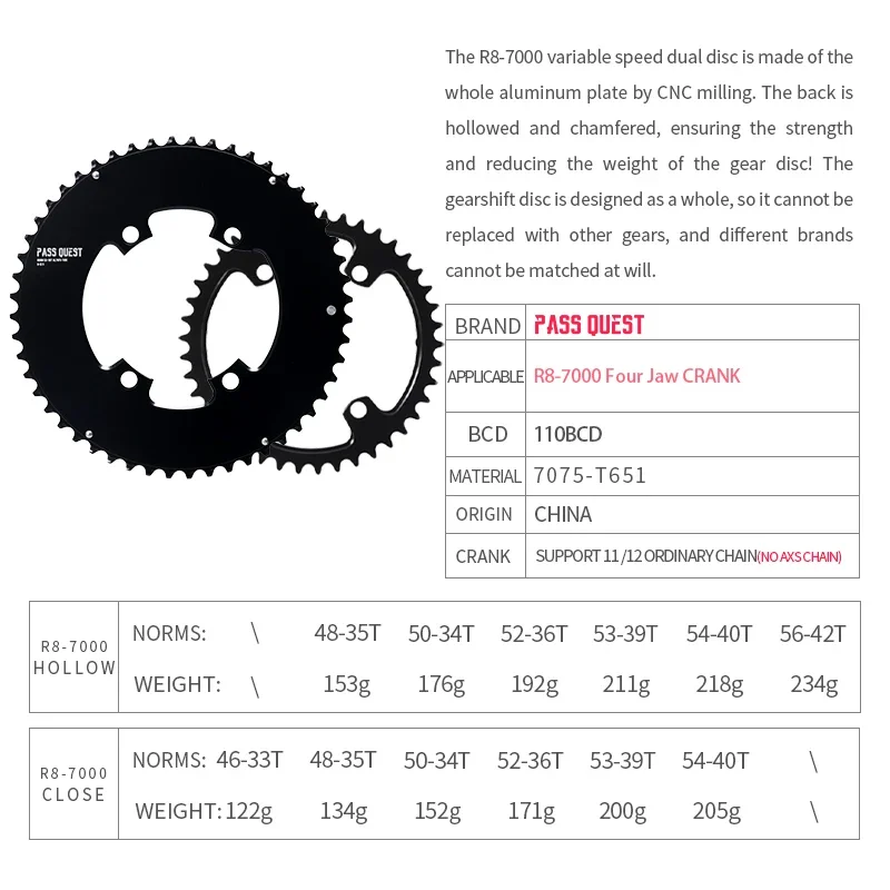 PASS QUEST Двойная звездчатка 46-33T 48-35T 54-40T 56-42T для SHIMANO ULTEGRA 105 R7000 R8000