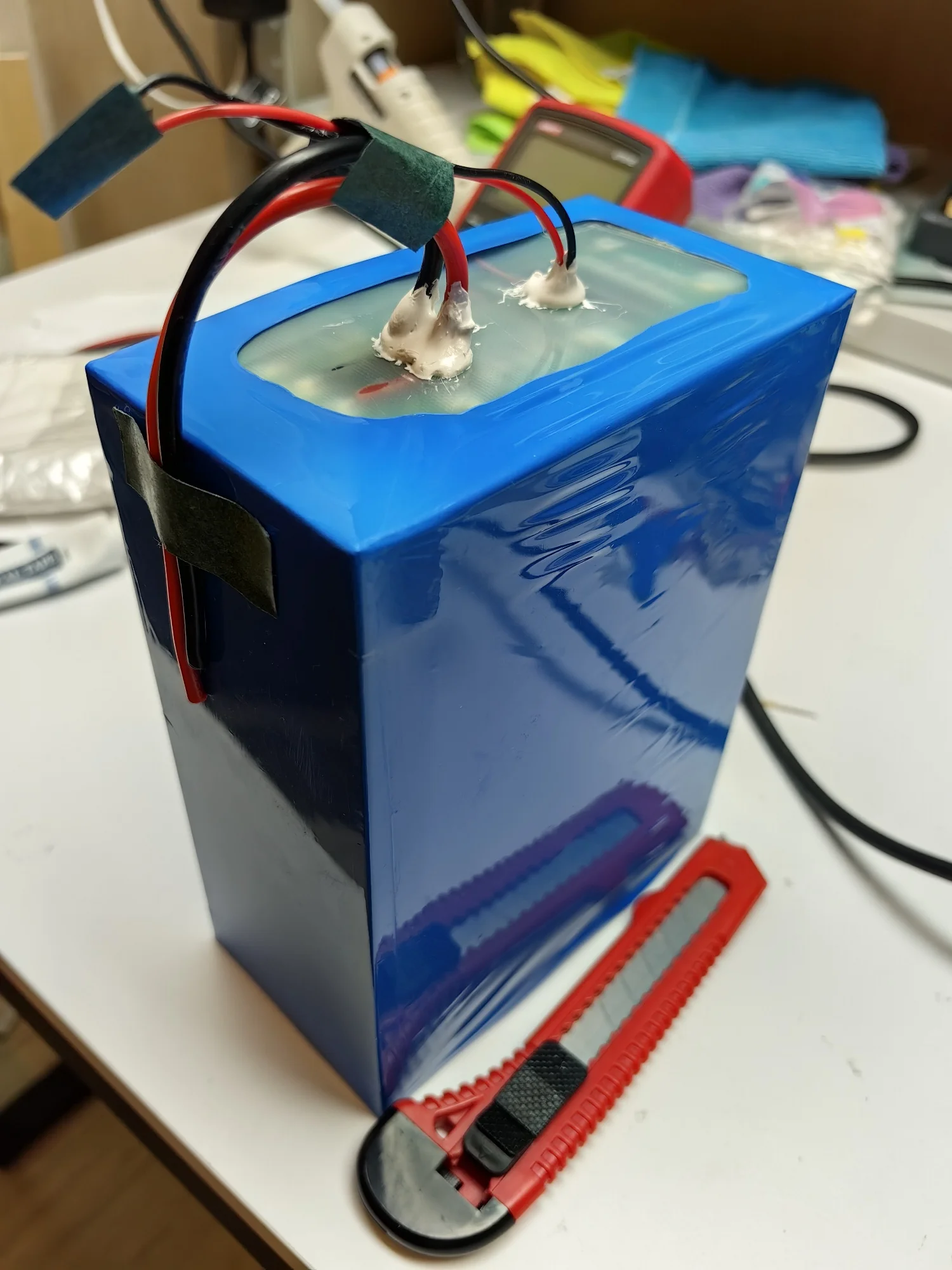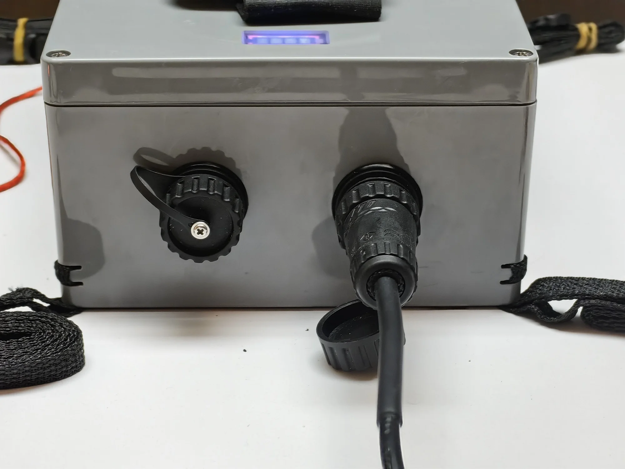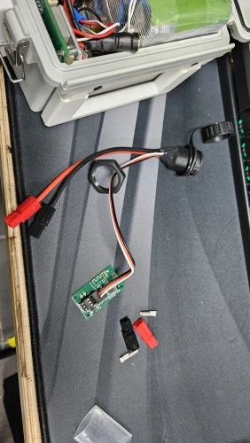 Разъем для аккумулятора, который меня беспокоил, включен в комплект, и он имеет отдельный водонепроницаемый корпус, в котором хранятся зарядное устройство, аккумулятор, мотор и другие детали. К счастью, он точно соответствует креплению для доски для серфинга, которое у меня есть. Это стандартная спецификация? В любом случае, я счастливо завершил все настройки и тестирование. Я придется на выходных протестировать это в море.
