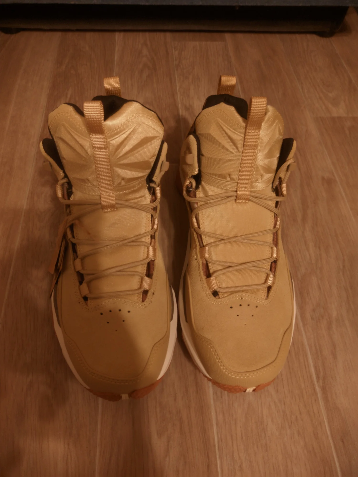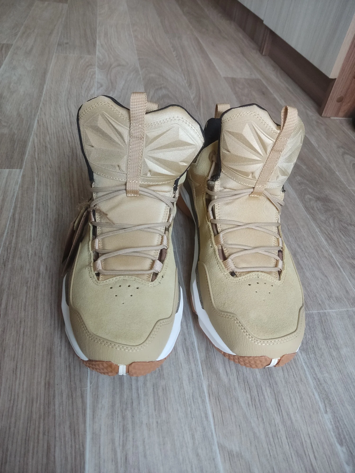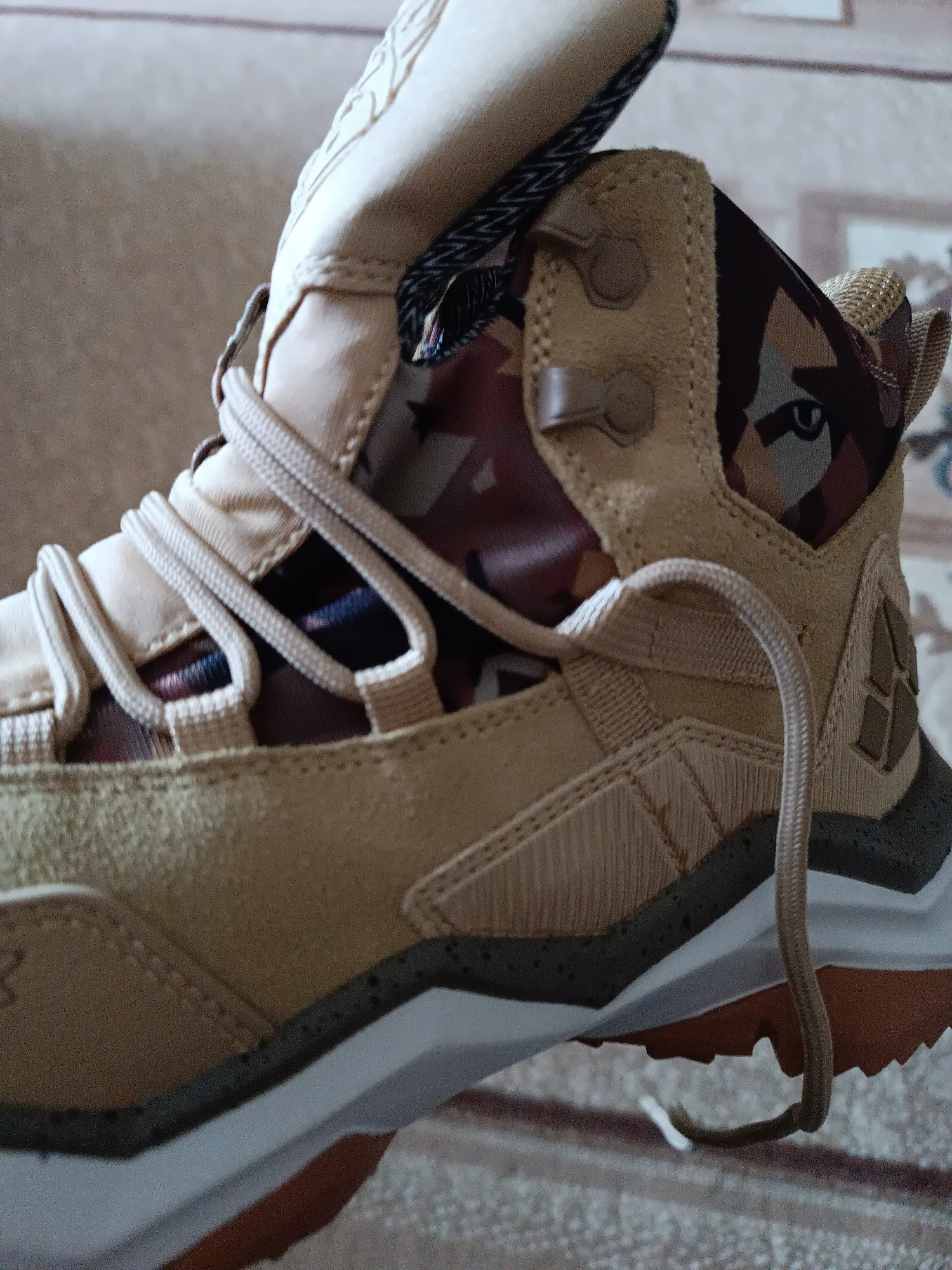 Кроссовки хорошие, но мне оказались велики. Пришлось их продавать и заказать на размер меньше. Ошибся с размером, т.к. до этого заказывал аналогичные, нет высокие зимние такого же размера (44) и полагал, что эти будут также норм. Но оказалось, что вы высоких нога не так болтается, т.к. высоко фиксирована, и они зимние, соответственно чуть свобода ноге не минус, а плюс. Оказалось, что осенние надо было брать на размер меньше. Они уже пришли и оказались по ноге. Обычно ношу 42-43 (летние и осенние чаще 42, зимние - 43). Доставка быстрая: около недели до пункта выдачи "Пятерочки". Упаковано без коробки: завёрнуты в бумагу и в двойном пакете. Всё целое и в порядке.