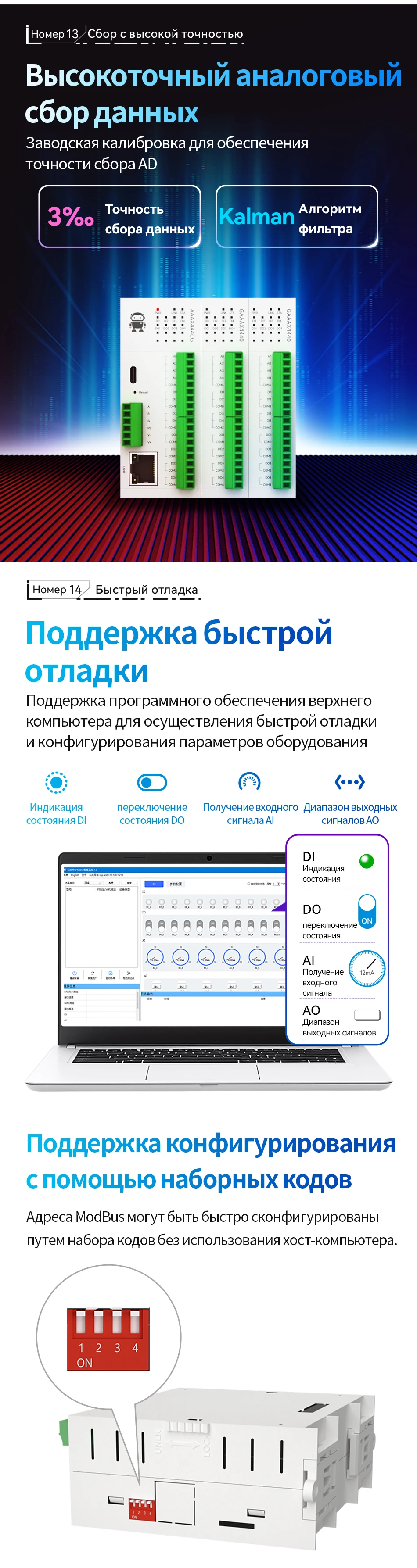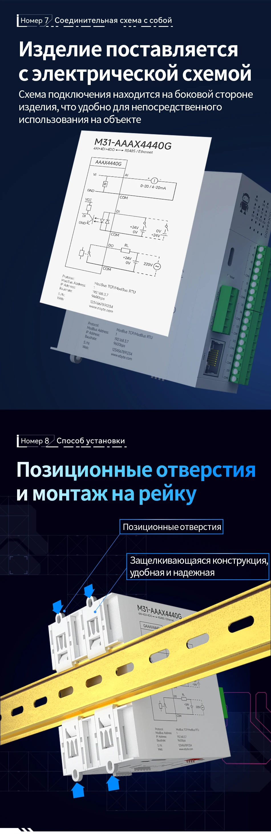 Чтобы отличить мой отзыв от поддельных, я напишу случайное слово "бомба". Теперь к моему отзыву. Сначала я понял, что это Ebyte M31, так что всю документацию можно найти на их сайте. Во-вторых, я понял, что мне повезло не быть обманутым, когда заметил, что продавец изменил логотип и другие элементы в объявлении. О товаре: он оказался действительно хорошим и простым в использовании. Я даже заказал у этого продавца снова. Неплохо, и я бы рекомендовал, даже если вы не привыкли к Modbus TCP. Программа, которую можно найти на ebyte, и их документация делают продукт действительно интуитивно понятным для новичков. Светодиодные индикаторы немного ярковаты, и хотелось бы, чтобы их можно было приглушить, так как они перебивают остальные лампы в моей панели.