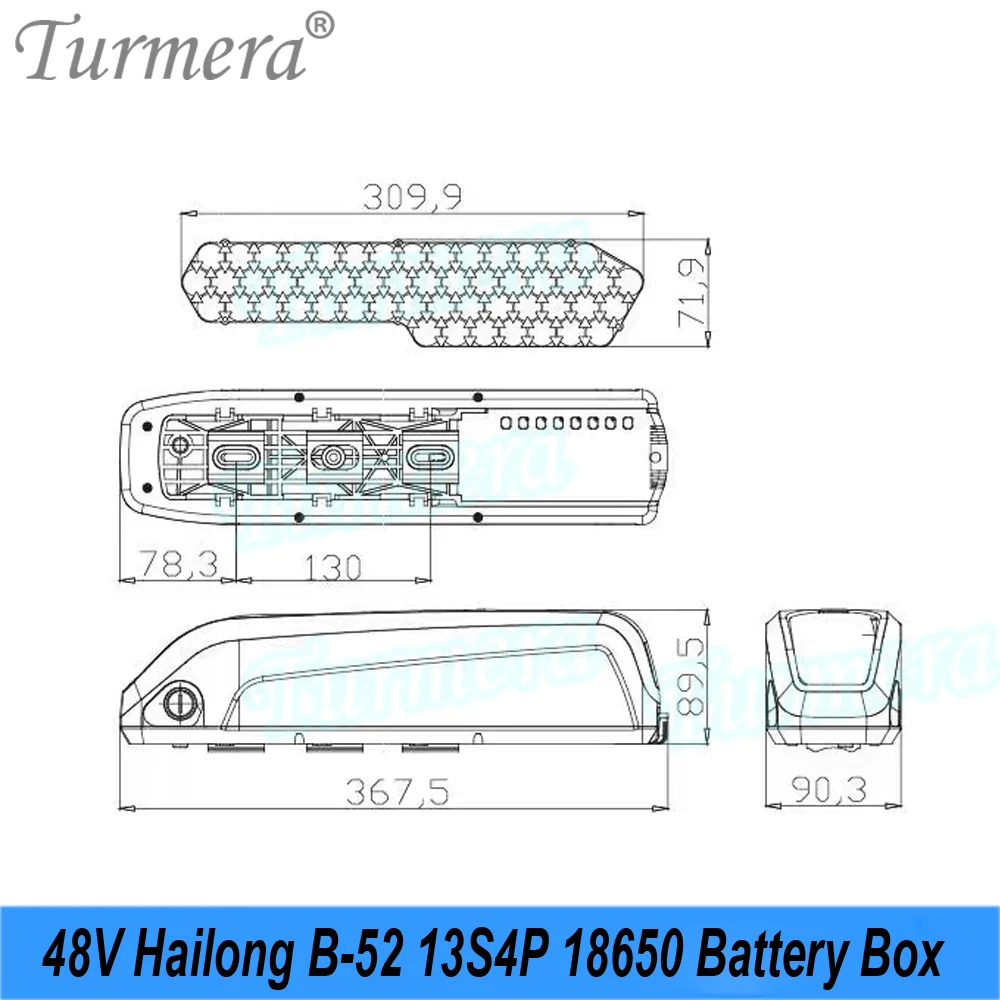 Turmera 36V 48V Hailong E-bike Battery Box Case with 13S6P 13S4P 18650 Holder...