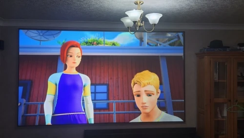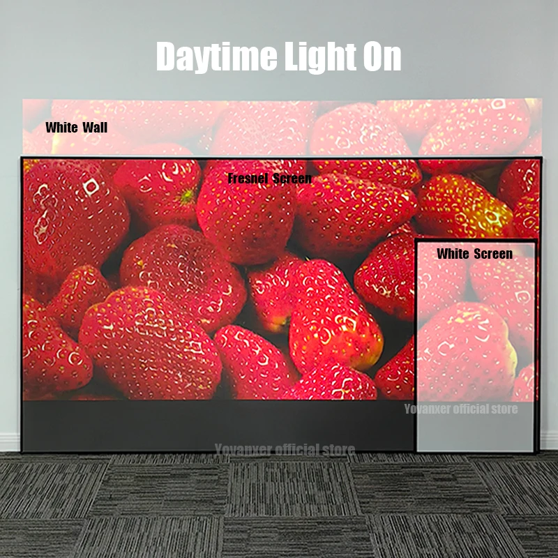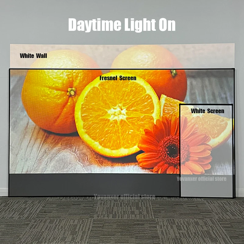 Фотографии, сделанные из нашего собственного выставочного зала, только для справки.Эффект проекции больше зависит от проектора.Для любого экрана, чем лучший проектор и более темная среда, тем лучше результат благодаря основным оптическим принципам.