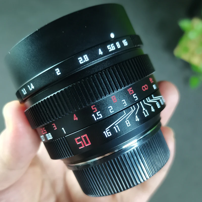 Информации нет, но оптическая формула, вероятно, Sonnar, потому что она очень острая на ф/1.4 с бархатным боке и 3D-эффектом, но также огромный сдвиг фокуса: когда она острая на 4 метрах при ф/1.4, она переходит на 4,30 метра при ф/4! Масштаб отверстий не линейный. Диаметр фильтра 58 мм вместо 52 на фотографиях. Скорость и яркость между f/1.1 и f/1.4 не различаются, поэтому объектив следует рассматривать как T/1.4. Он довольно громоздкий в видоискателе Leica, особенно с солнцезащитным козырьком (не входит в комплект), который важен, потому что этот объектив очень чувствителен к блику. Это дешево и весьма исключительно для такой цены, но совсем не для общего использования. Я думаю, что TTartisan 50/1.4 (вдвое дороже) больше подходит для этого. На гибридном устройстве (Panasonic S1) мы можем компенсировать сдвиг фокуса, но это менее эффективно, чем текущий 50/1.4.Jean-Francois D. 26 апреля 2025