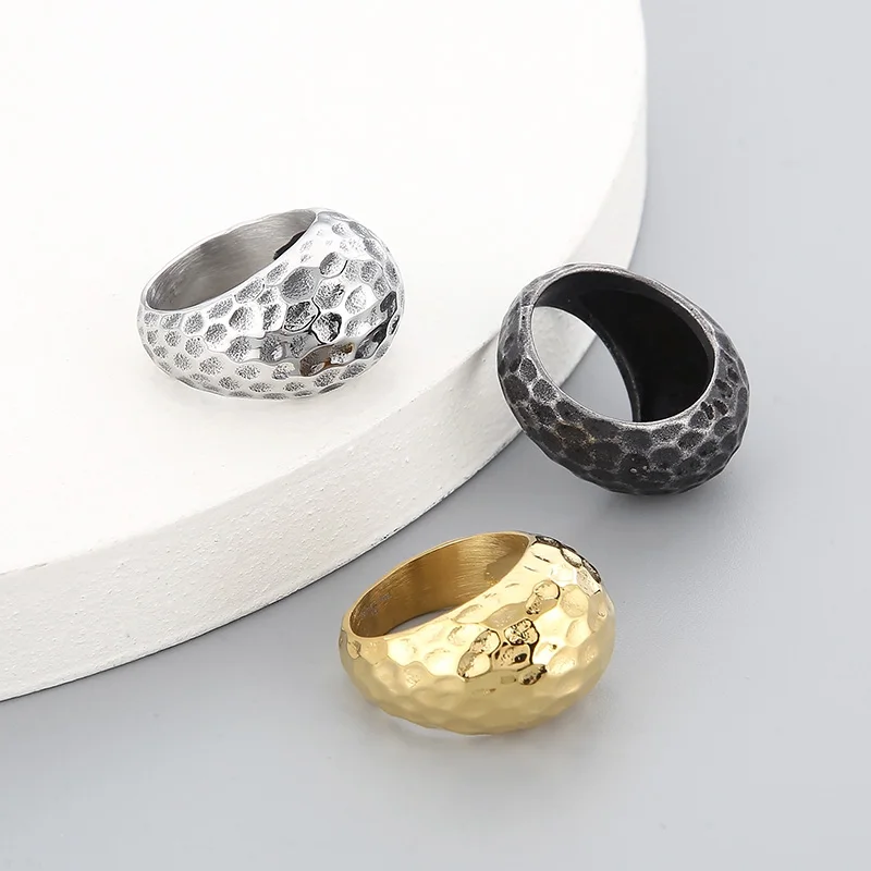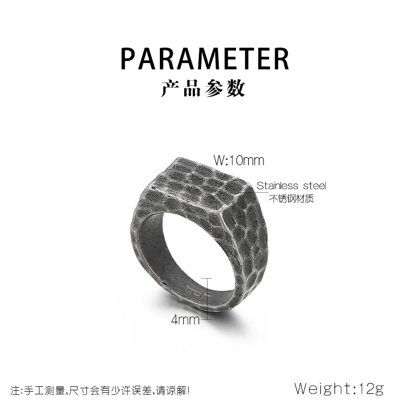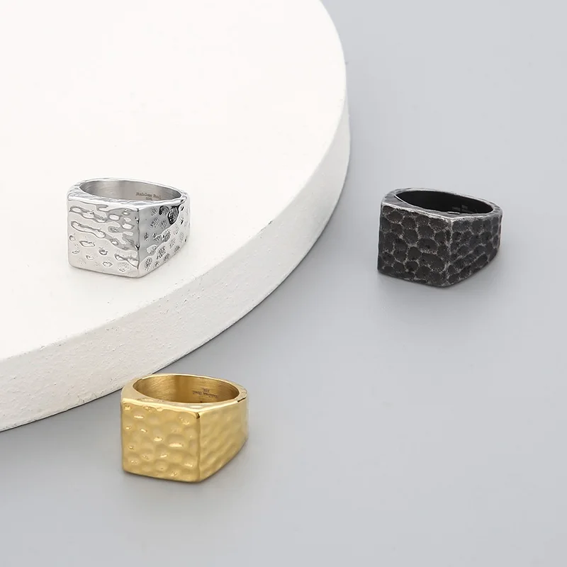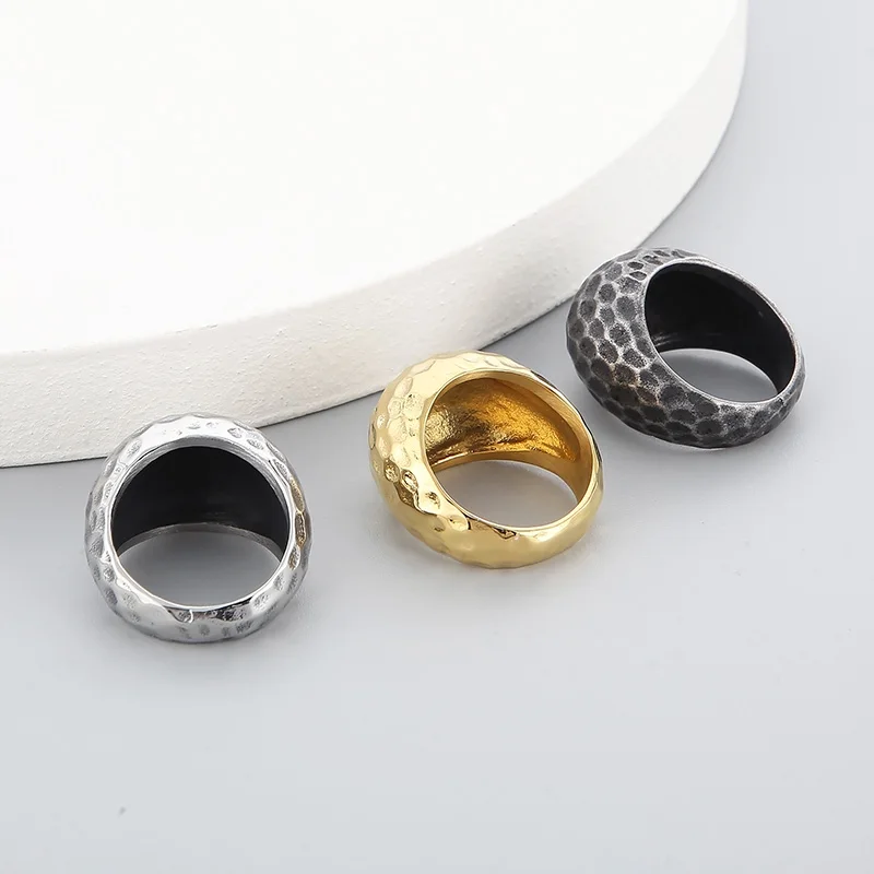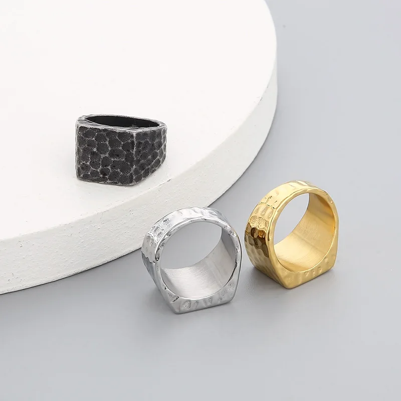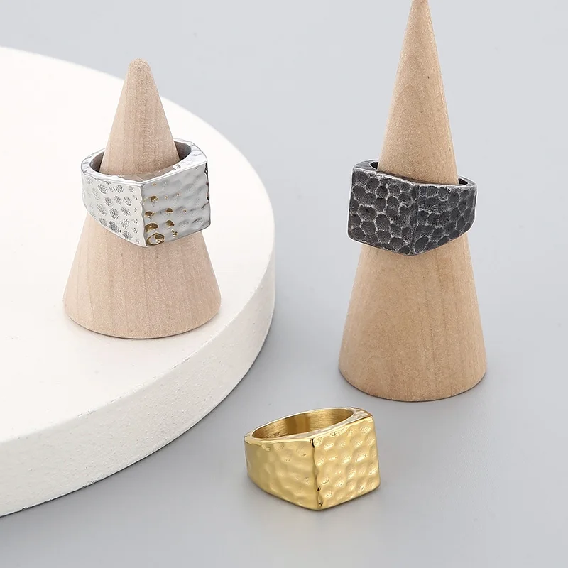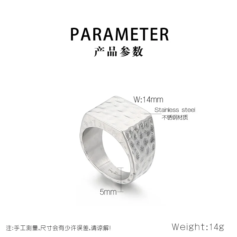 New Stainless Steel Rings For Women Men Hammer Pattern Square Oval Knuckle...