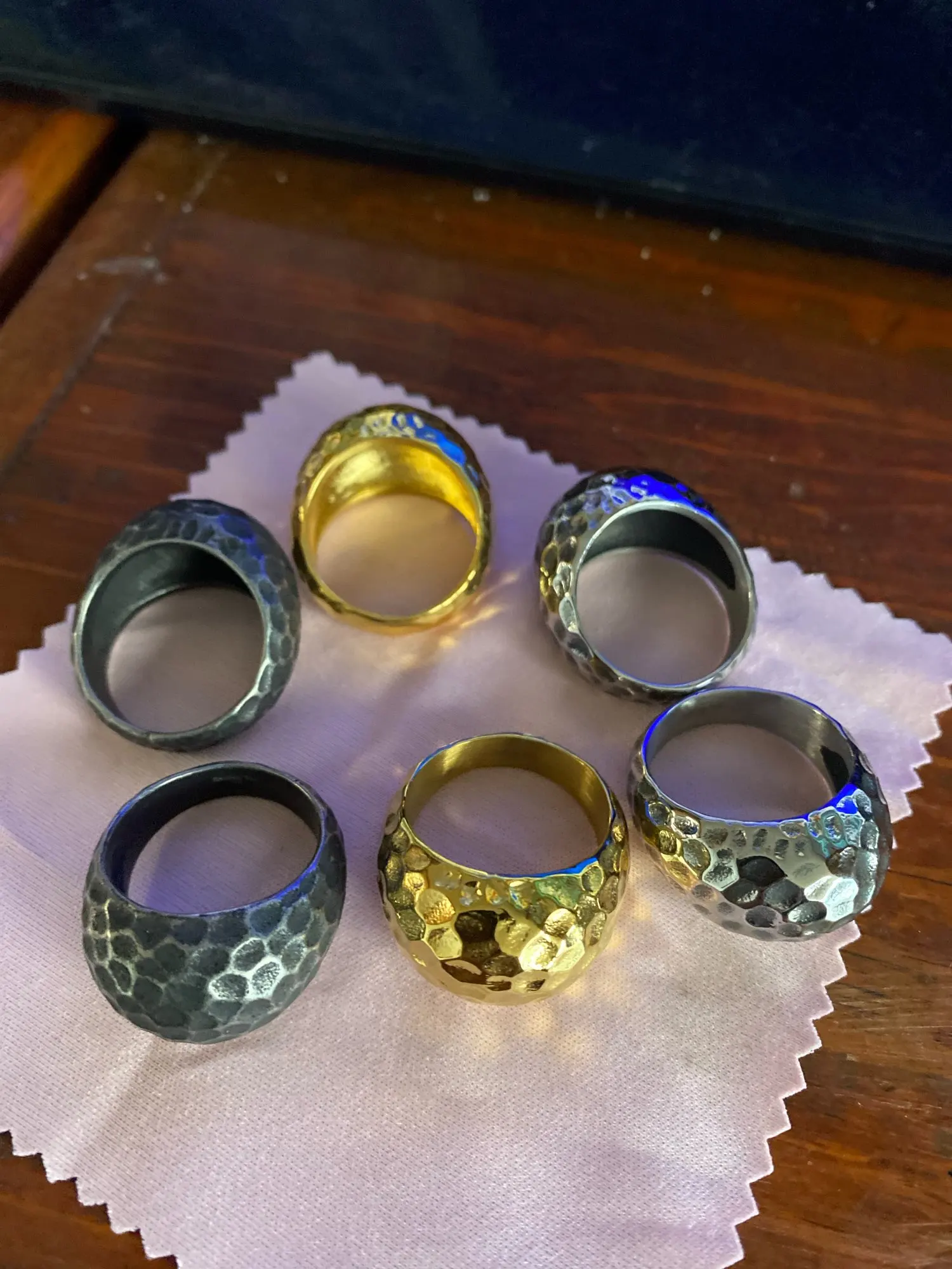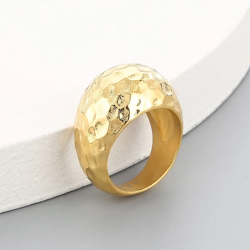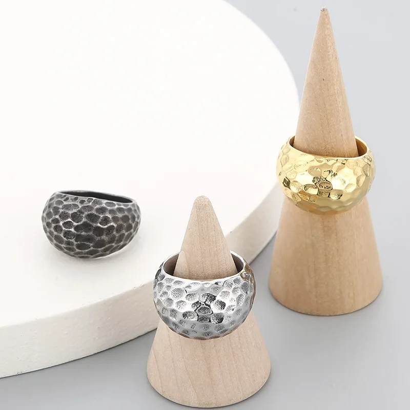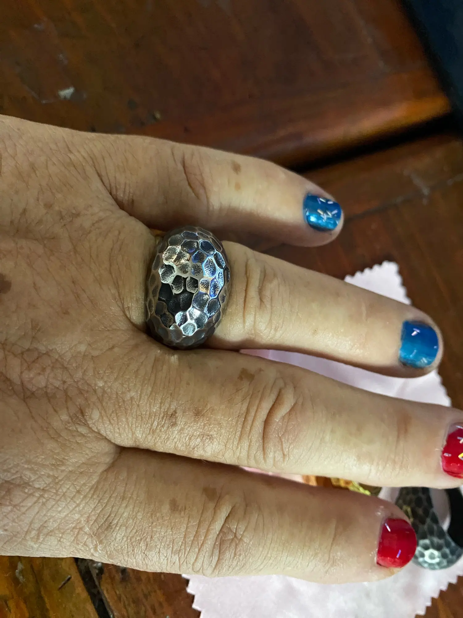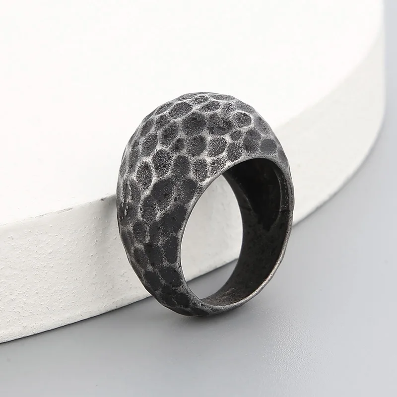 New Stainless Steel Rings For Women Men Hammer Pattern Square Oval Knuckle...