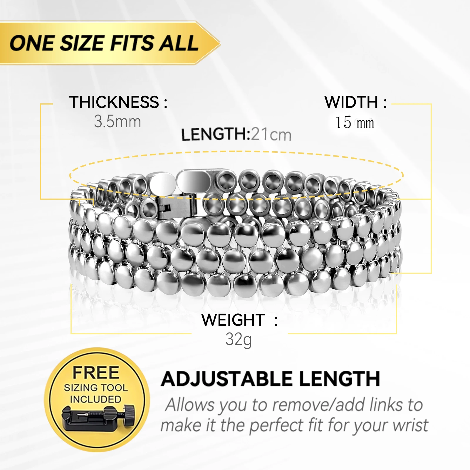 Магнитный терапевтический браслет облегчает дискомфорт и депрессию, успокаивает ум и улучшает сон; Повысить умственную сосредоточенность, чтобы получить хорошие результаты на работе, в учебе и заставить людей чувствовать себя свежими при вождении на дальние расстояния или частом вождении; это обеспечит энергией тельца крови и снизит вязкость, а затем снизит вероятность развития сердечно-сосудистых заболеваний, Болезни сердца и ветр-удар.