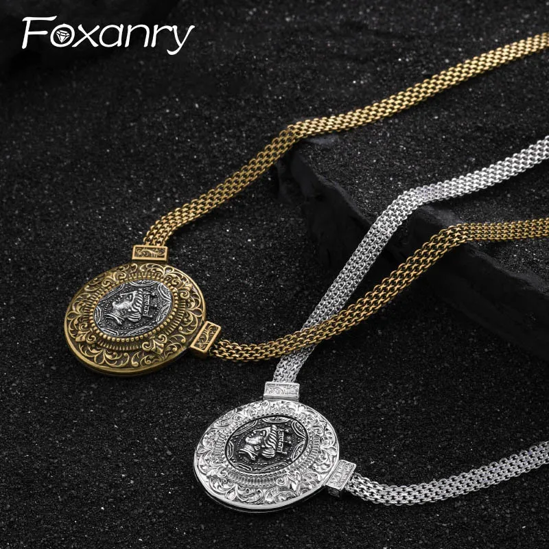 Foxanry Portrait Geometric Pattern Necklace For Women Couple Vintage Trendy...