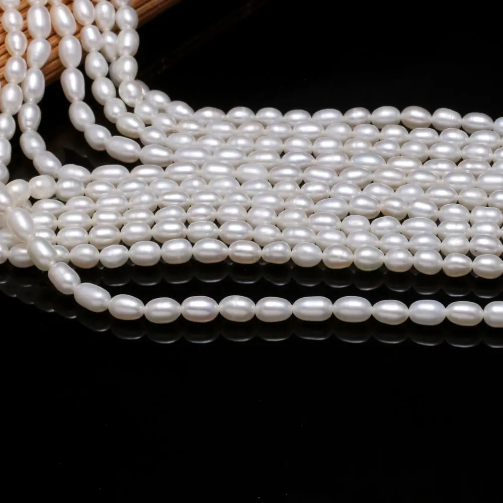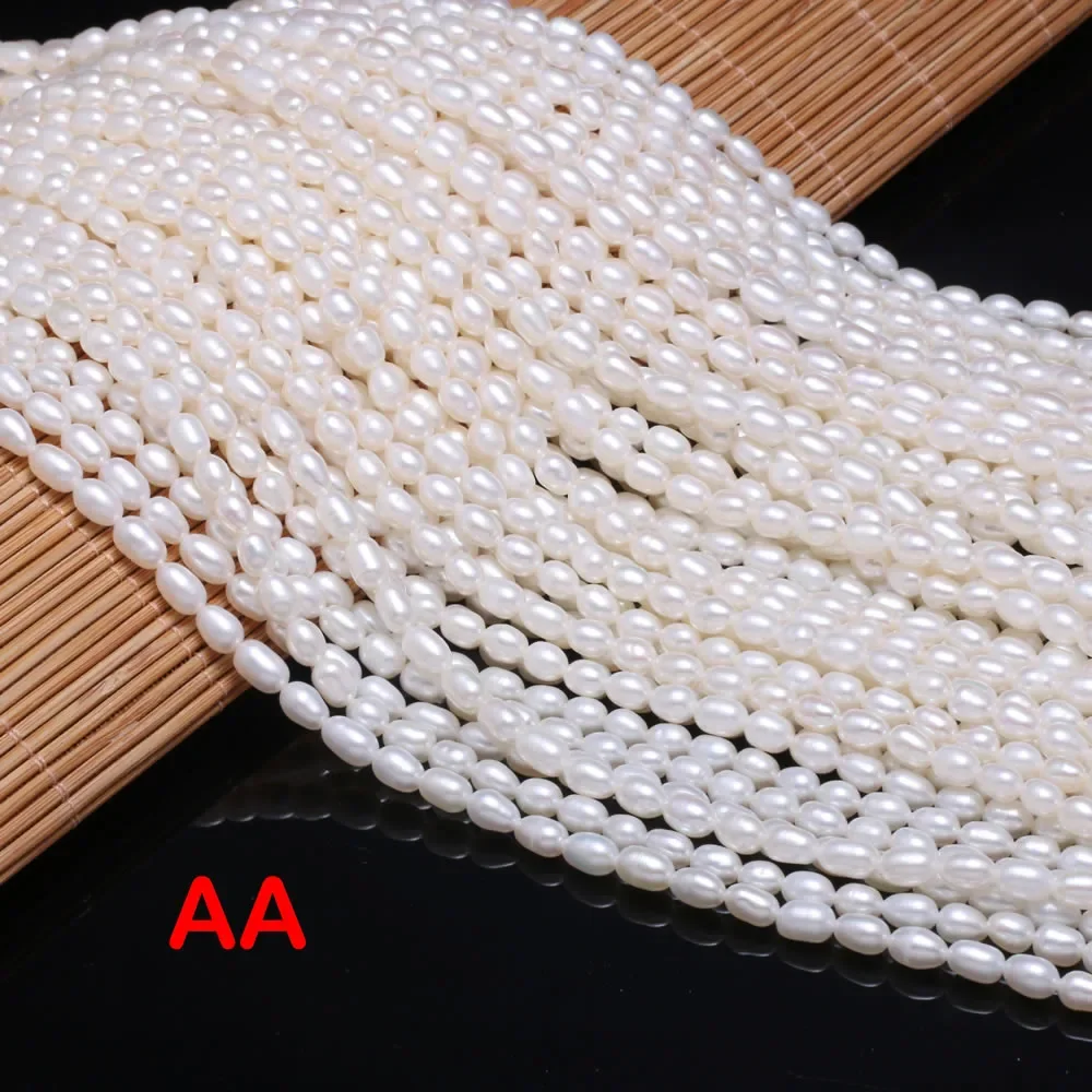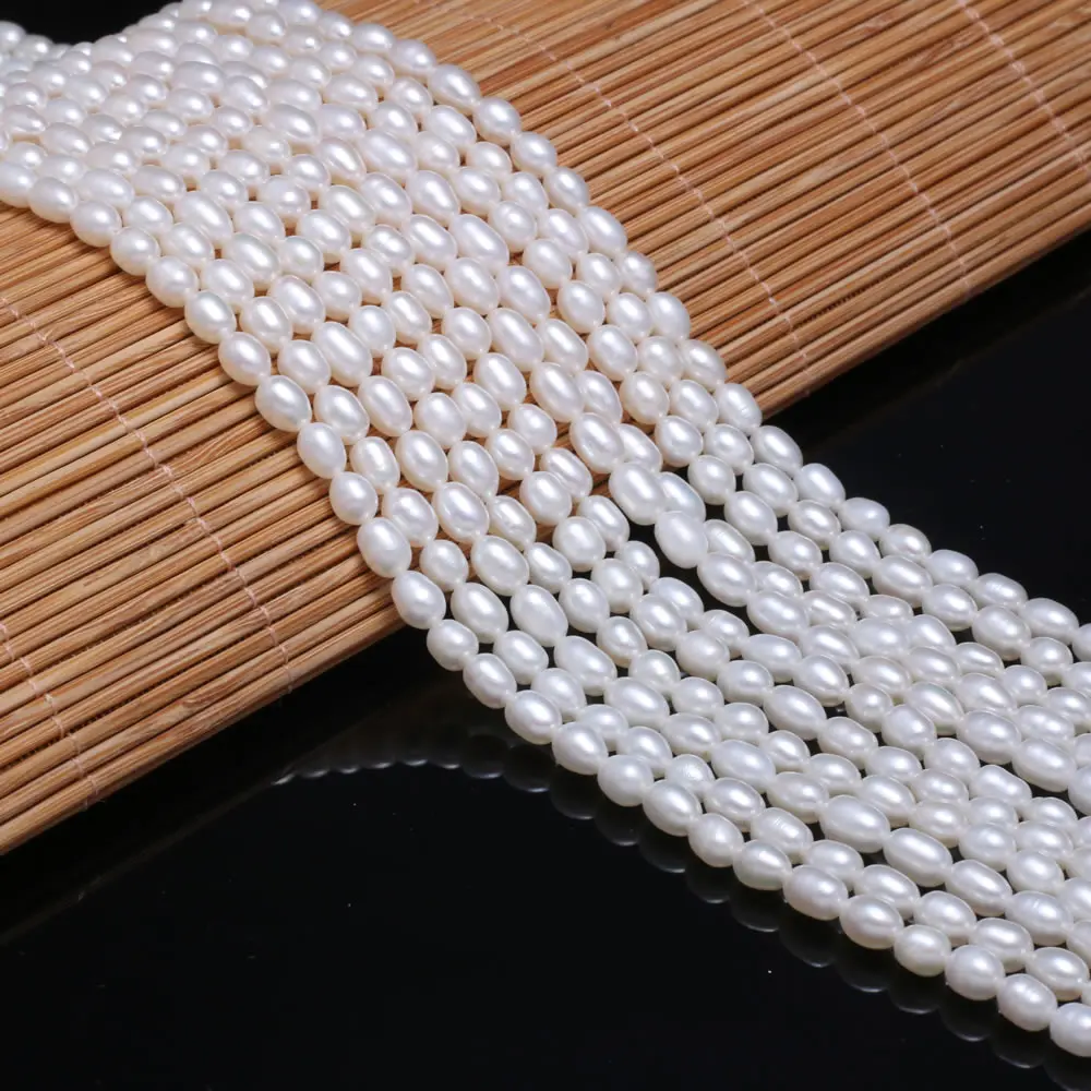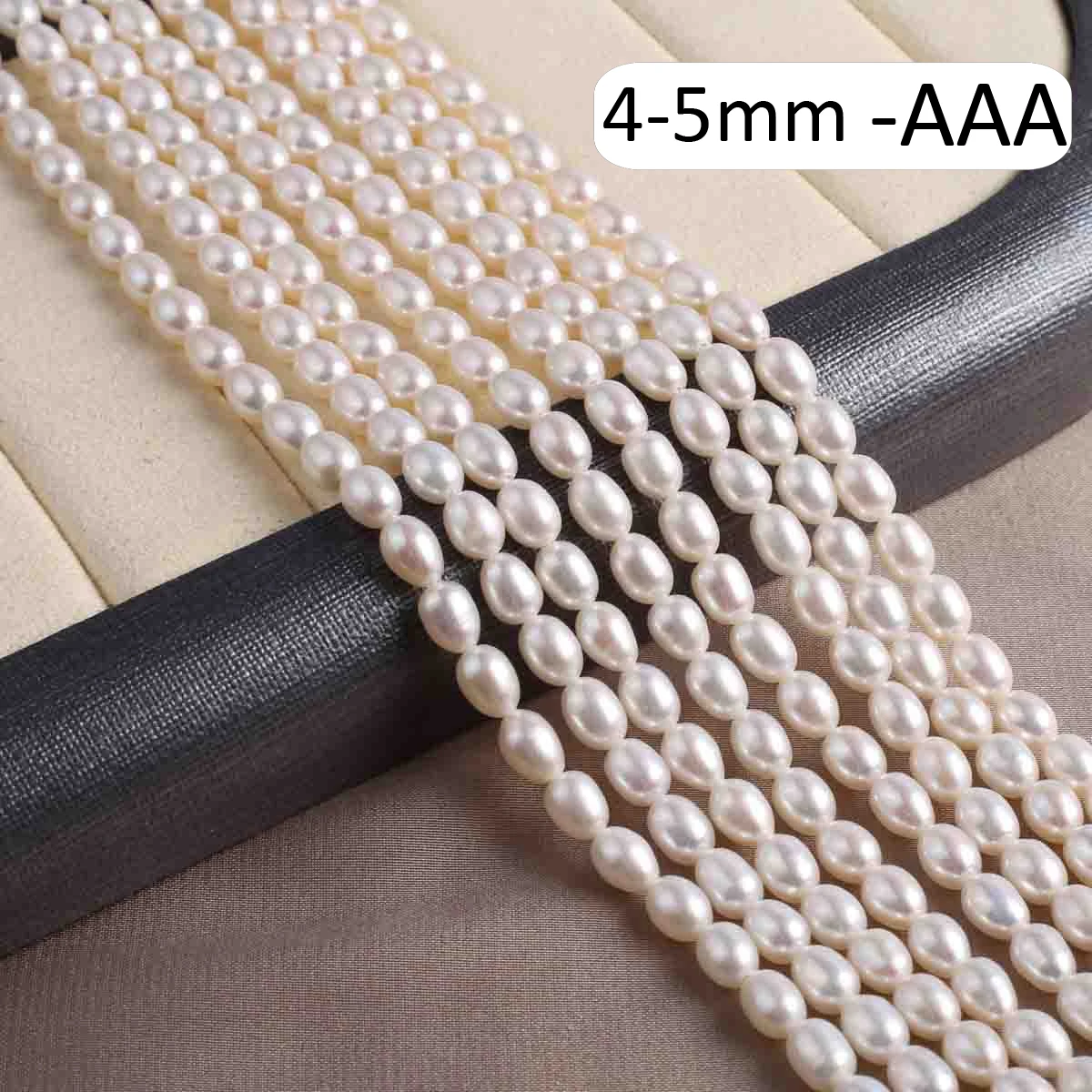 Бусины из белого жемчуга в форме риса АА, натуральный пресноводный жемчуг для ожерелья, браслета, изготовления ювелирных изделий своими руками для женщин, размер 4-5 мм