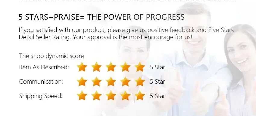 Ваше удовлетворение и положительные отзывы очень важны для нас. Если у вас есть какие-либо вопросы, пожалуйста, свяжитесь с нами, прежде чем оставить нам нейтральный или отрицательный отзыв. Мы сделаем все возможное, чтобы решить ваши проблемы.