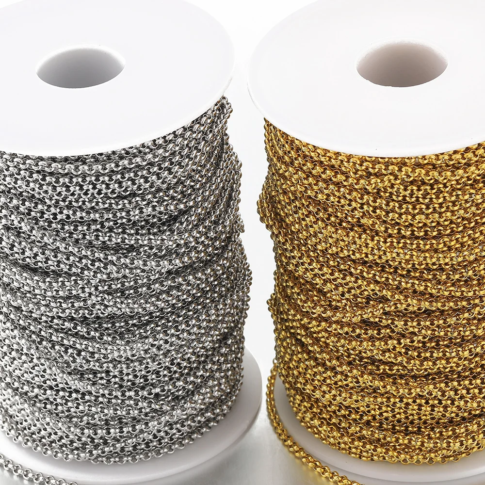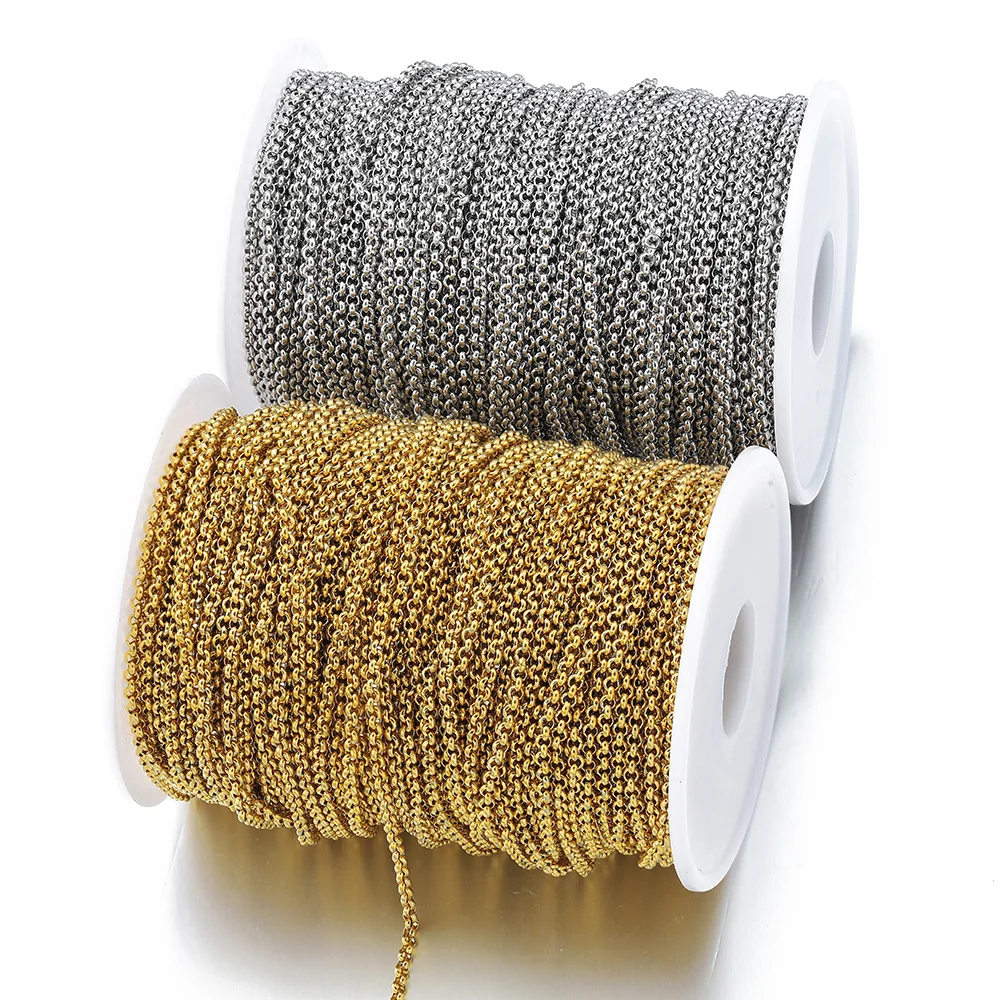 1 Meter Stainless Steel Gold Chains 2.5/3/4mm Round Link O Shape Necklace Bracelet Accessories For DIY Jewelry Making Components