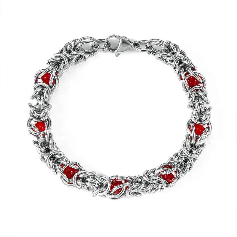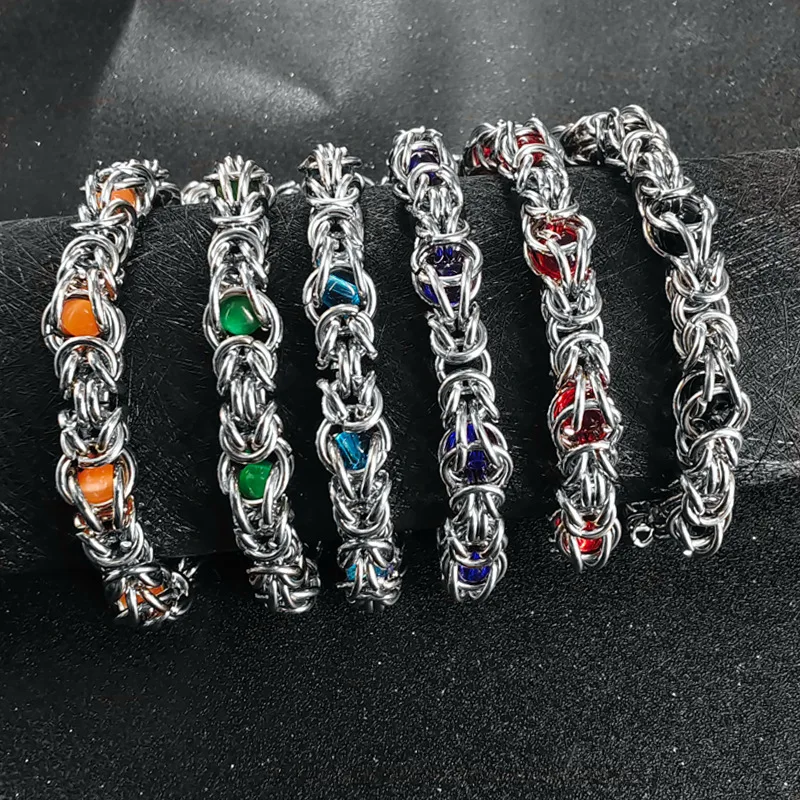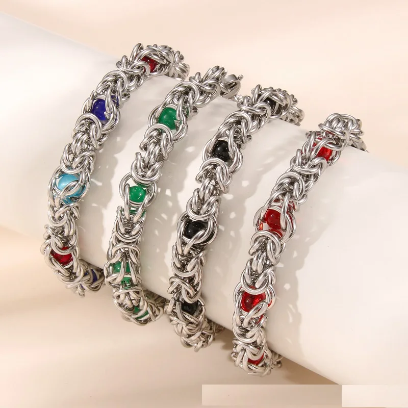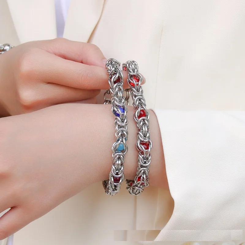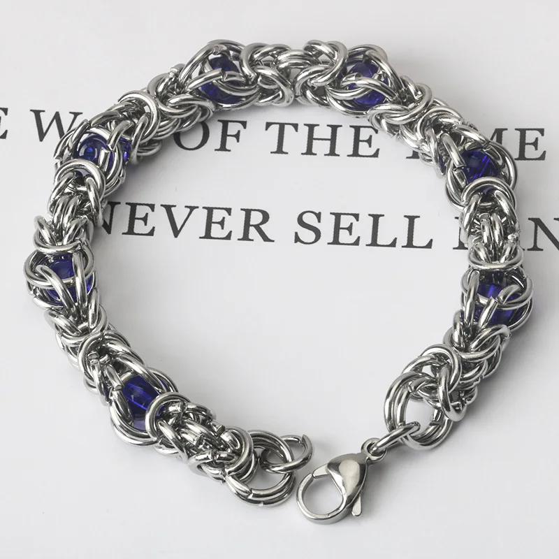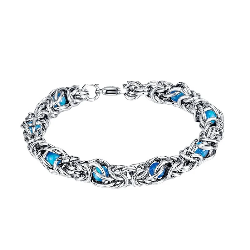 316L Stainless Steel Keel Chain With Blue Beads Bracelet for Men Women Kpop...