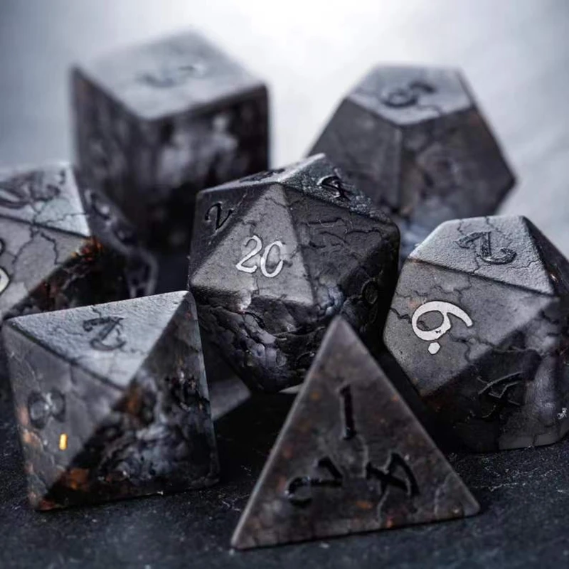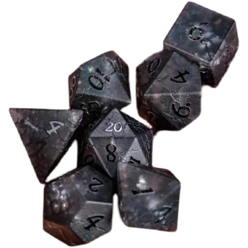 Natural Gemstone DND Dice Set Black Lightning Zircon Frosted COC DND TRPG Board...