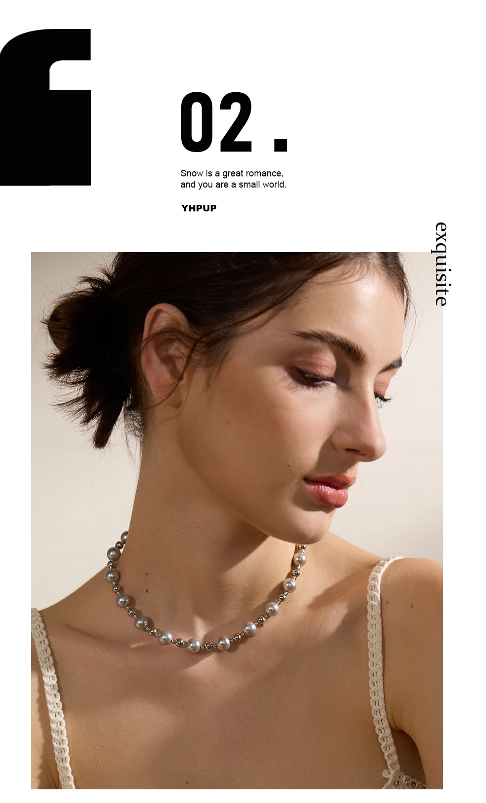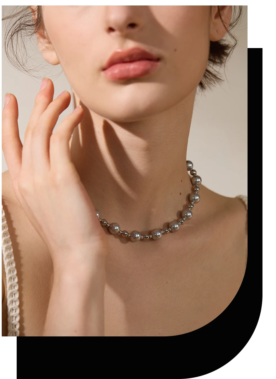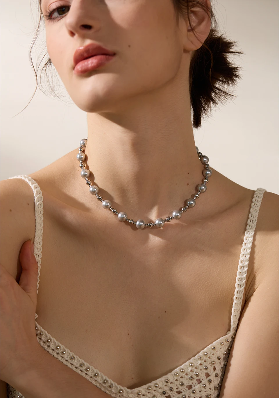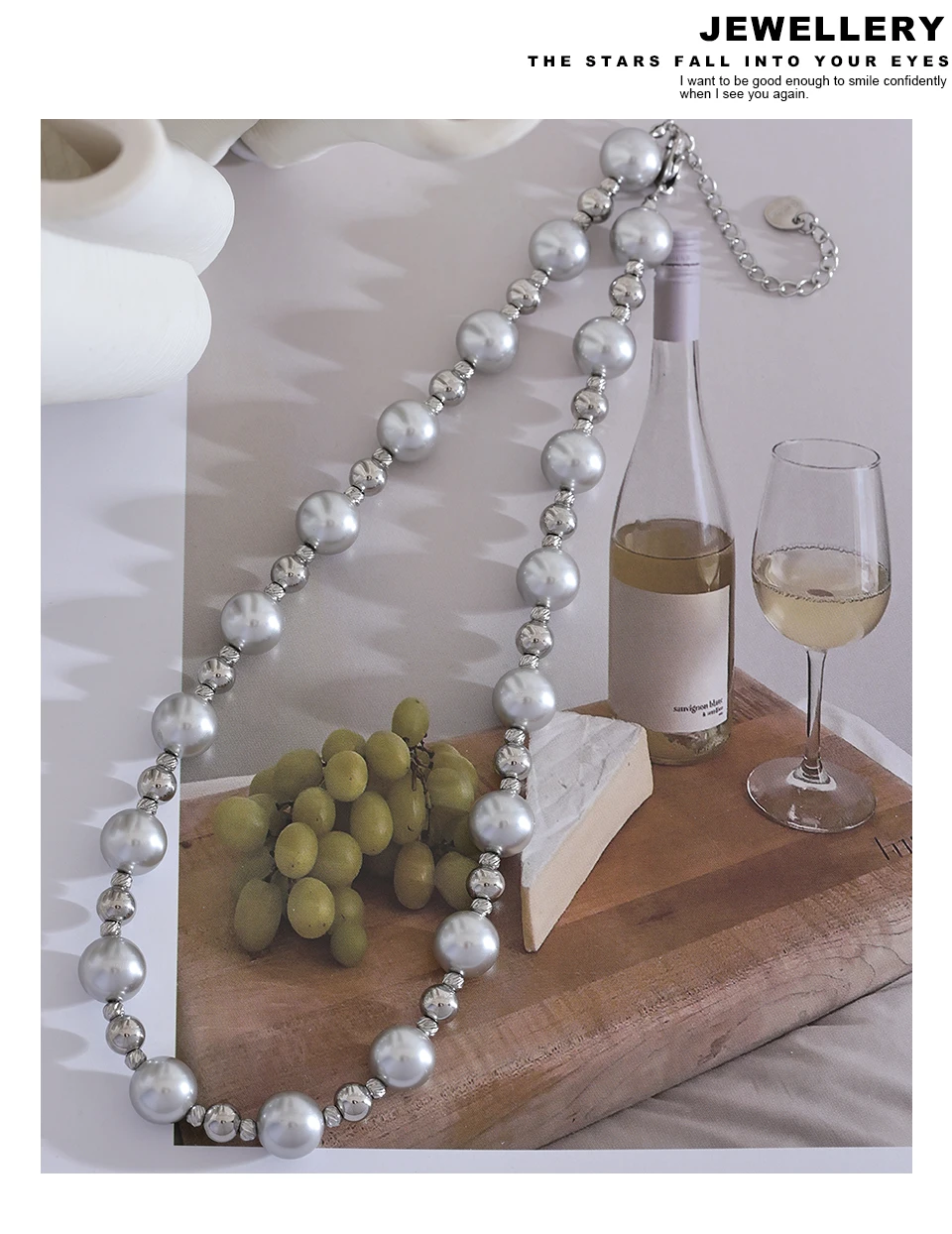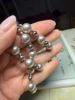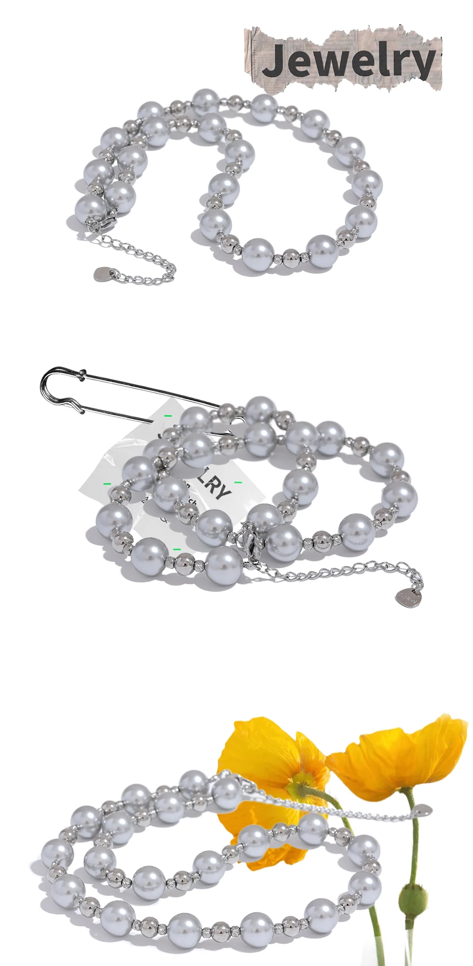 Yhpup Grey Imitation Pearl Beads Handmade Chain Stainless Steel Collar Necklace...